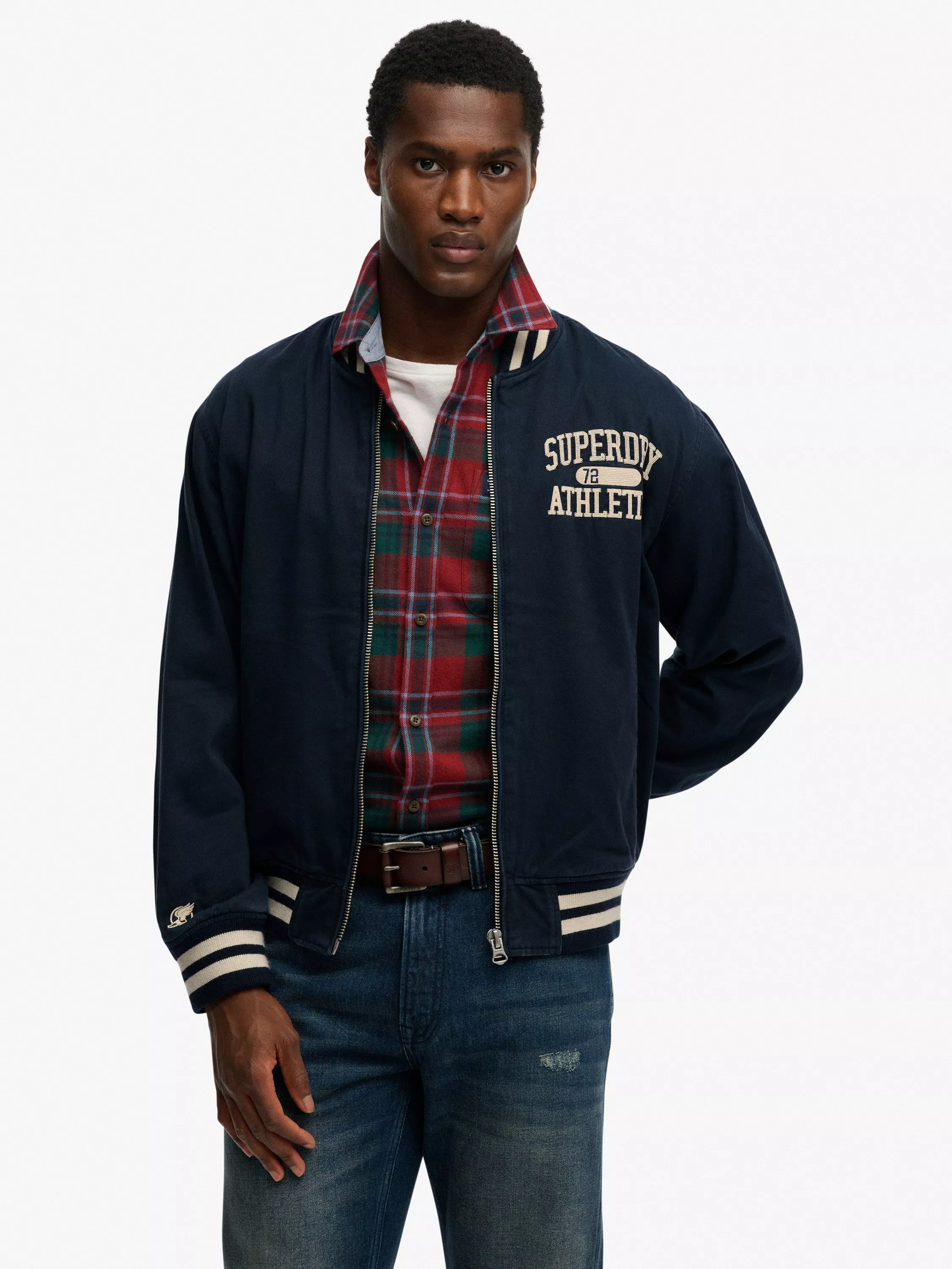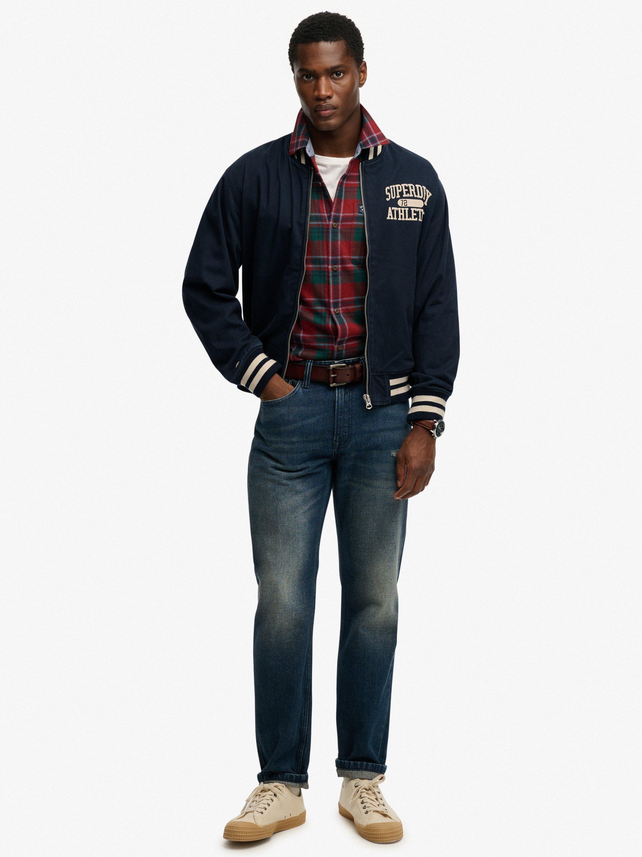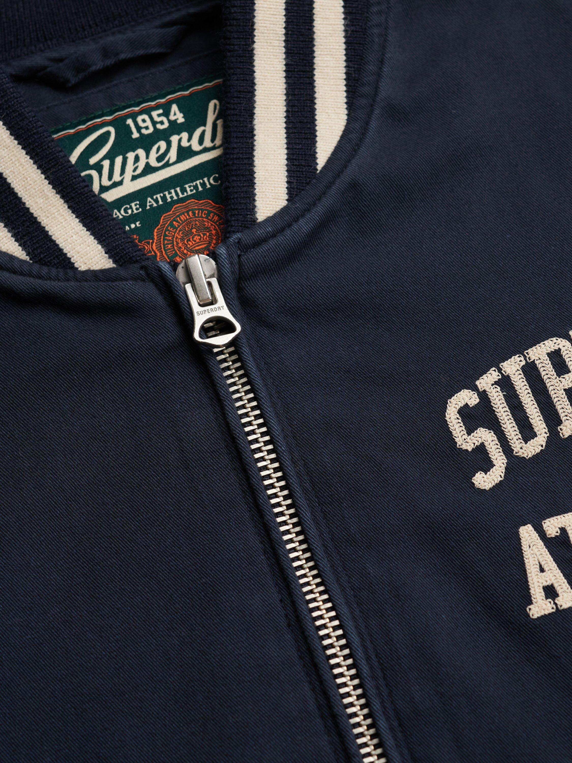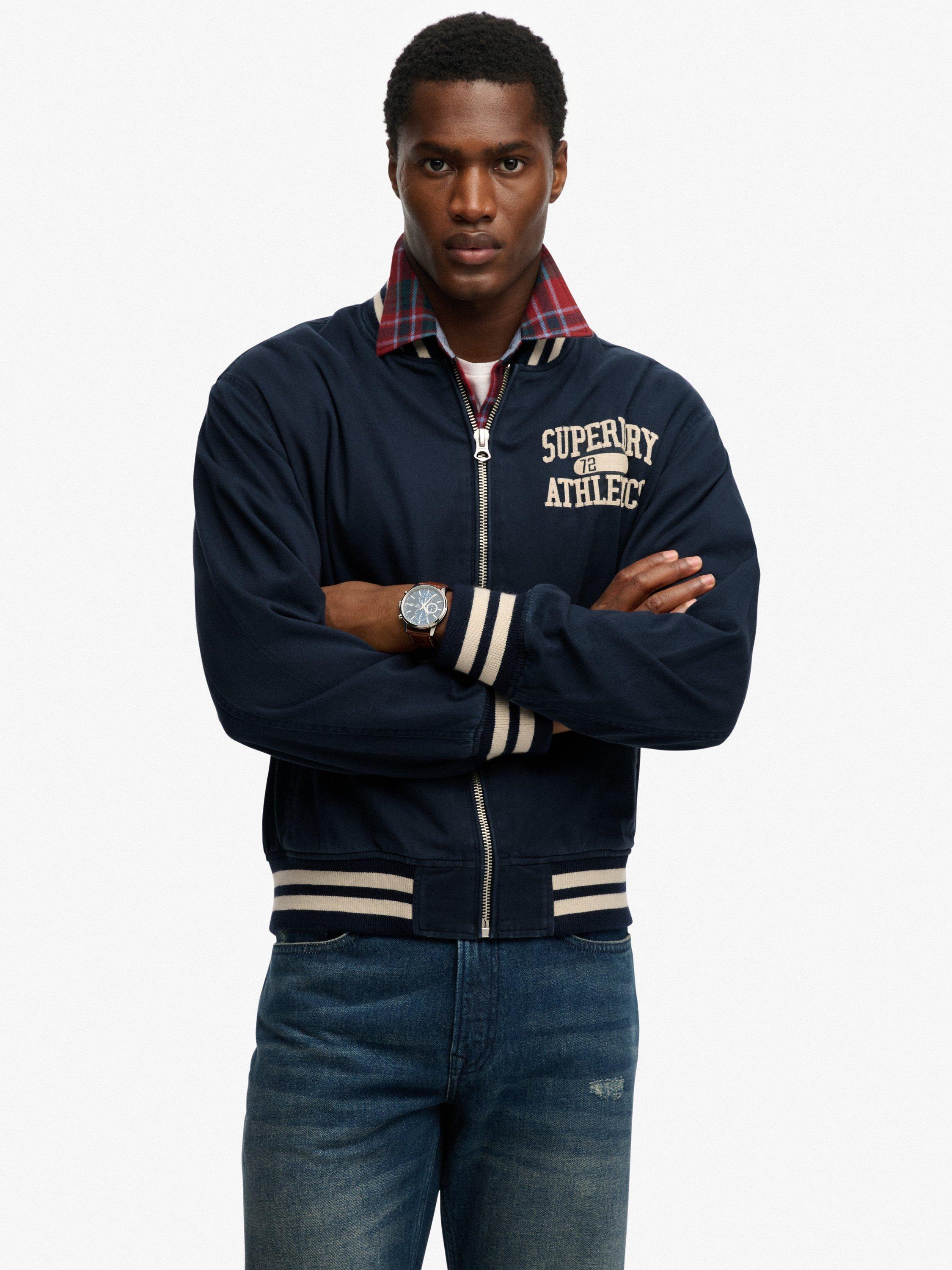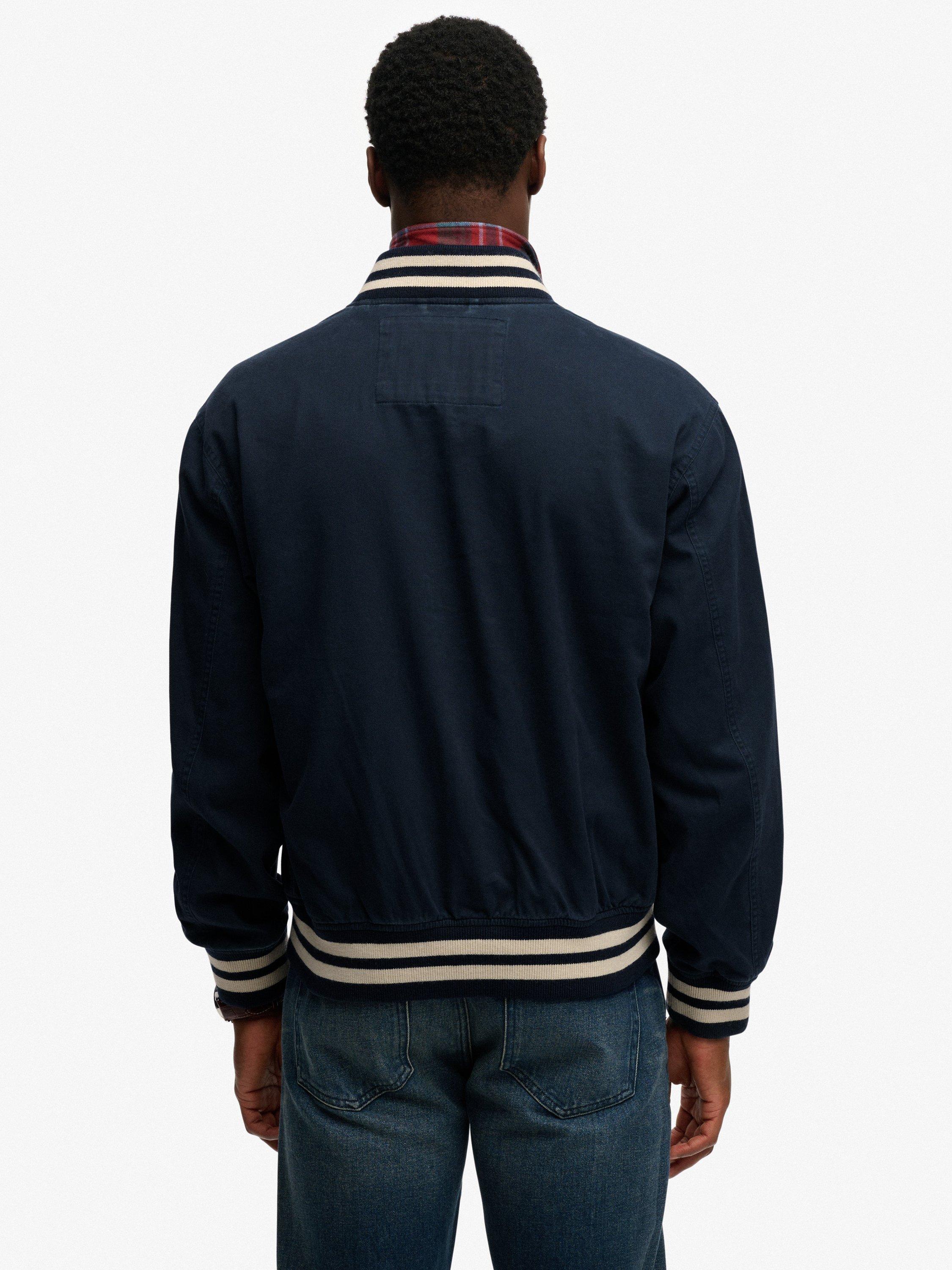 Engage in a subtler and more sophisticated old school American style with the Twill Varsity Bomber Jacket. Inspired by our own classic varsity jackets with a focus on athletics, the contrasting dual stripe areas and minimalist embroidery will draw the eye and elevate your wardrobe this season.