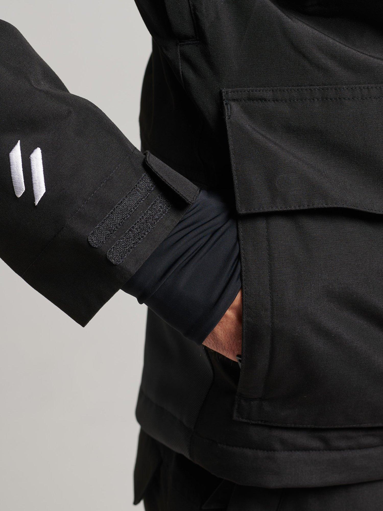 Designed for the slopes, this ski jacket features waterproof protection, double zip fastening, as well as bungee cord adjusters. Fitted with a total of seven external zip pockets, including one on the left sleeve, and an internal pocket, it also comes fitted with underarm venting.