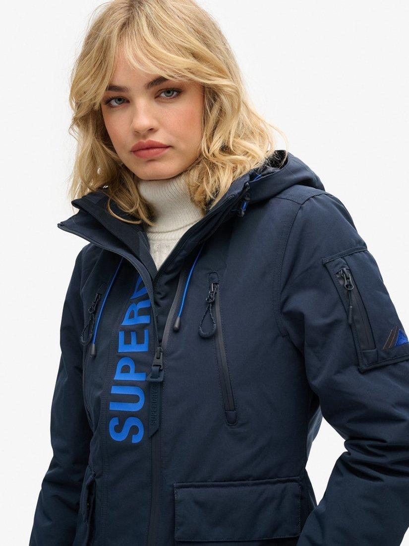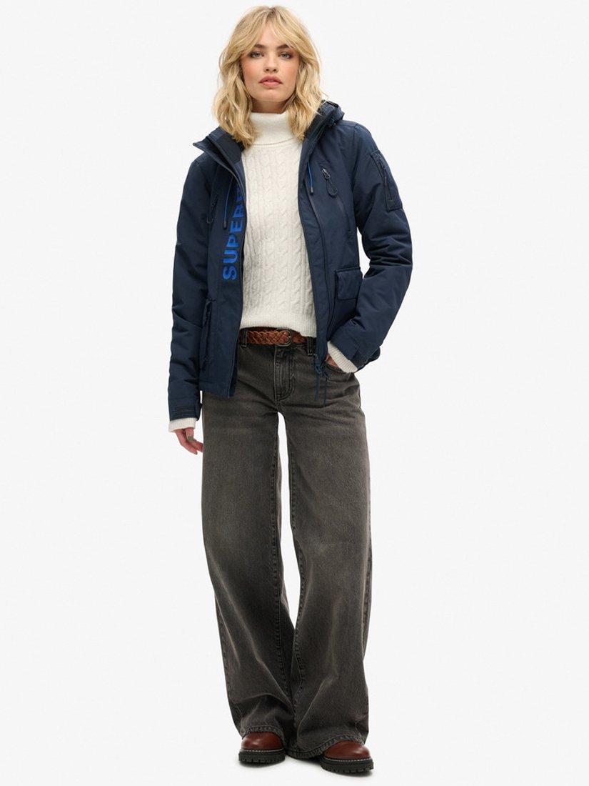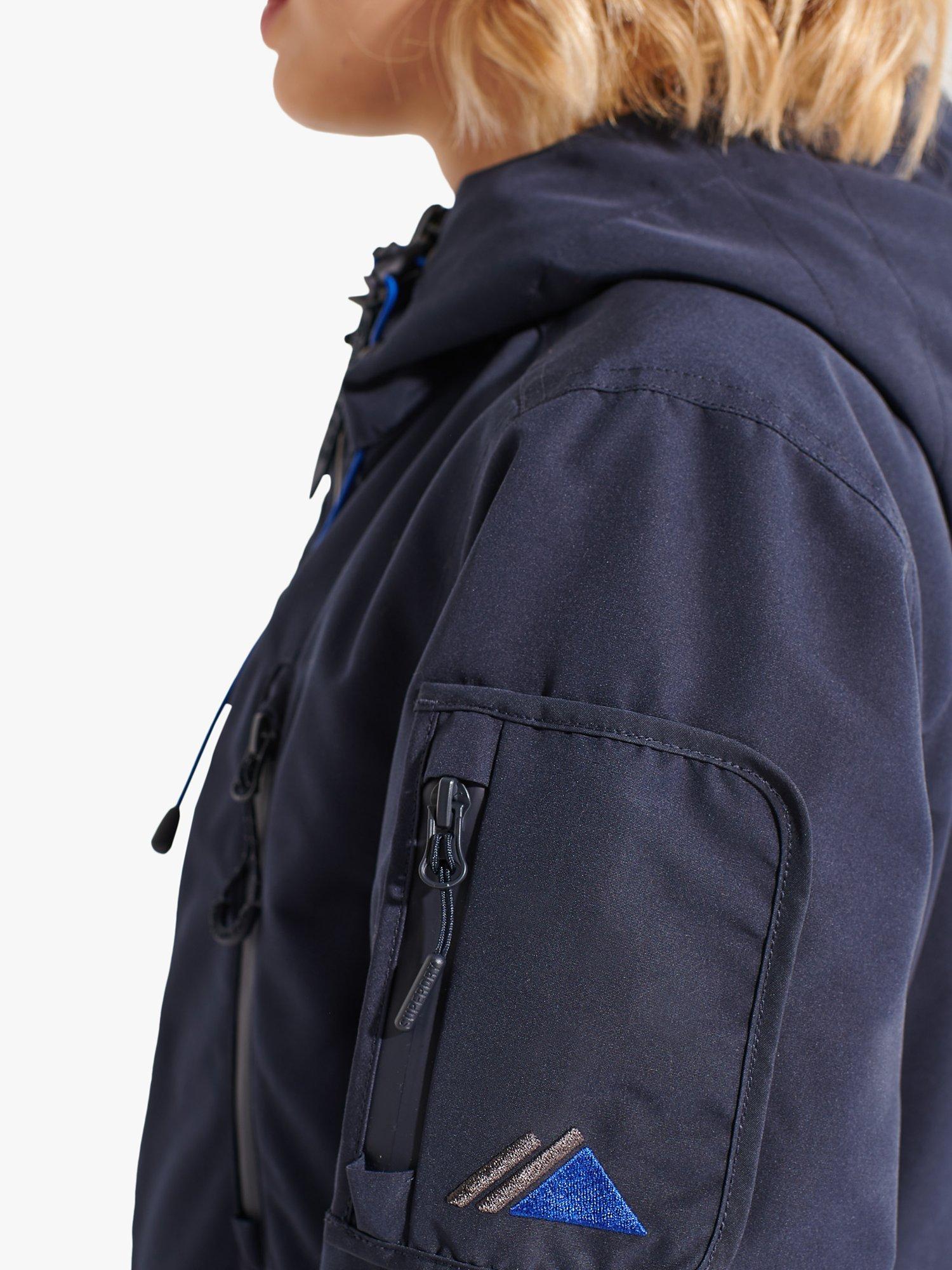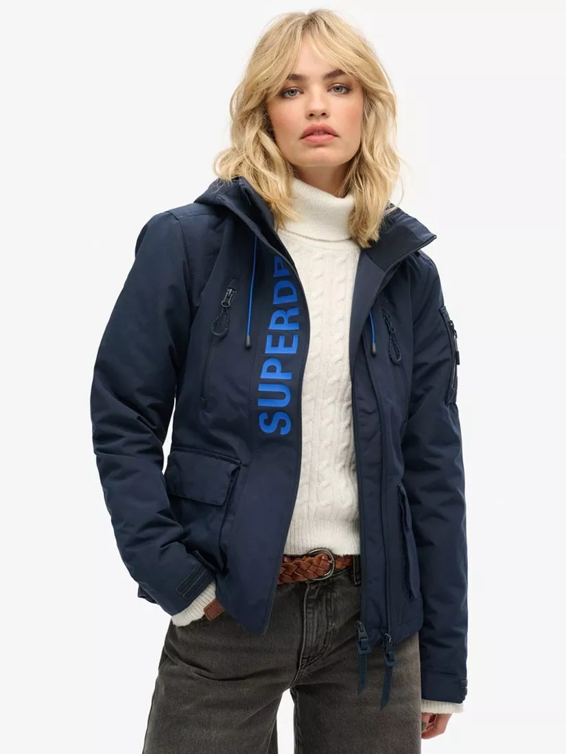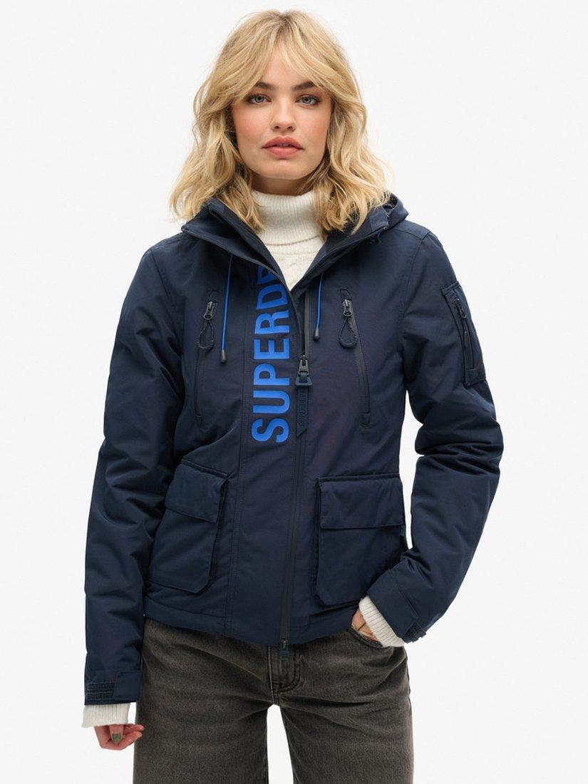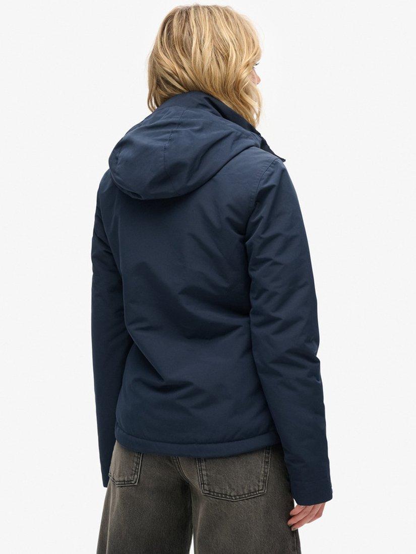 A sporty style for casual days, this jacket by Superdry falls just to the knee in a mid-length cut.