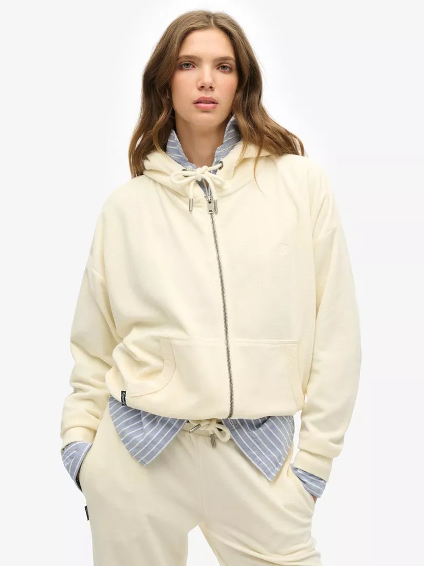 Rock the signature Superdry comfort and luxurious style with the Velour Zip Hoodie. The sumptuous velour feel to this hoodie brings together the comfort of loungewear and the style of athleticwear, allowing your personal style to look authentically chic.