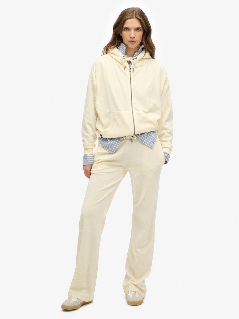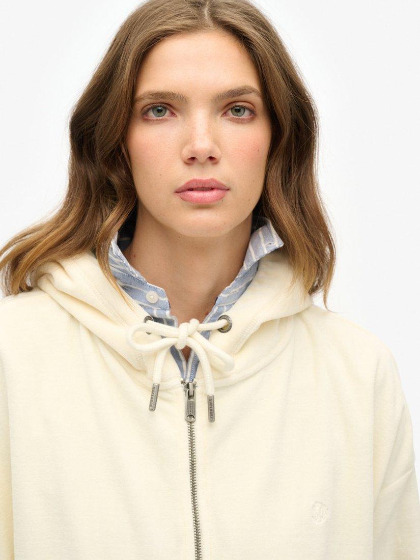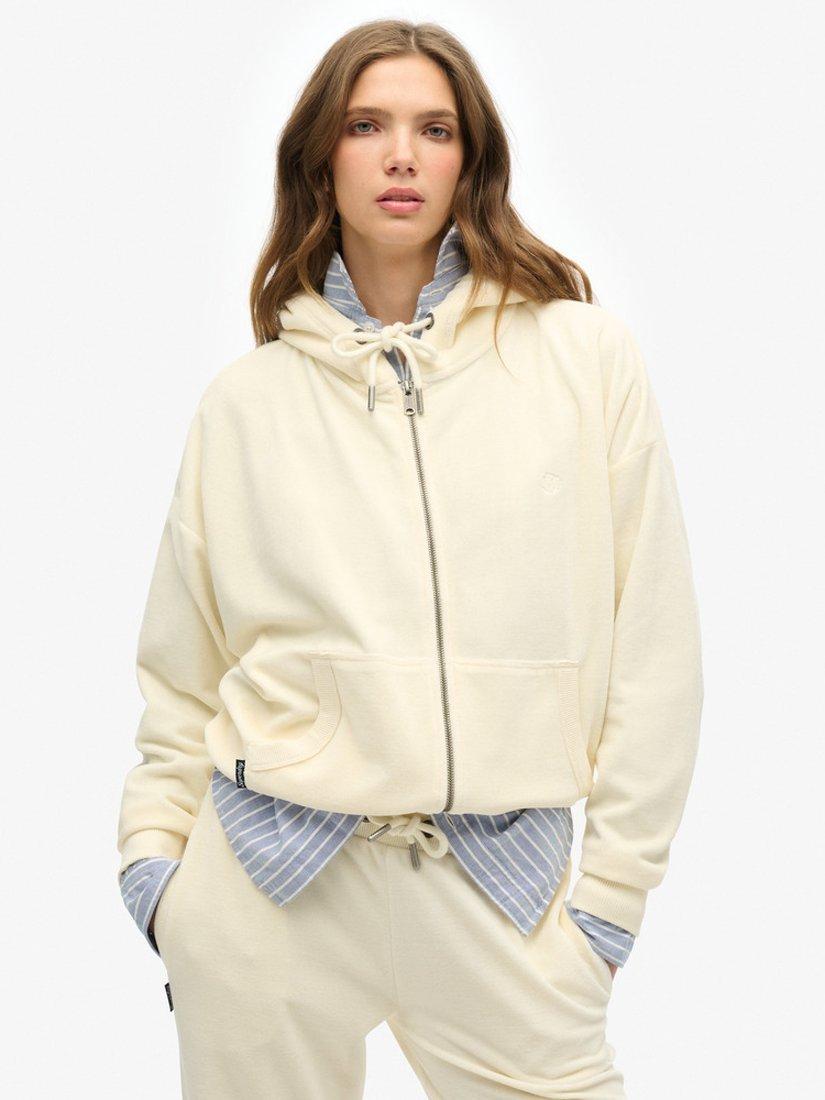 SuperdryVelour Zip Hoodie, Desert Bone White
