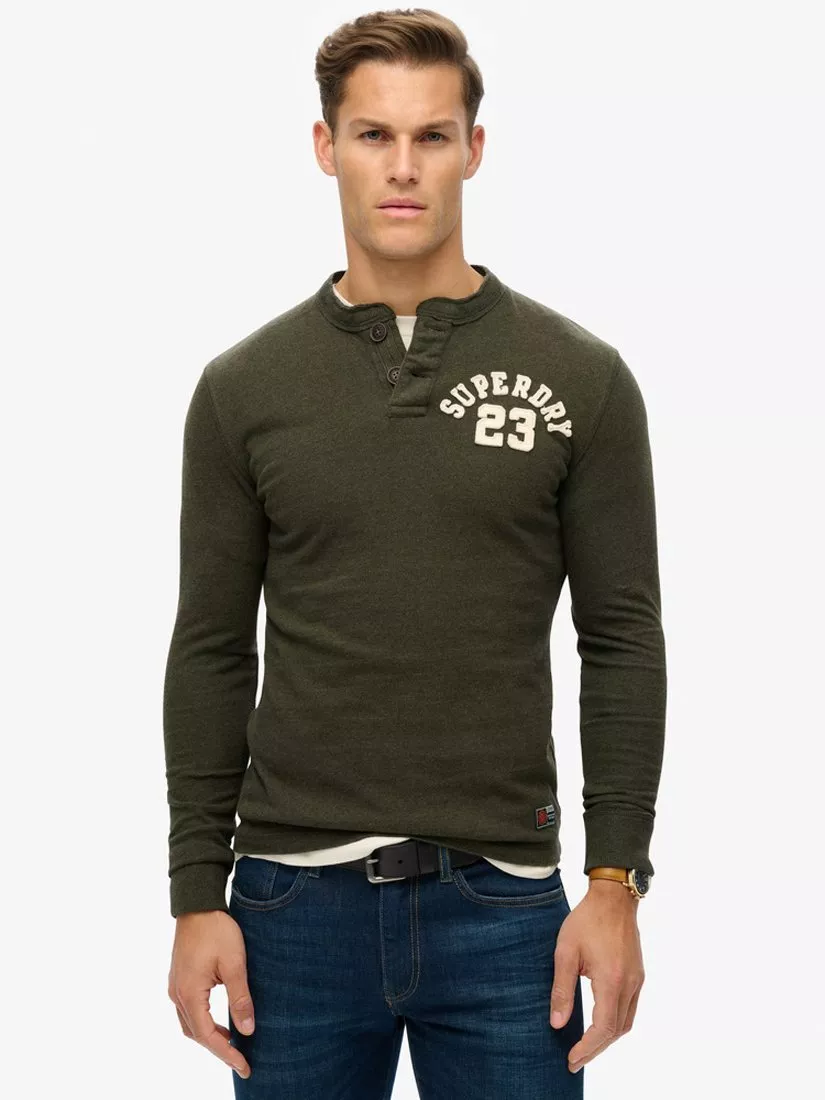 The Vintage Athletic Long Sleeve Grandad Top is crafted with classic Superdry undertones so you can stay stylish and comfortable this season. Designed with that vintage vibe in mind, you can show off your style with the contrasting applique text on the chest, keeping your outfits cool and fun.