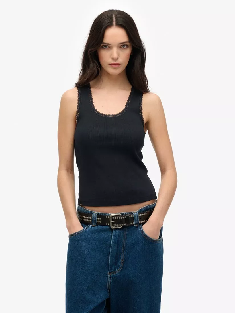 SuperdryVintage Lace Trim Vest, Eclipse Navy