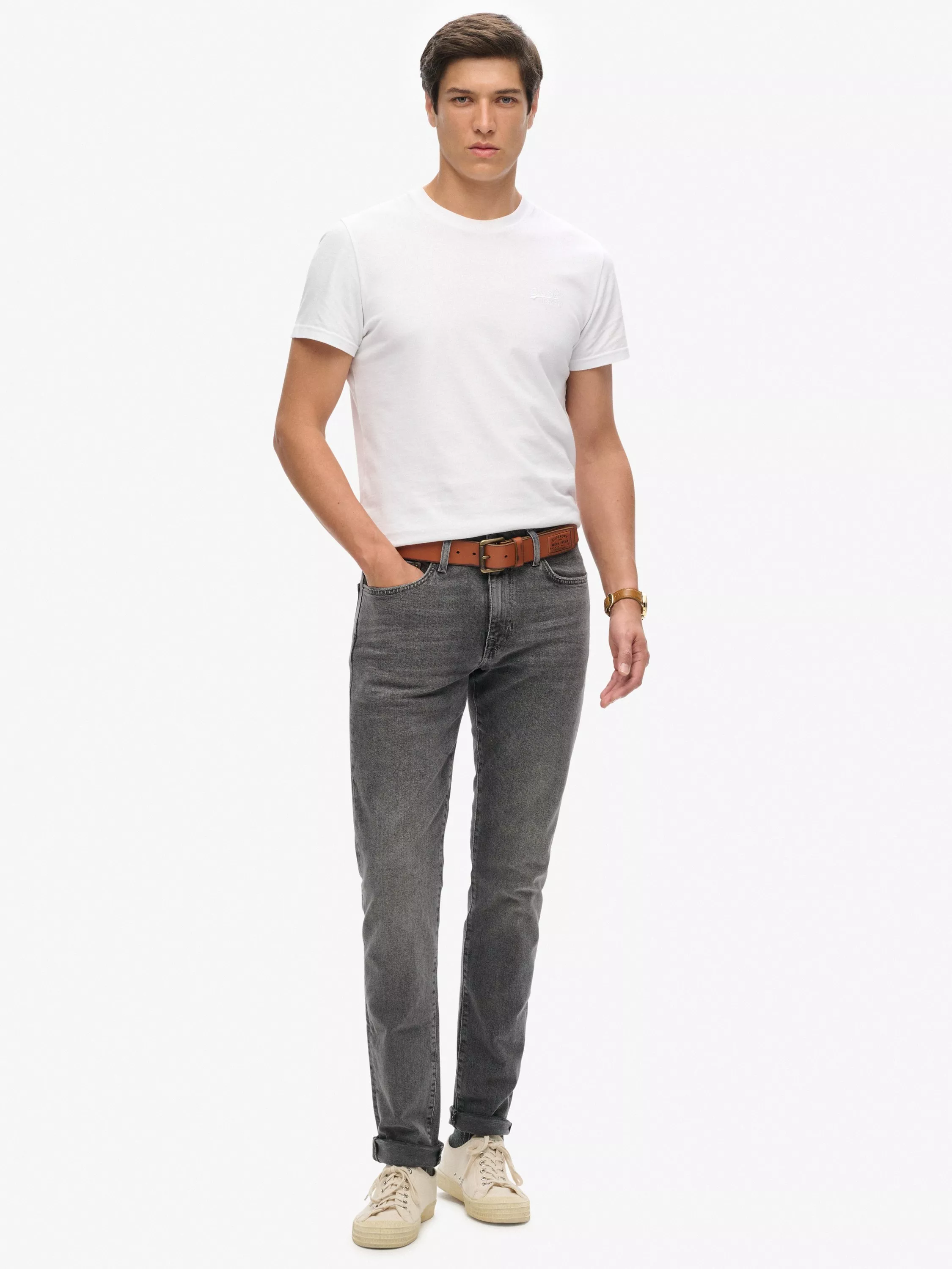 Classic, slim-fitting jeans that offer maximum casual styling versatility. A hint of stretch in the fabrication also ensures long-lasting comfort.