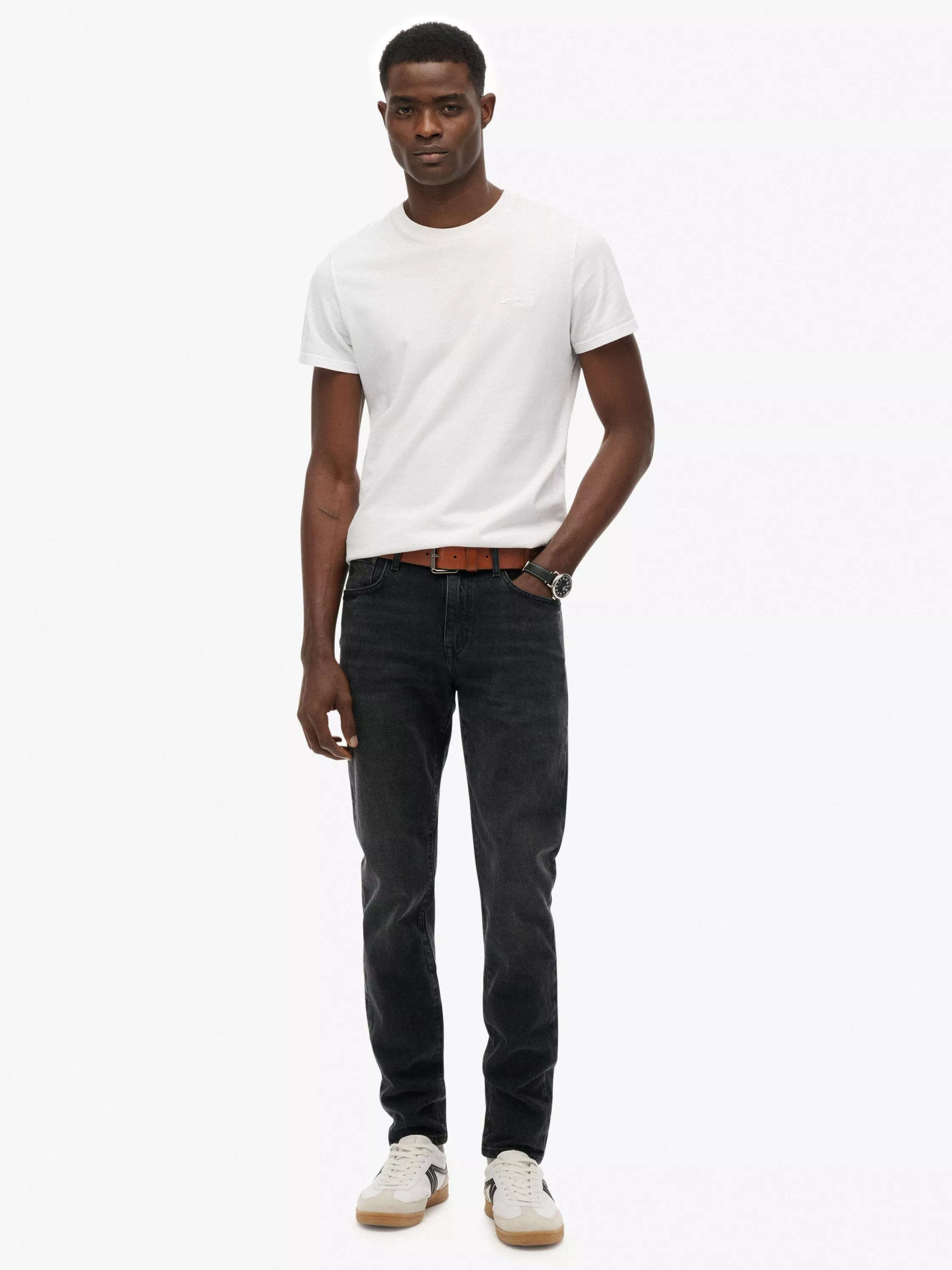 Classic, slim-fitting jeans that offer maximum casual styling versatility. A hint of stretch in the fabrication also ensures long-lasting comfort.