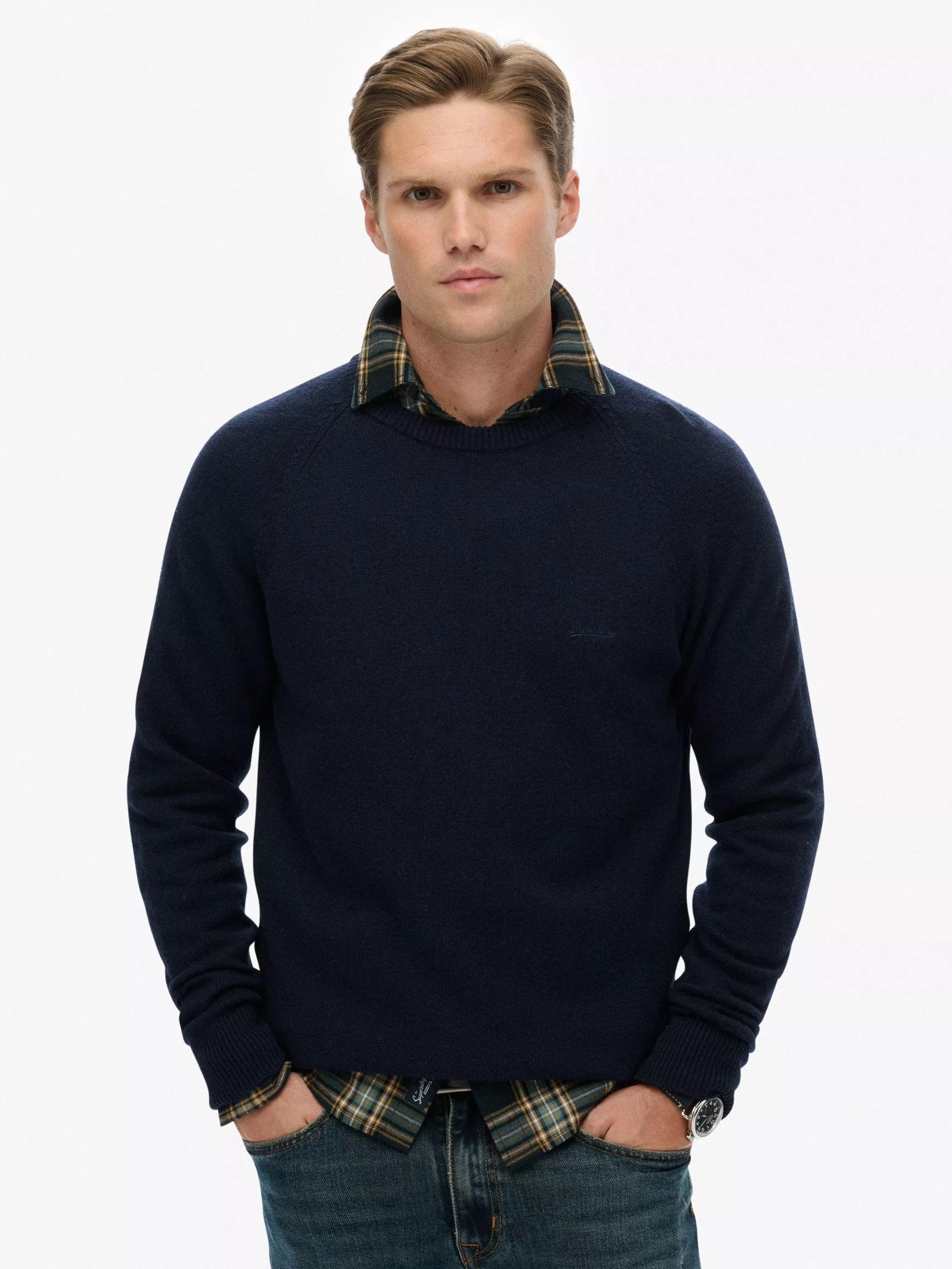 SuperdryWool Blend Crew Neck Jumper, Charred Navy Marl
