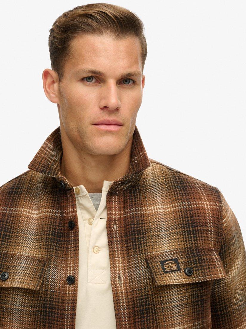 Embrace the rustic American aesthetic with the Superdry Wool Mill Overshirt. Made from a luxurious wool blend, this relaxed-fit overshirt offers warmth and comfort with a traditional check design that captures a vintage spirit.