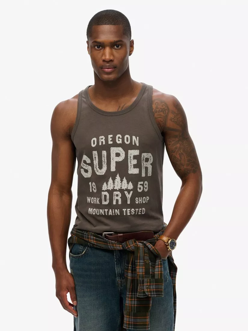 Reconnect with nature on those warmer days in Superdry's Work Shop Vest. Graphically inspired by the great outdoors and perfect for those big adventures to somewhere warm. An iconic essential that will add to your summer explorer aesthetic all season long.