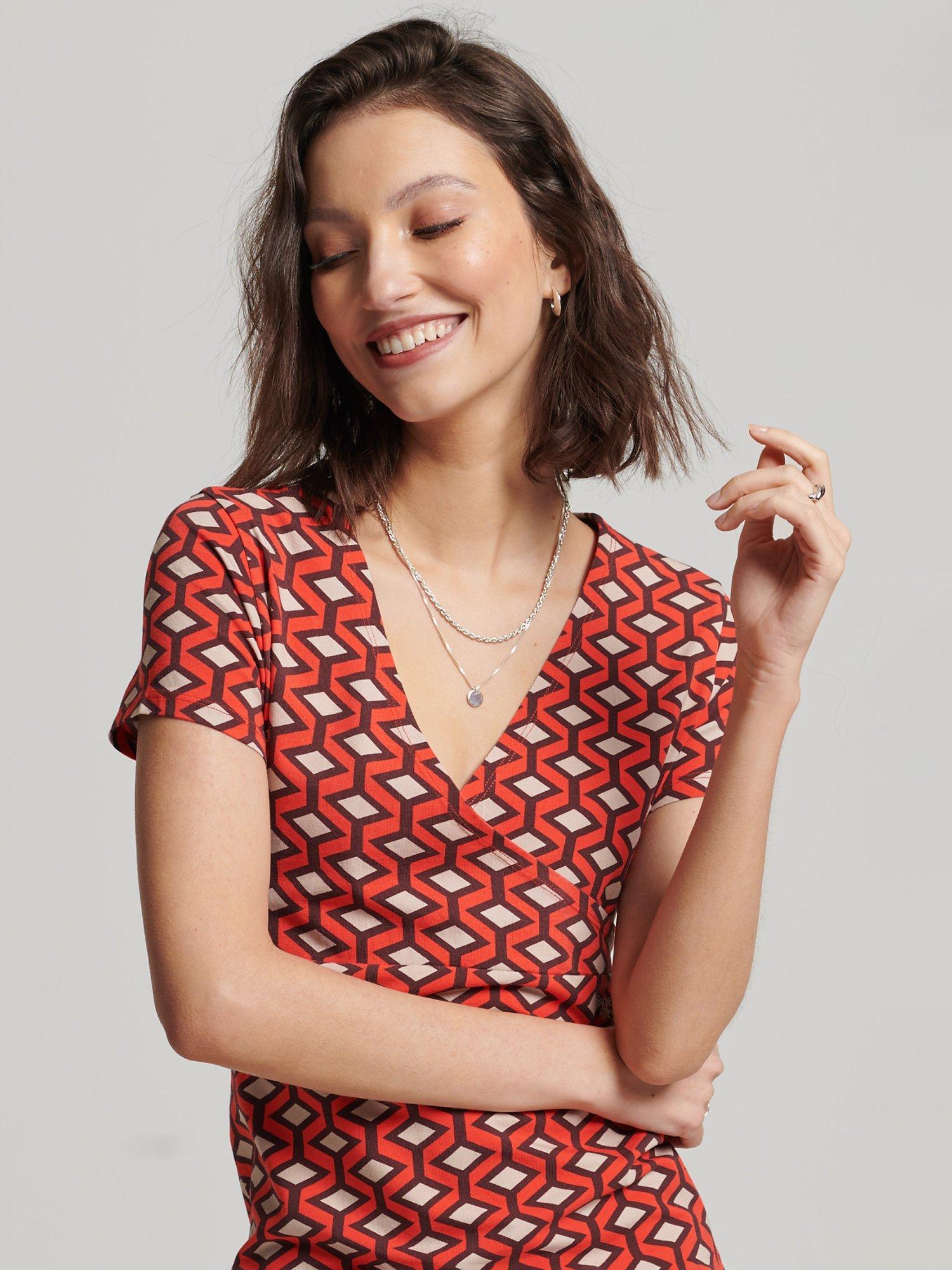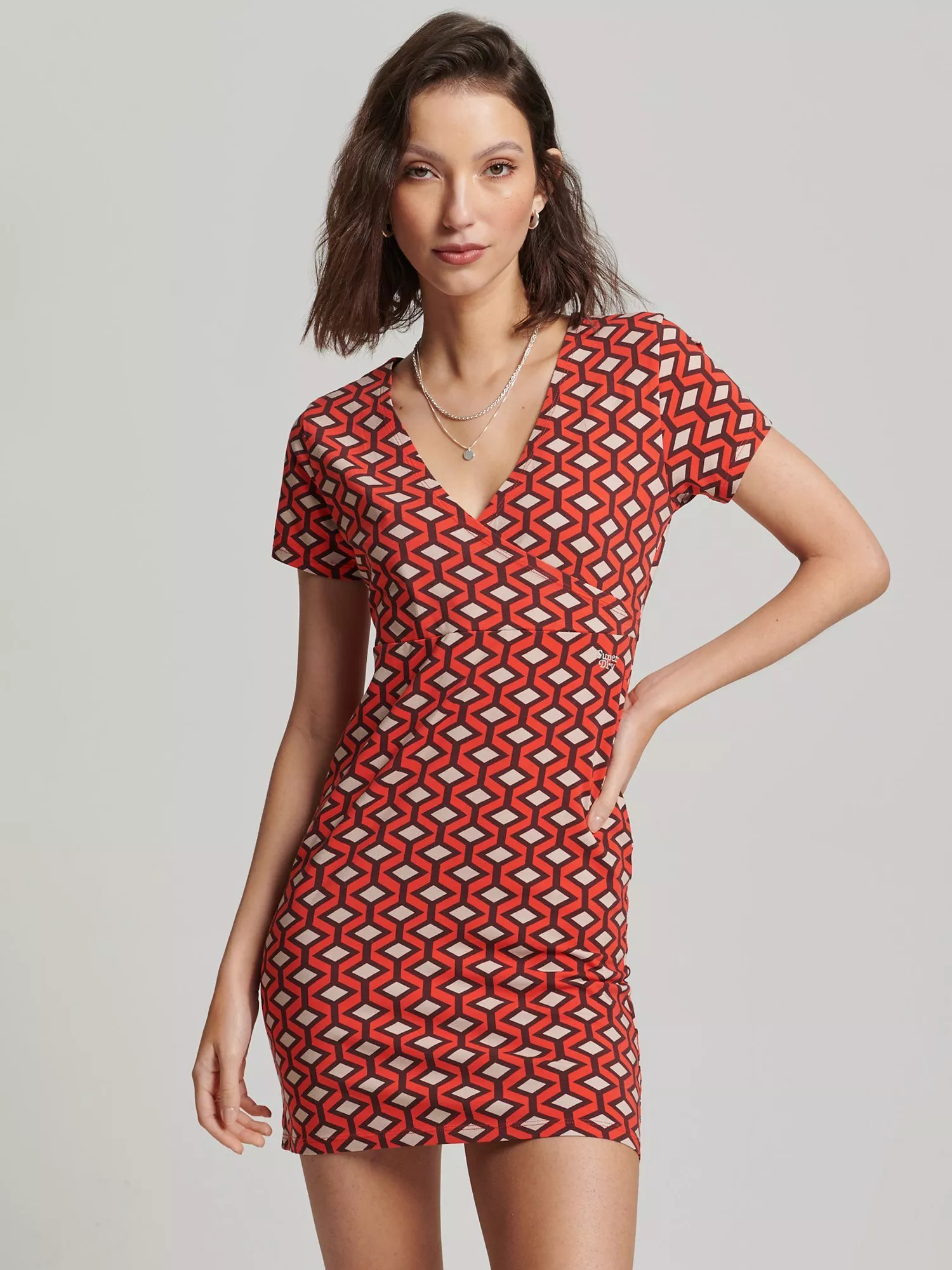 Styled in a flattering wrap over front, this mini dress by Superdry makes an impact with a bold geometric print.
