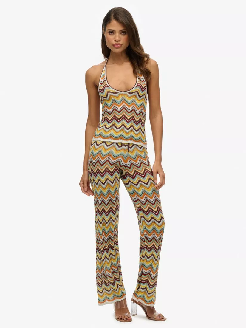 The Zigzag Knit Wide Trousers are a gorgeous blend of style and ease. Curated with effortless crochet detailing and an eye-catching yet subtle metallic fabric running throughout it, this creates a chic styling option for the coming season.