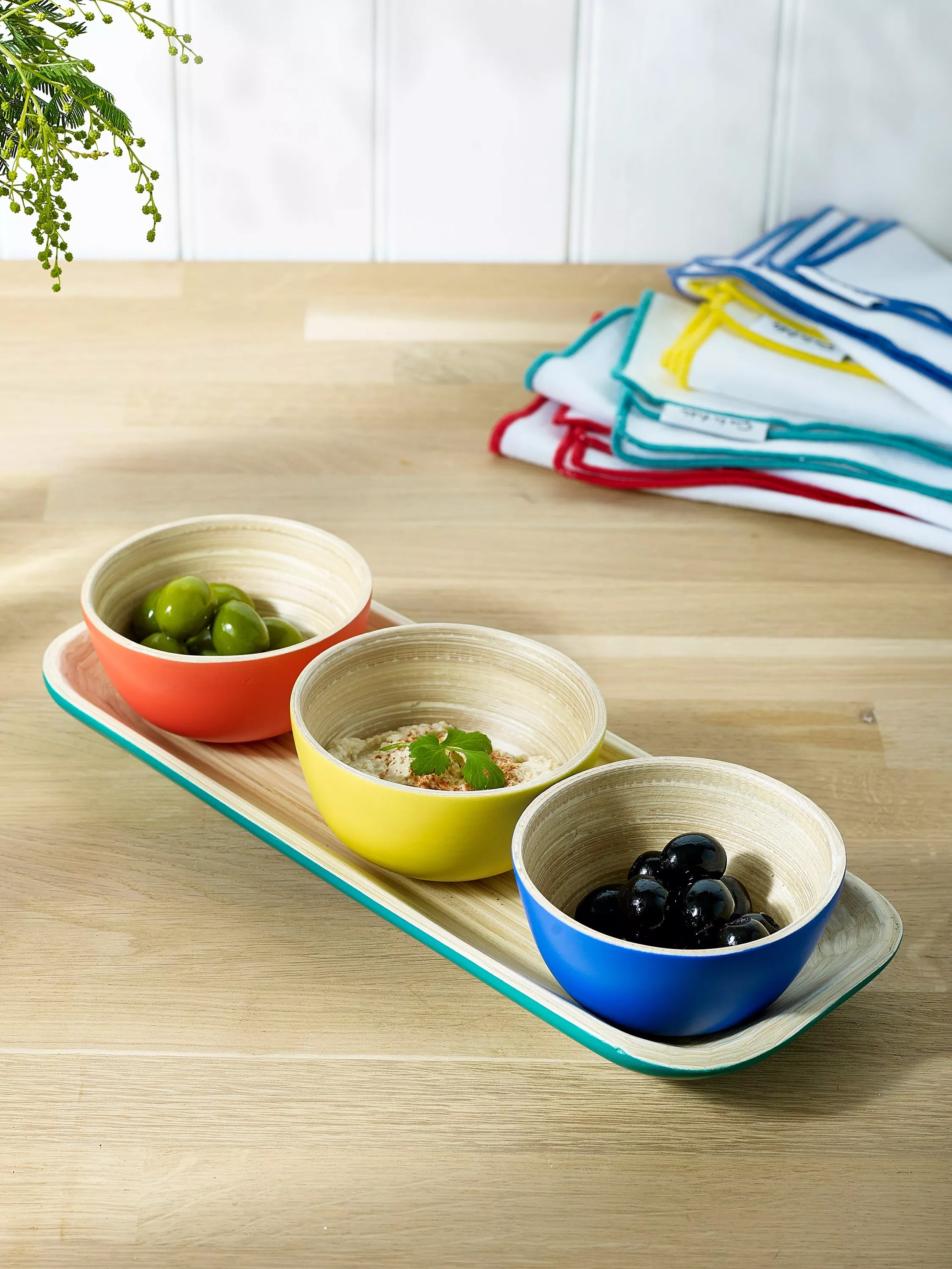 Sur La TableColour Me Happy Bamboo 3 Nibbles Bowls & Tray, NaturalMulti