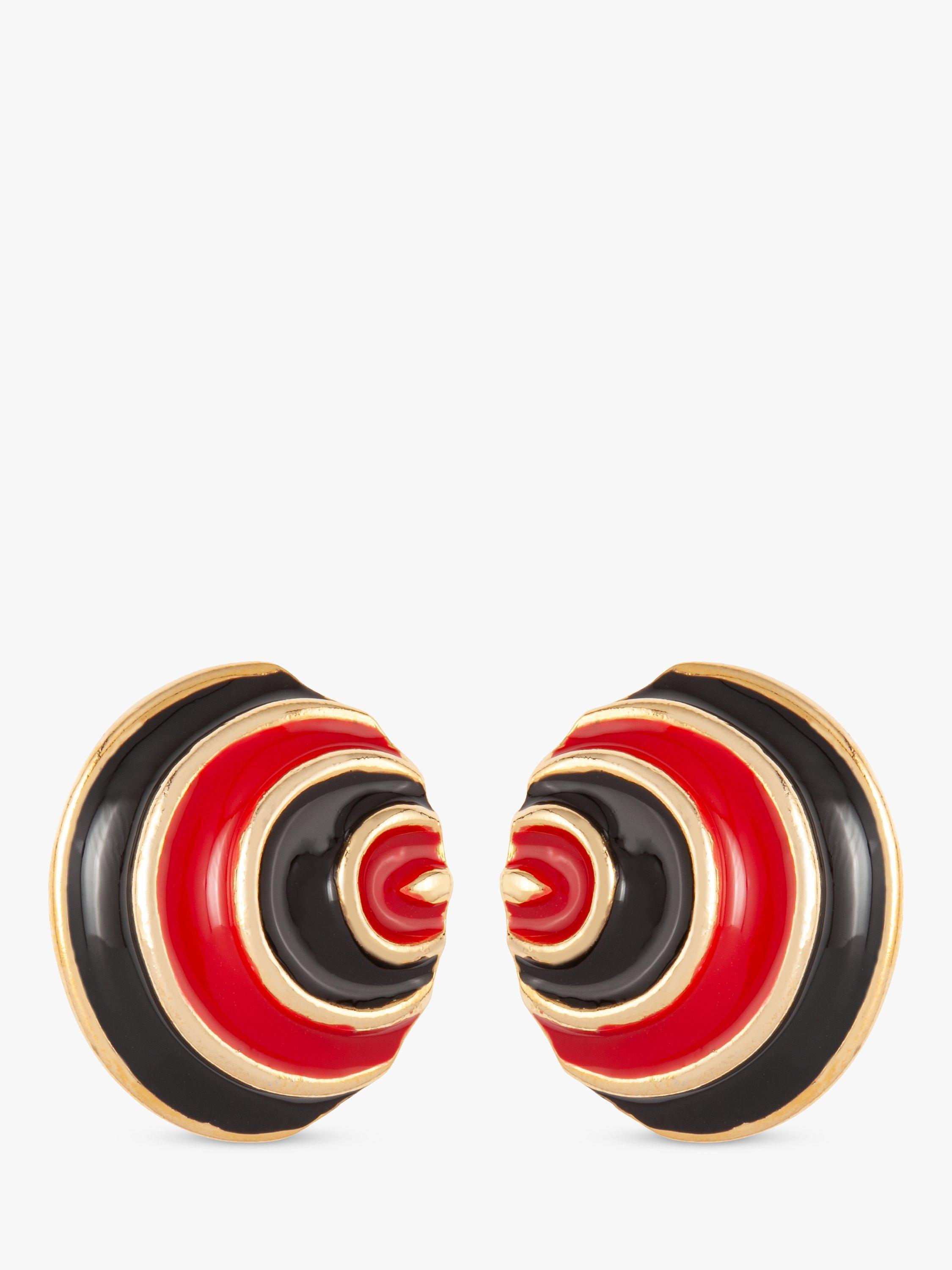 Susan CaplanPre-Loved Rediscovered Collection Gold Plated Enamel Curved Clip-On Earrings, Black/Red