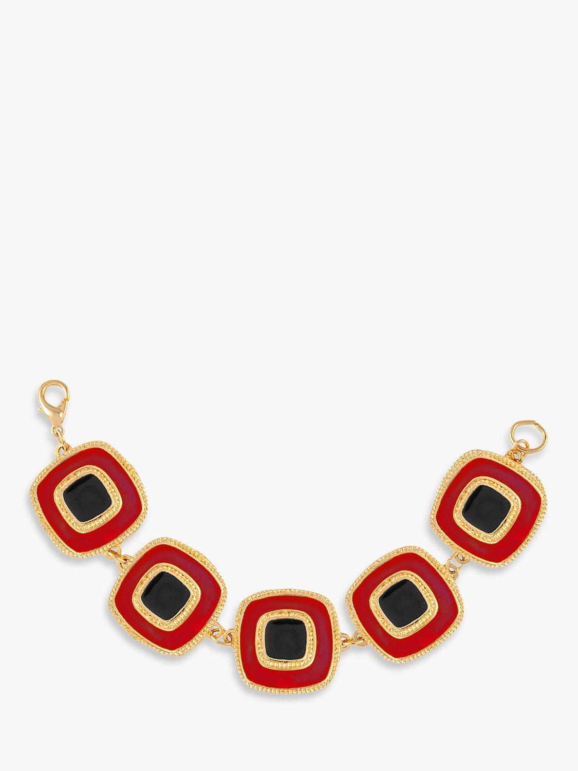 Susan CaplanPre-Loved Rediscovered Gold Plated Enamel Square Link Bracelet, Dated Circa 1990s, Black/Red