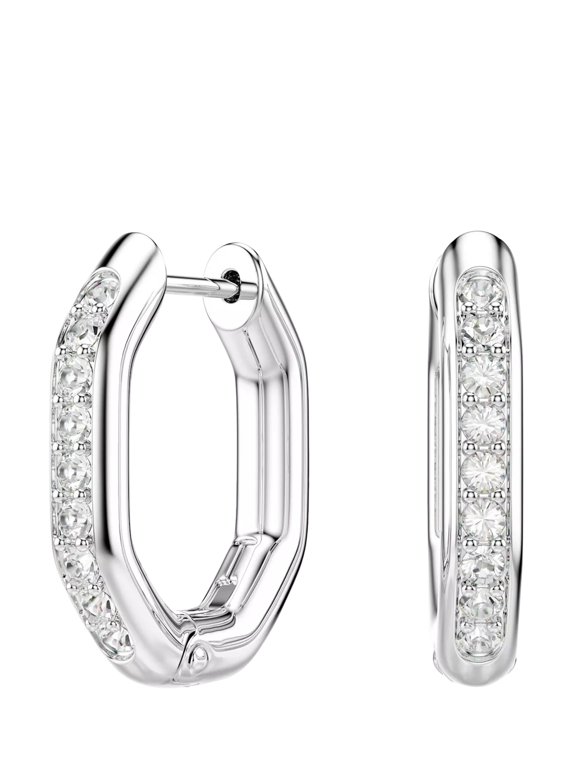 Dextera hoops have an octagonal shape and are set with round cut white crystals.