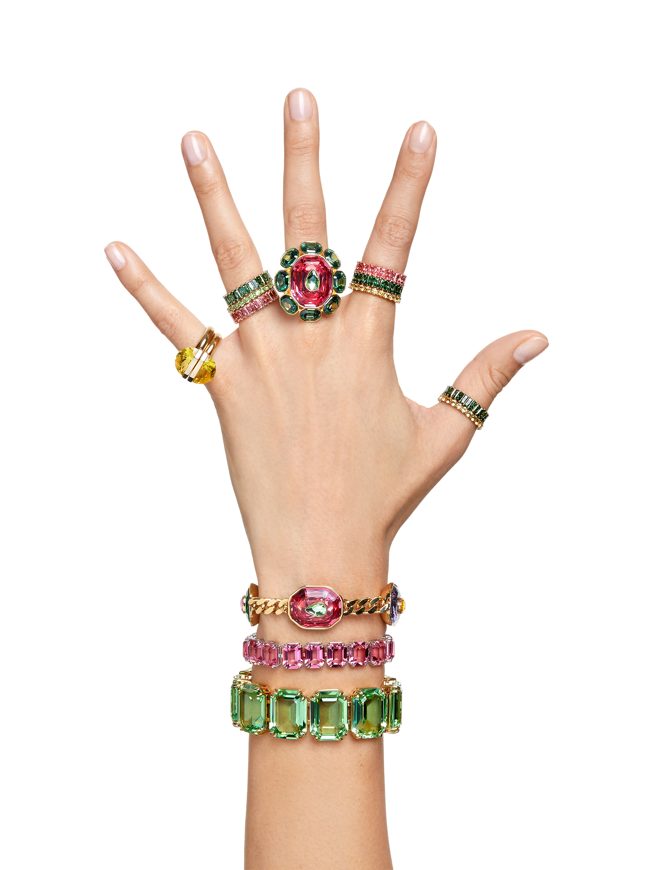 Crafted with a sleek circle of crystals, this Matrix ring will make a mesmerizing addition to your jewellery box. In a process that unites science and magic, the princess baguette-cut stones are set on a gold-tone plated band. This glowing accessory is perfect for stacking, allowing multiple combinations for all occasions.