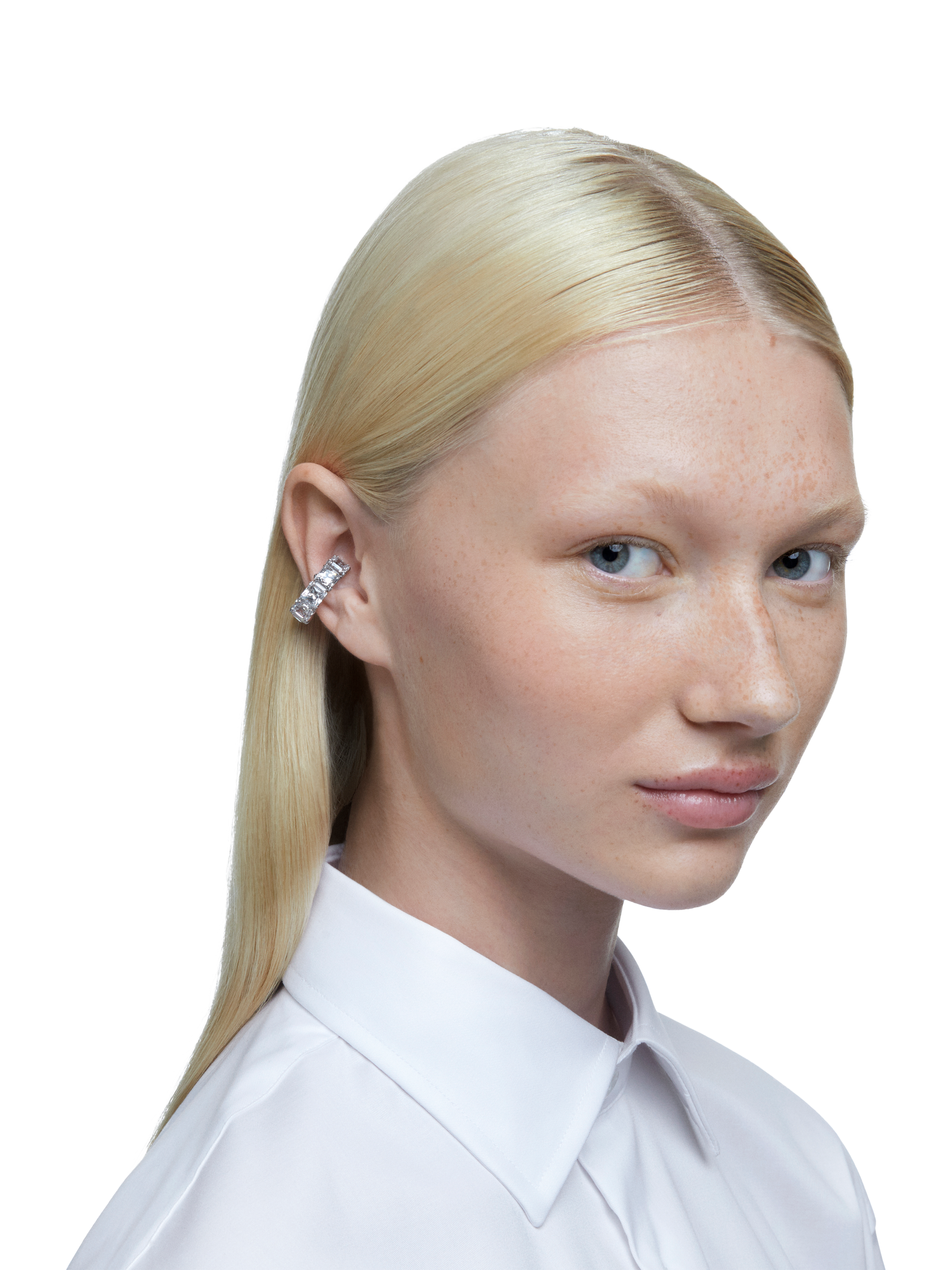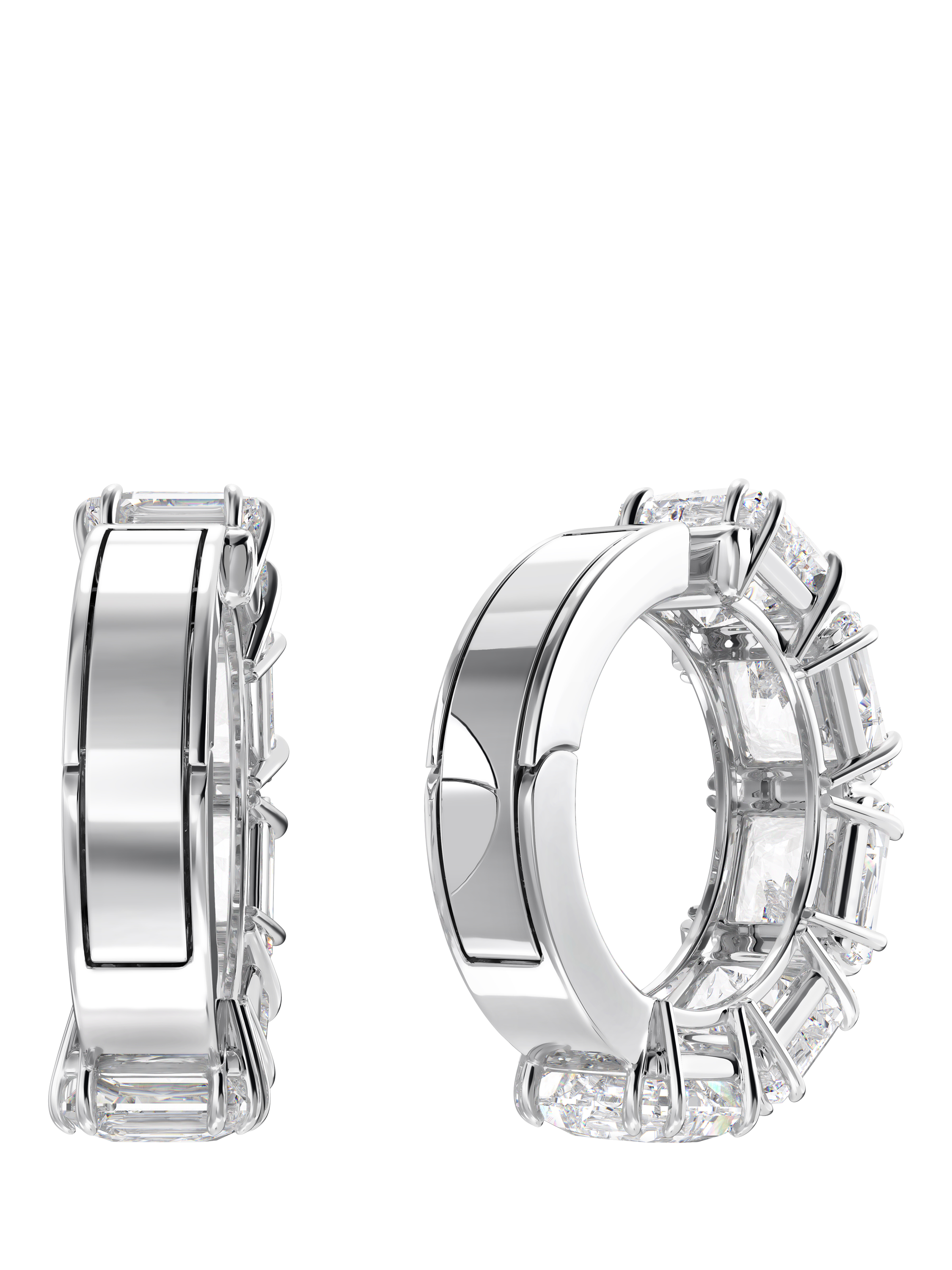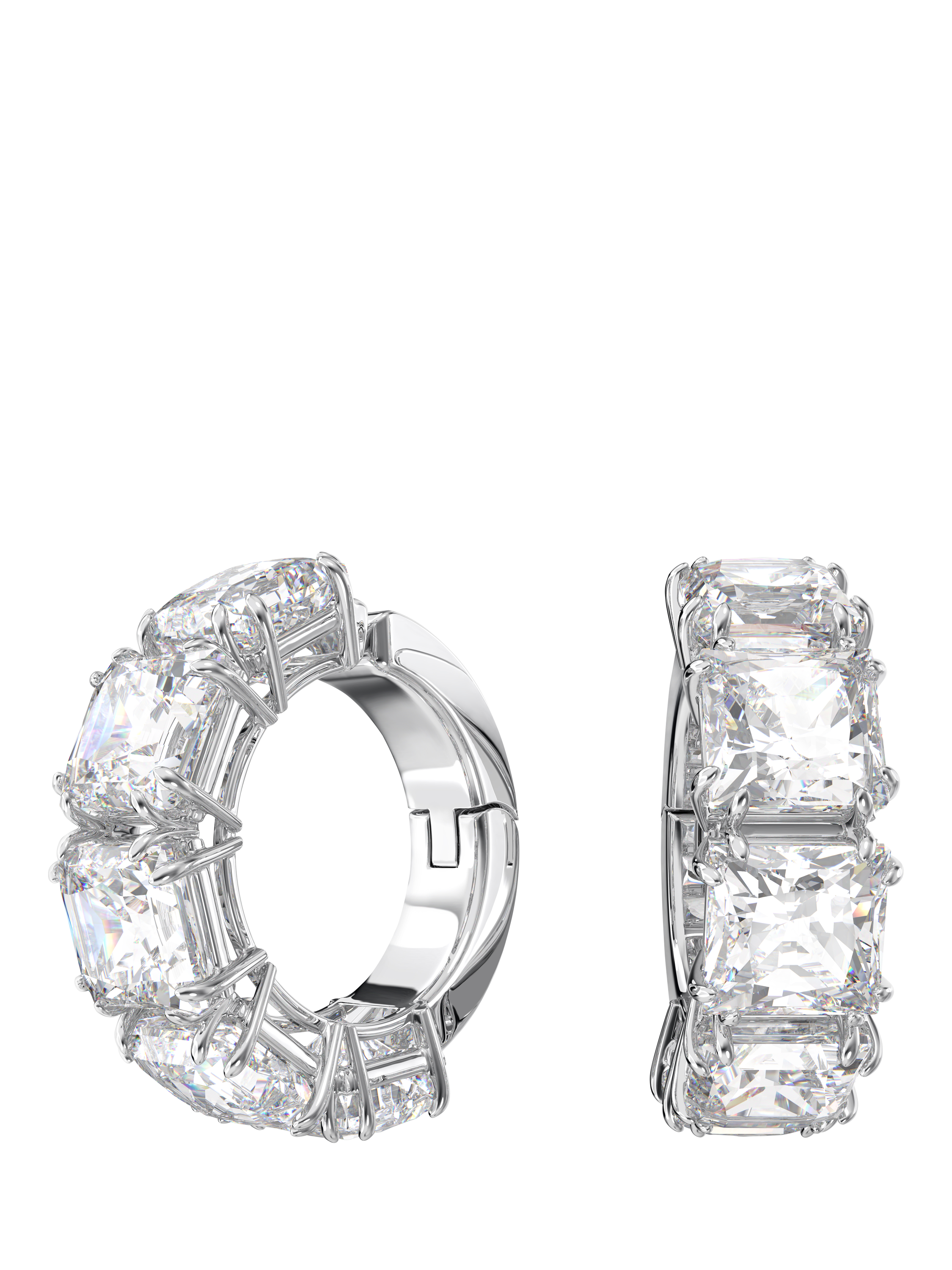The essential style of the Matrix family is masterfully displayed in these shining clip-on earrings. A uniform row of clear square-cut stones is set in plated metal, igniting a harmonious balance of metal and crystals. It's a dazzling look that can be enjoyed any time - day or night.