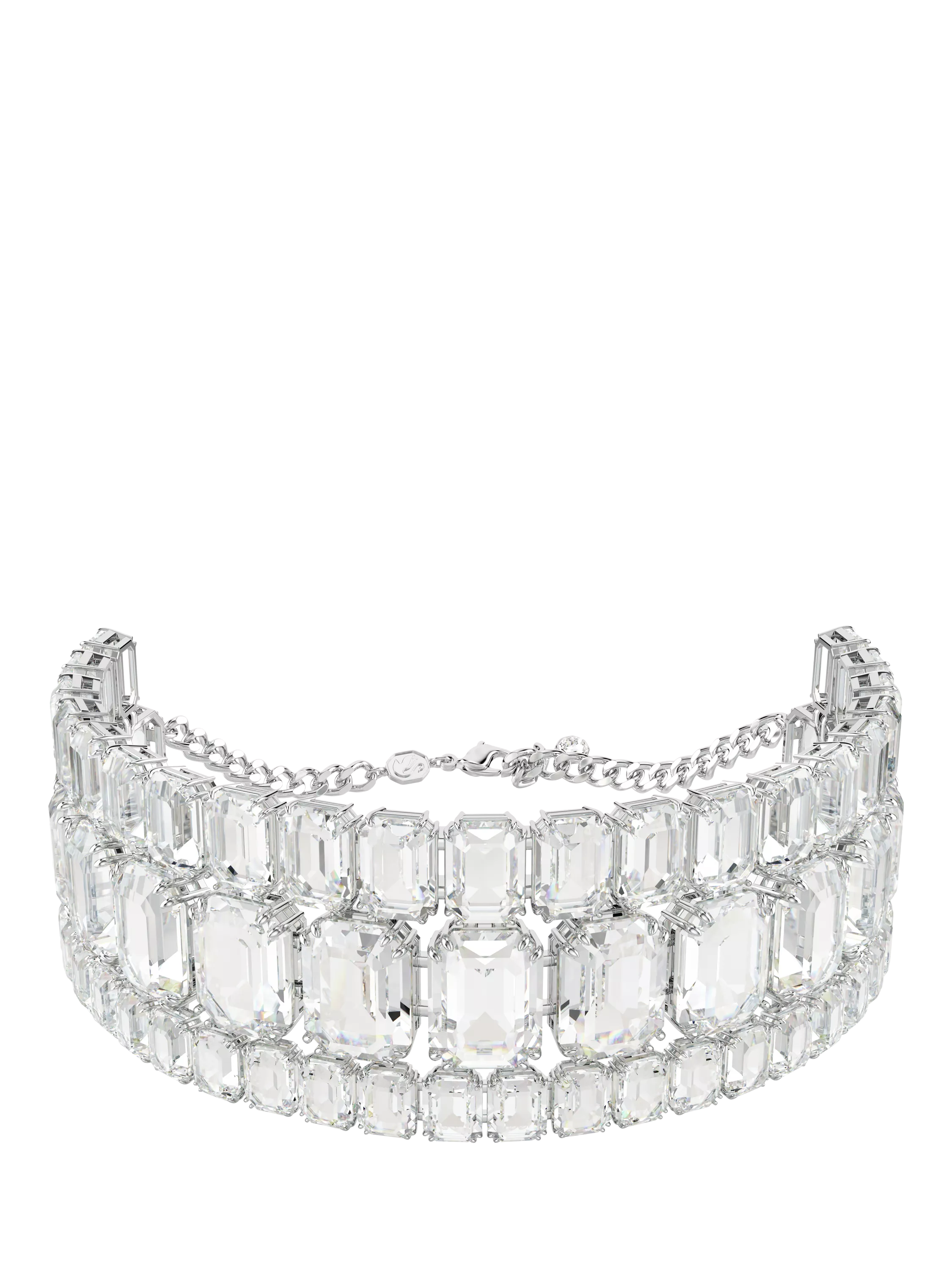 Empower your everyday style with this stunning Millenia choker. A glittering statement piece, the design features three radiant rows of clear octagon-cut crystals in varying sizes. This showstopping design is ideal for day-to-night fashion and a spectacular example of Swarovski's mastery of light.