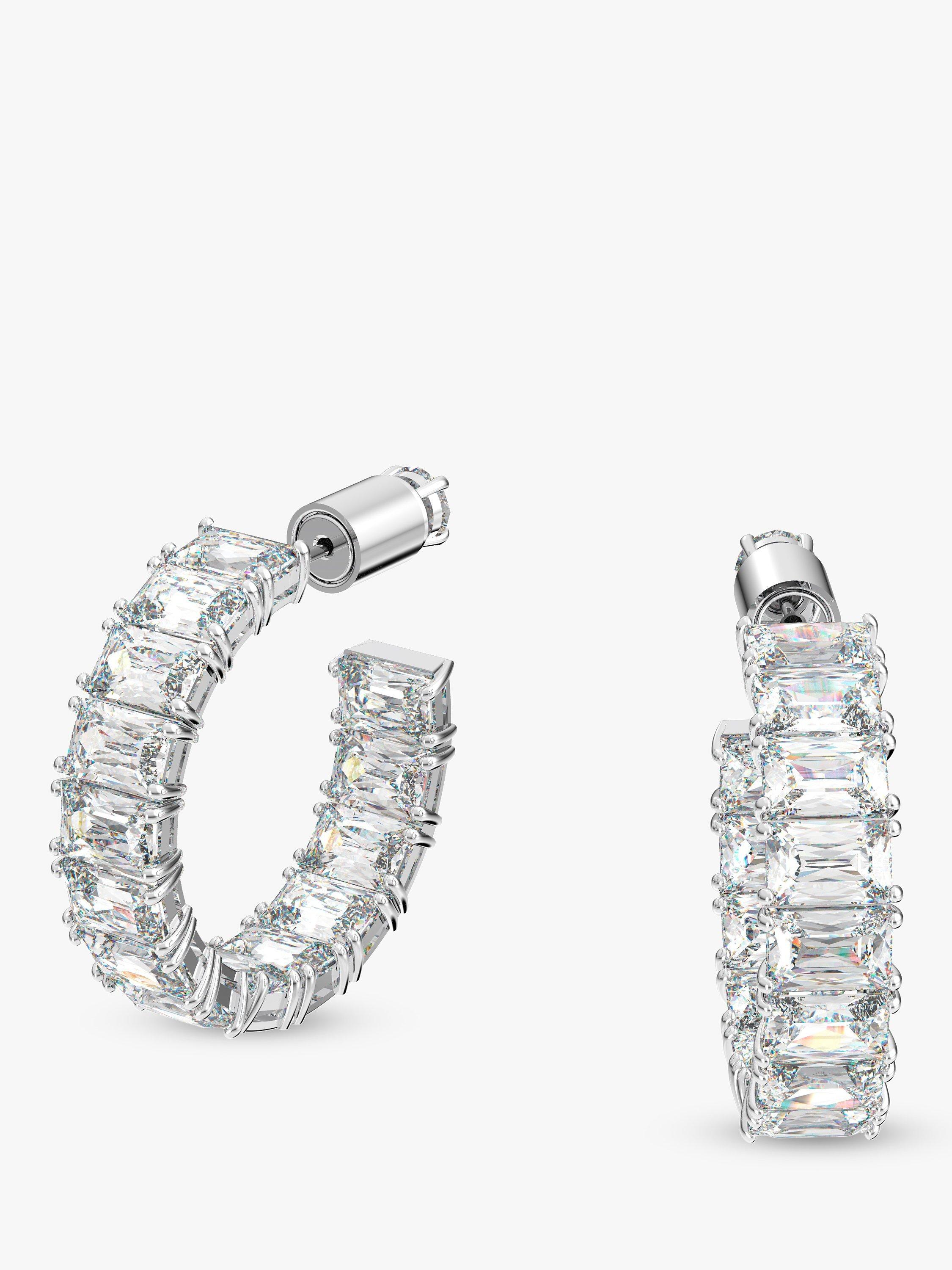 A classic hoop design with a dazzling twist, this elegant pair features a uniform row of octagon-cut stones cradled in a fine plated frame. Ideal for adding a touch of glam to your look, they are secured with post fittings that are for pierced ears only.