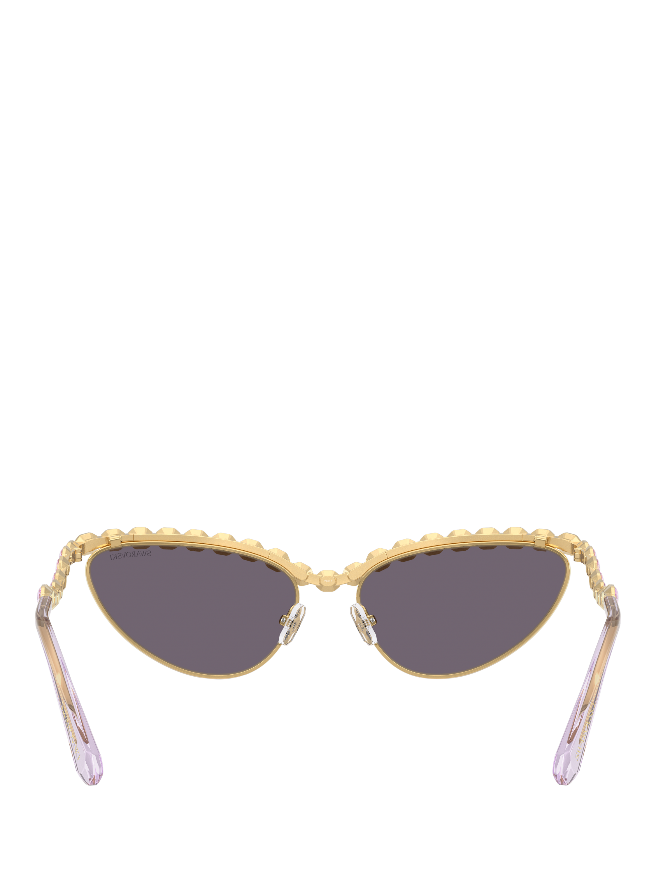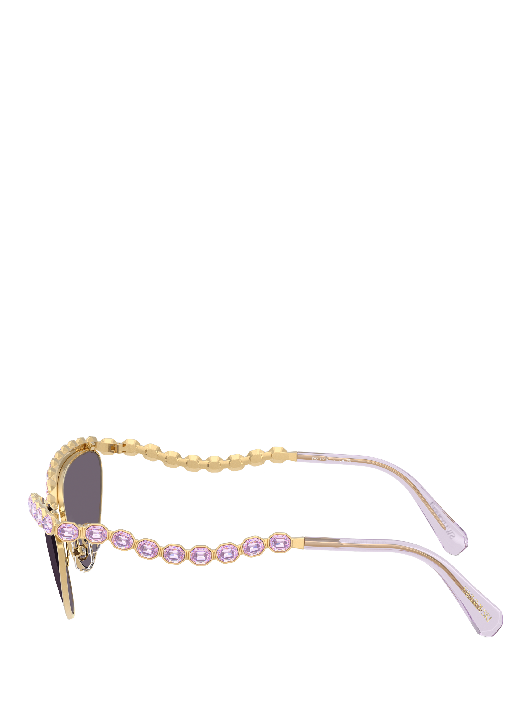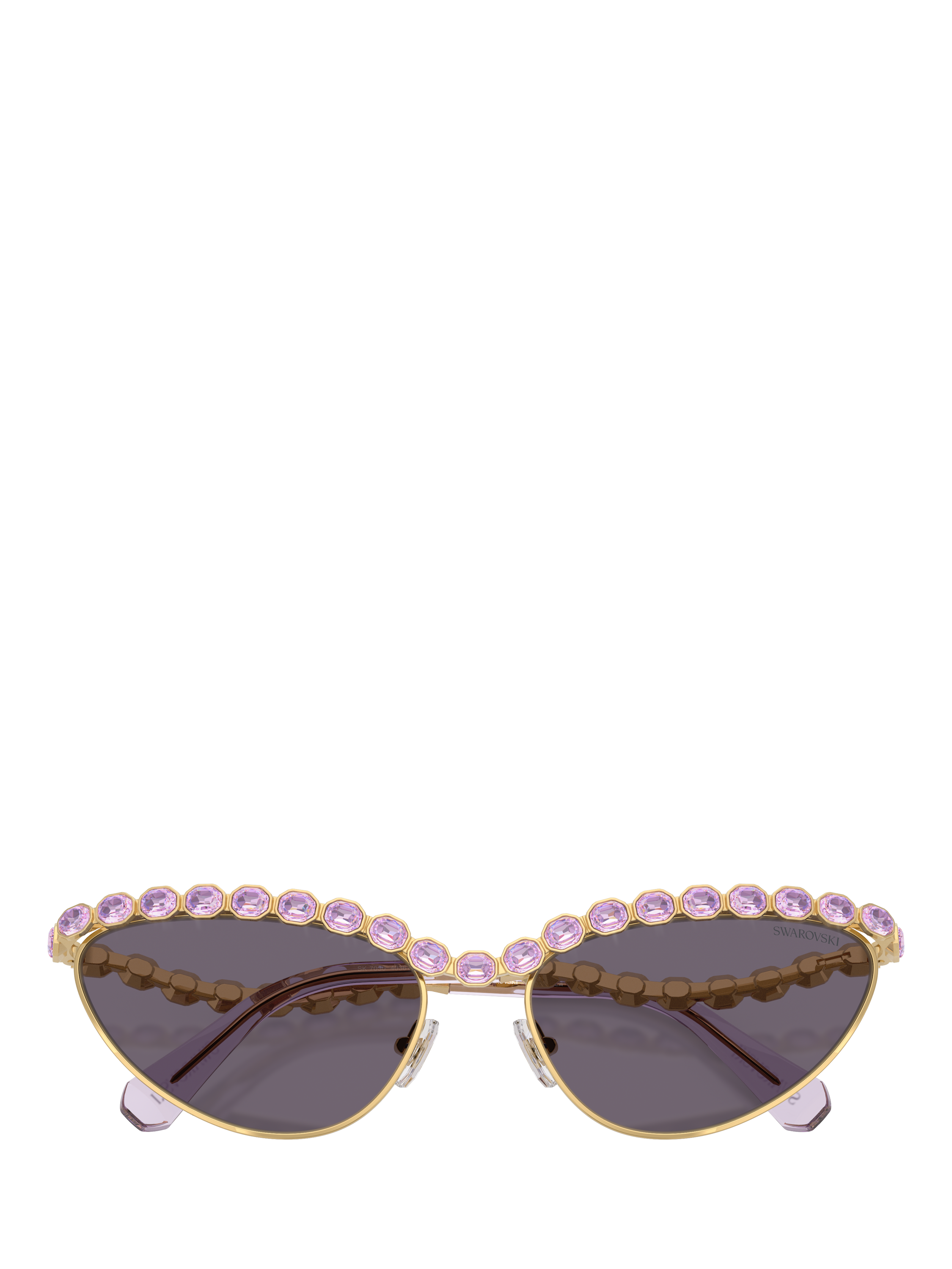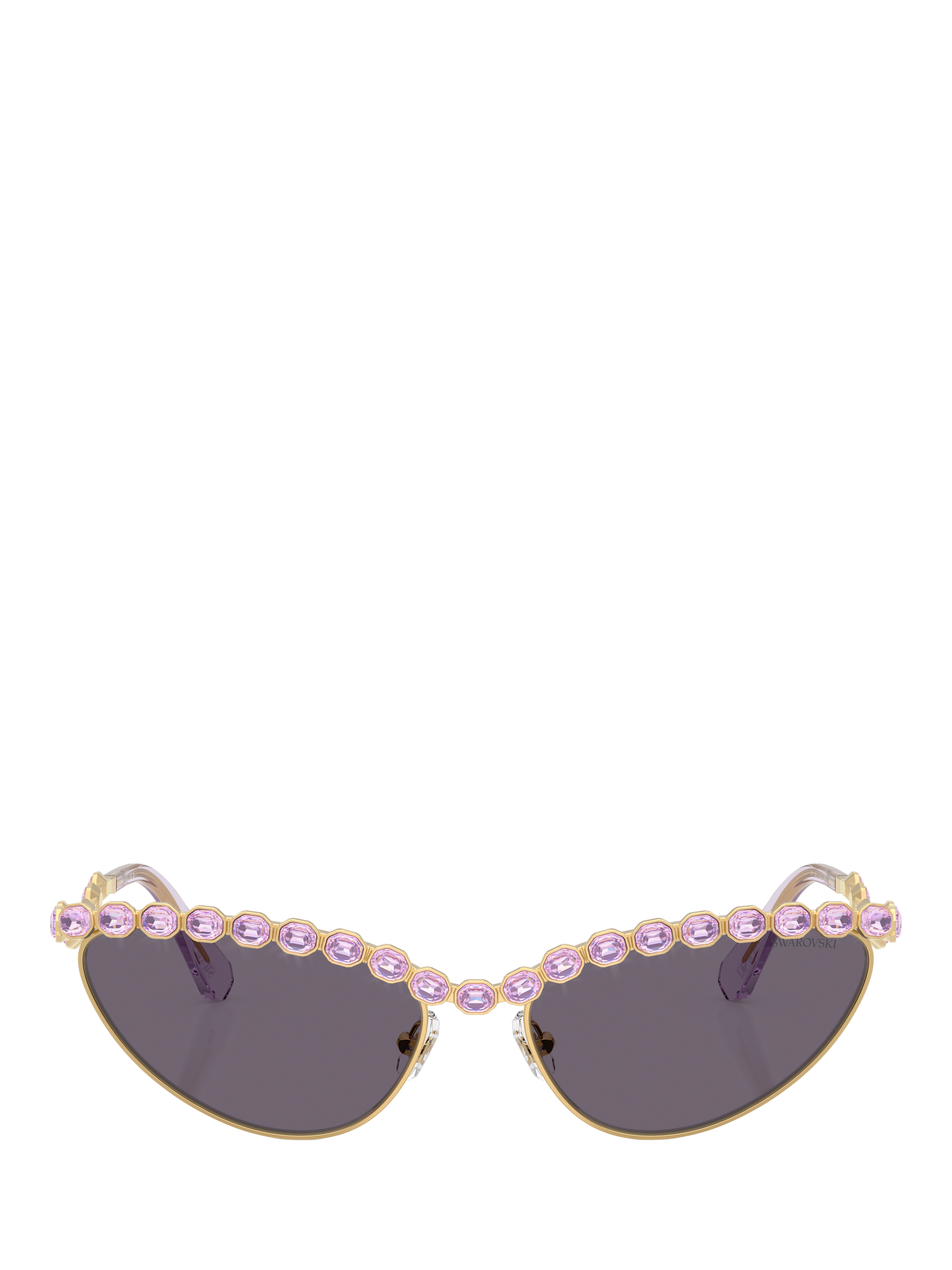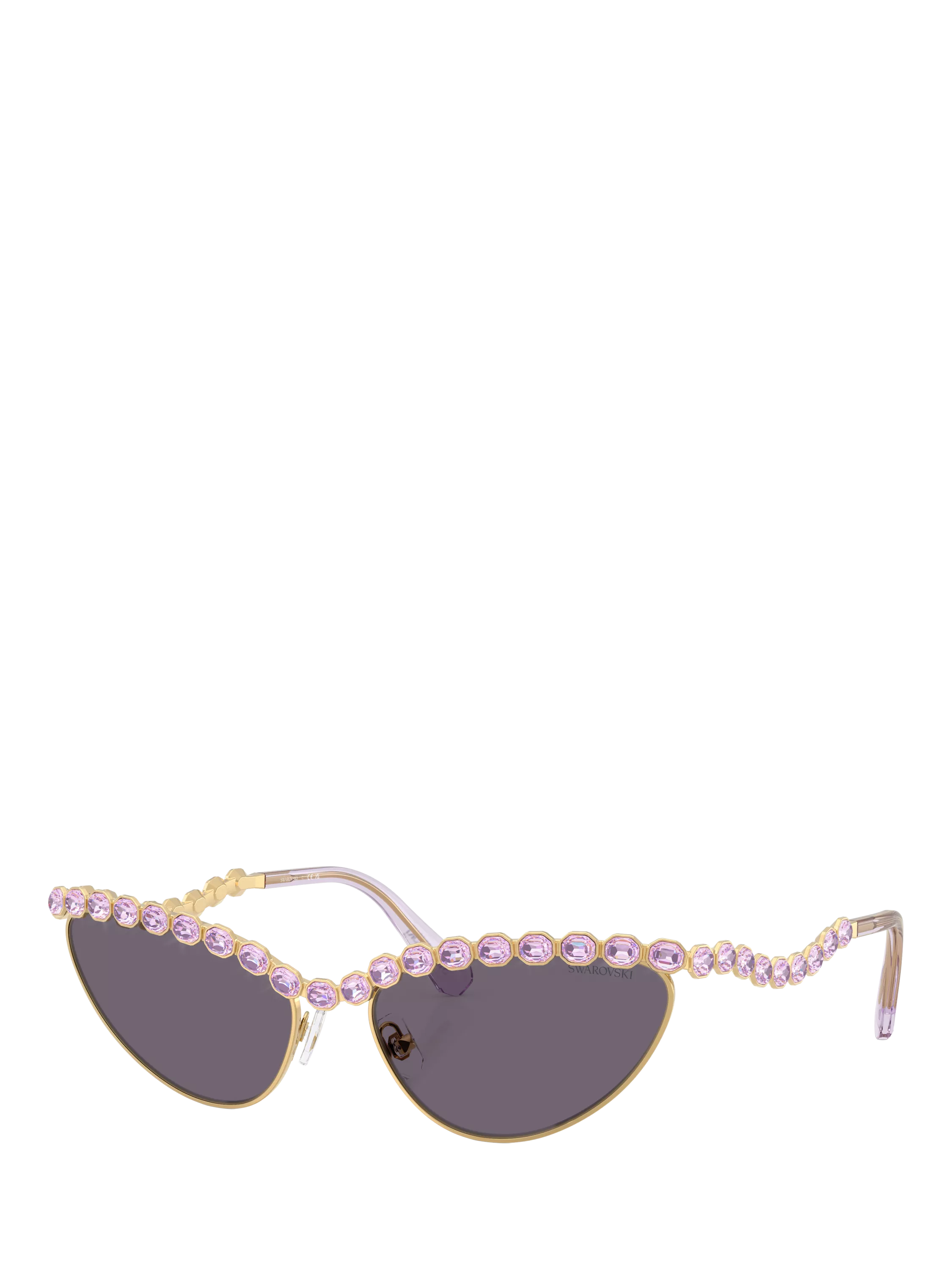 Adding vintage glamour to your collection, these cat's eye sunglasses for women are curated by Swarovski. With an impact resistant polyamide makeup that has you covered all day, this trend-setting pair is fashioned with violet tinted lenses and an embellished trim.