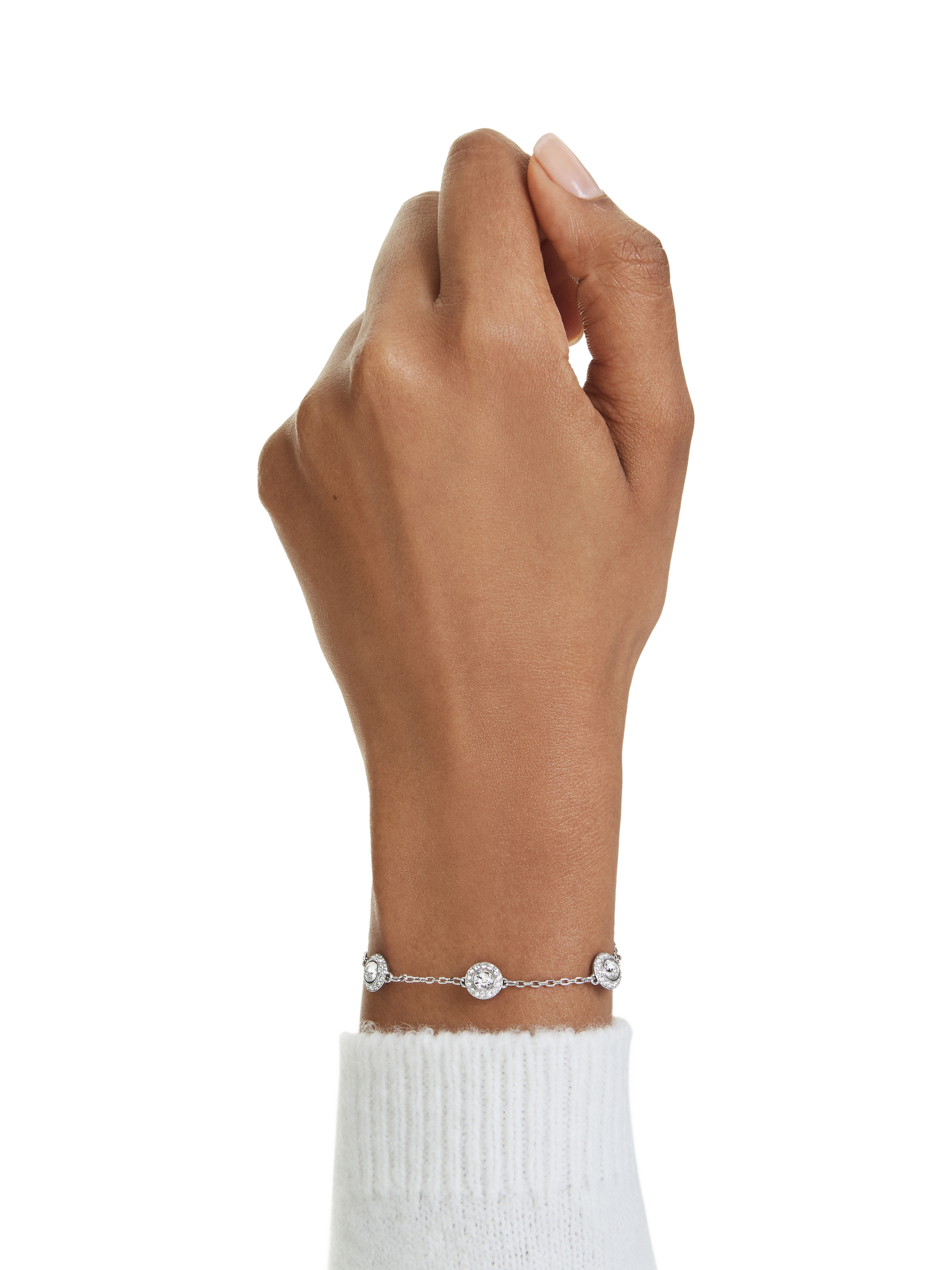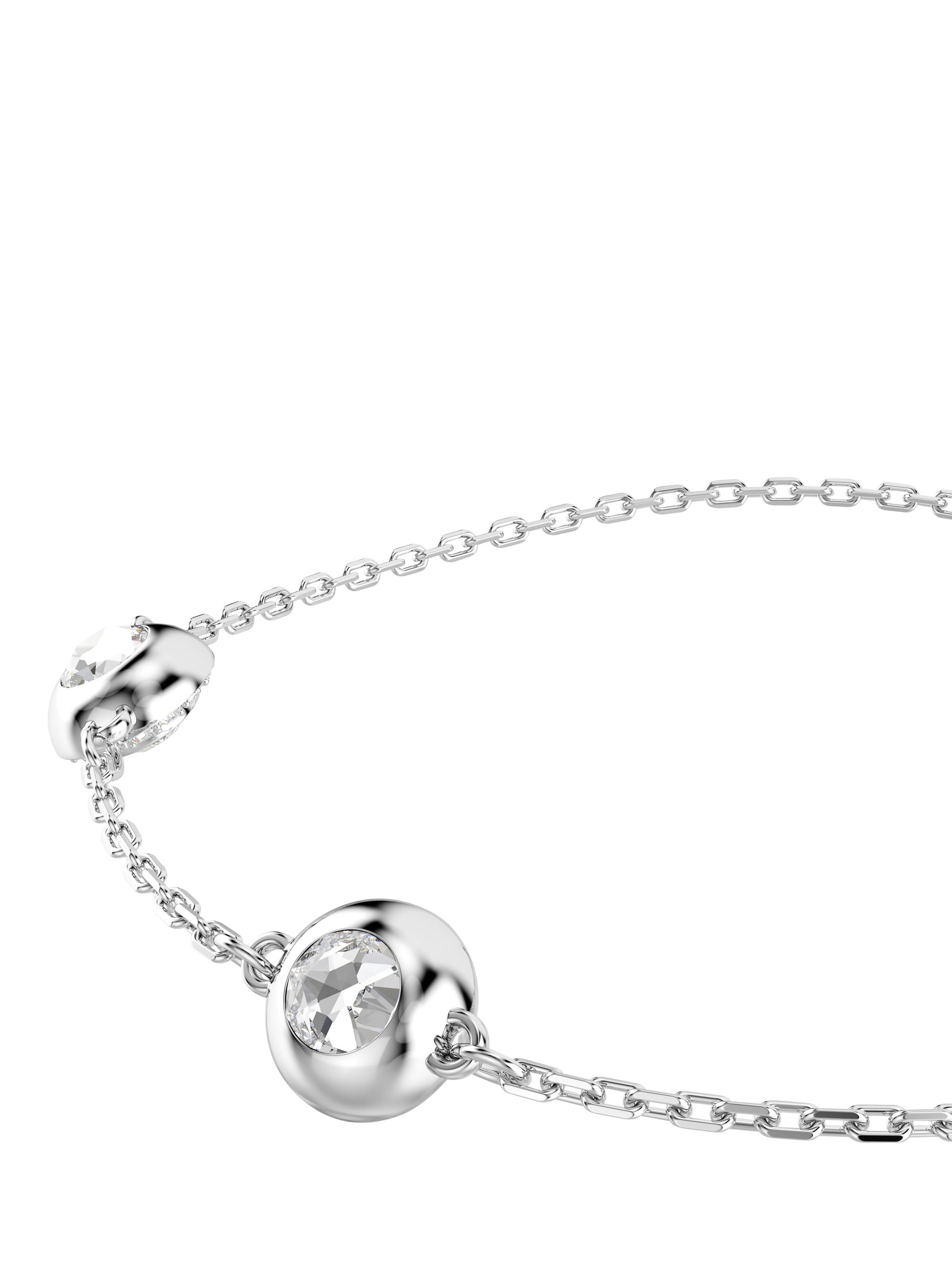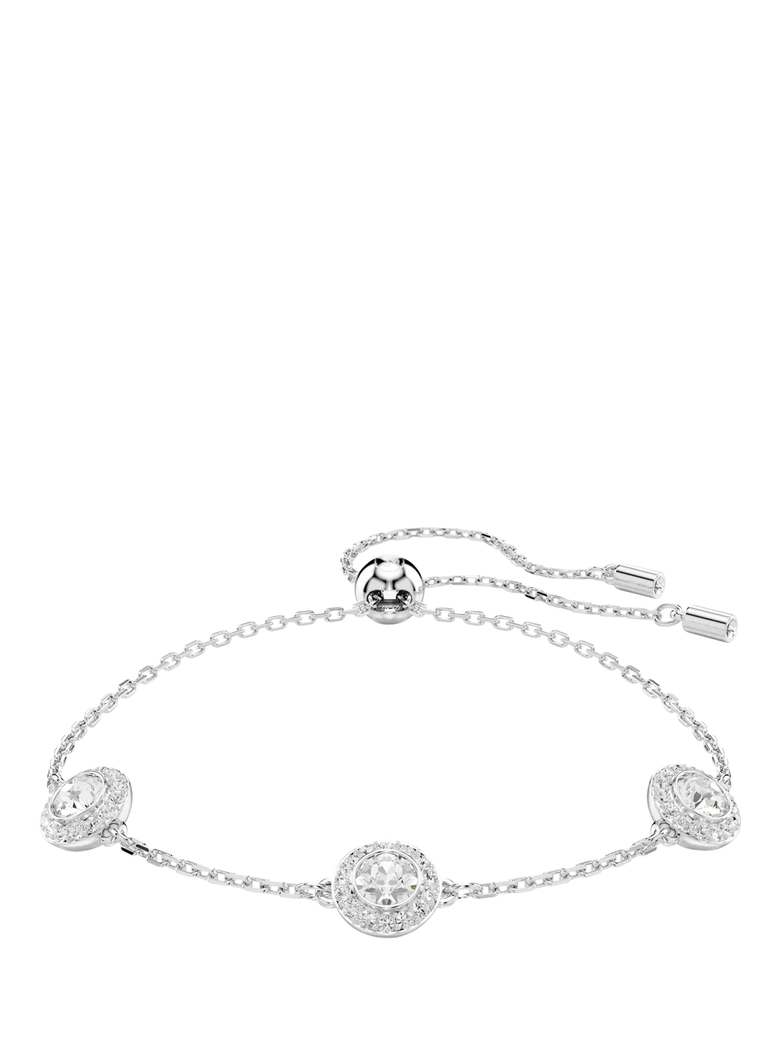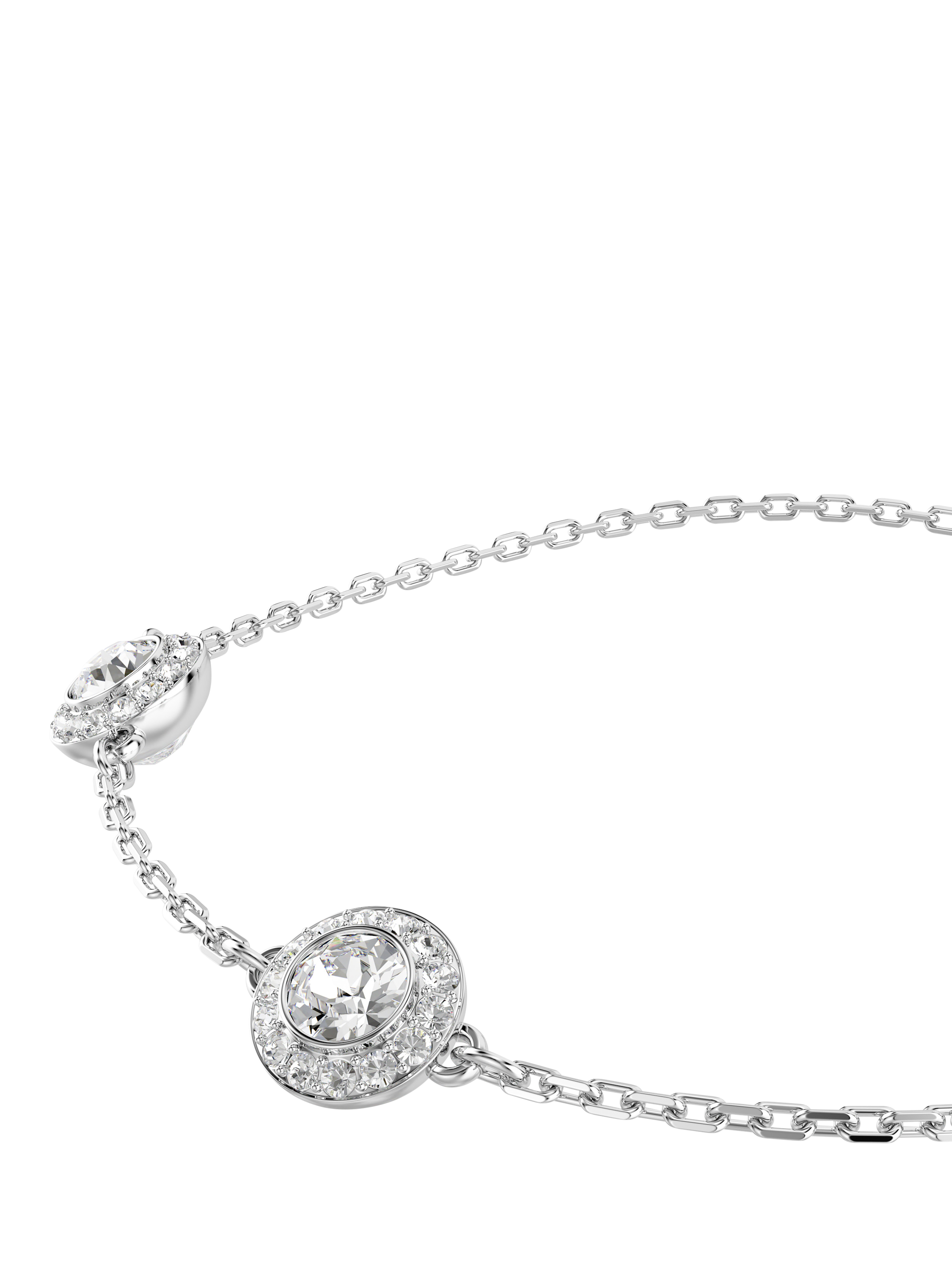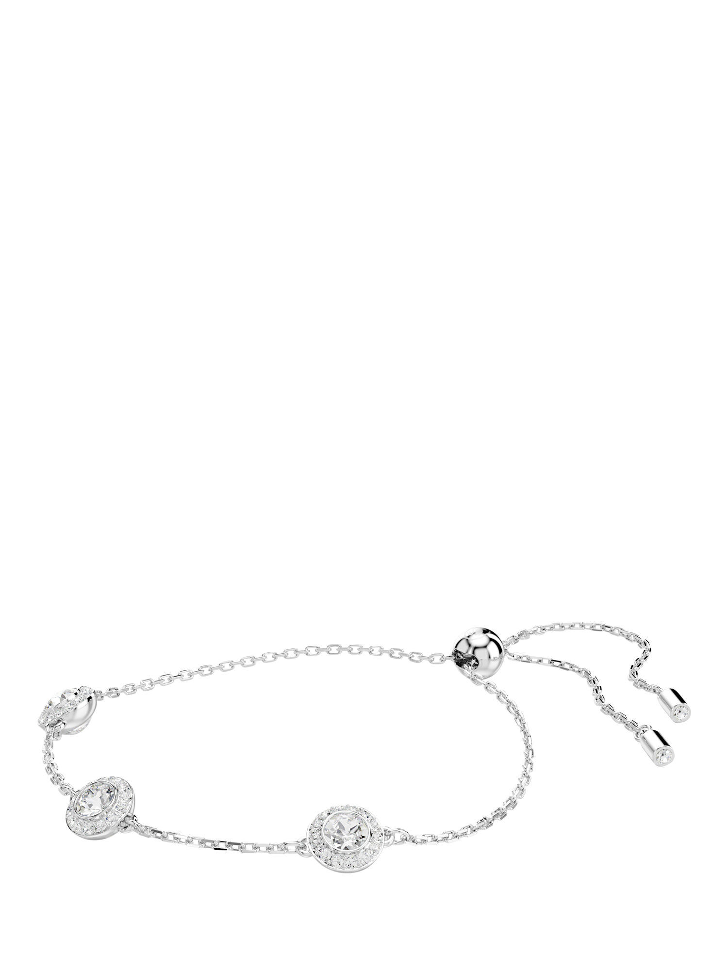 Showcased on a delicate, rhodium-plated chain, the Una Angelic bracelet from Swarovski features sparkling, round-cut crystals, and secures on the wrist with an adjustable toggle fastening.