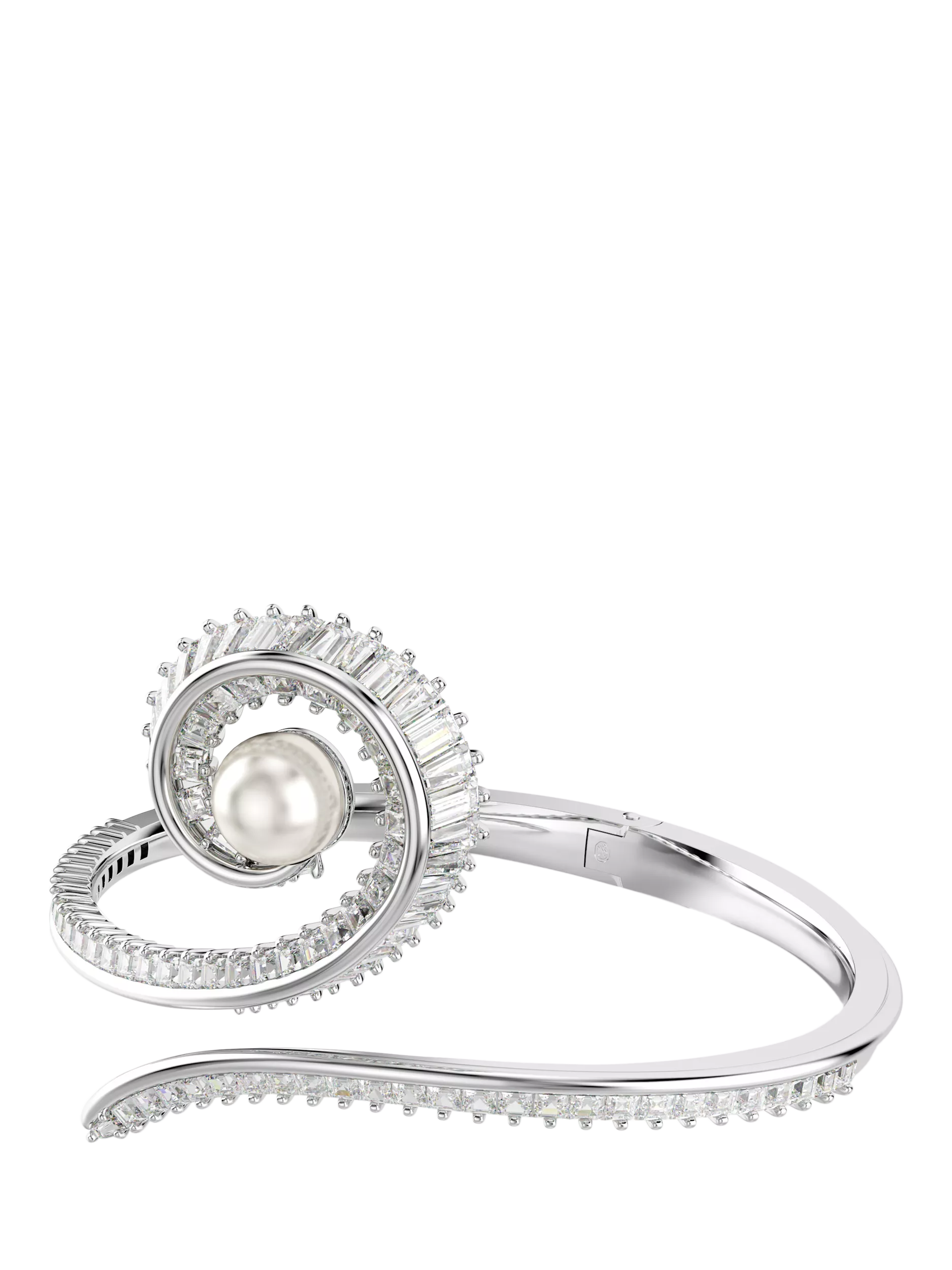 This music-inspired bangle combines elegance with creativity. Taking the abstract form of a treble clef, the design is beautifully spiralled and set with baguette-cut Swarovski Zirconia. For an extra touch of luxury, a single Swarovski Crystal Pearl is then placed at the centre. The perfect way to give your style an upbeat and rhythmic infusion.
