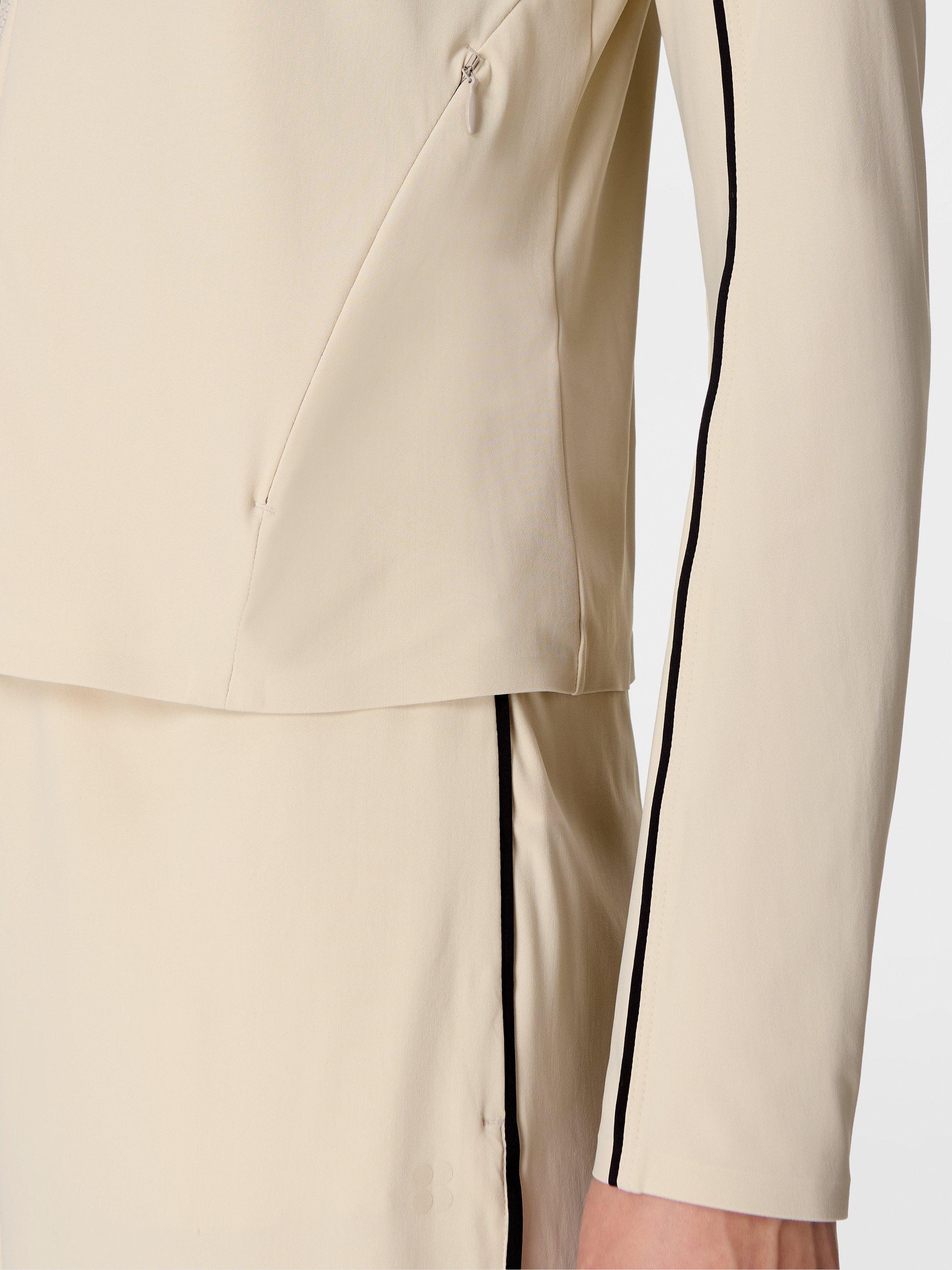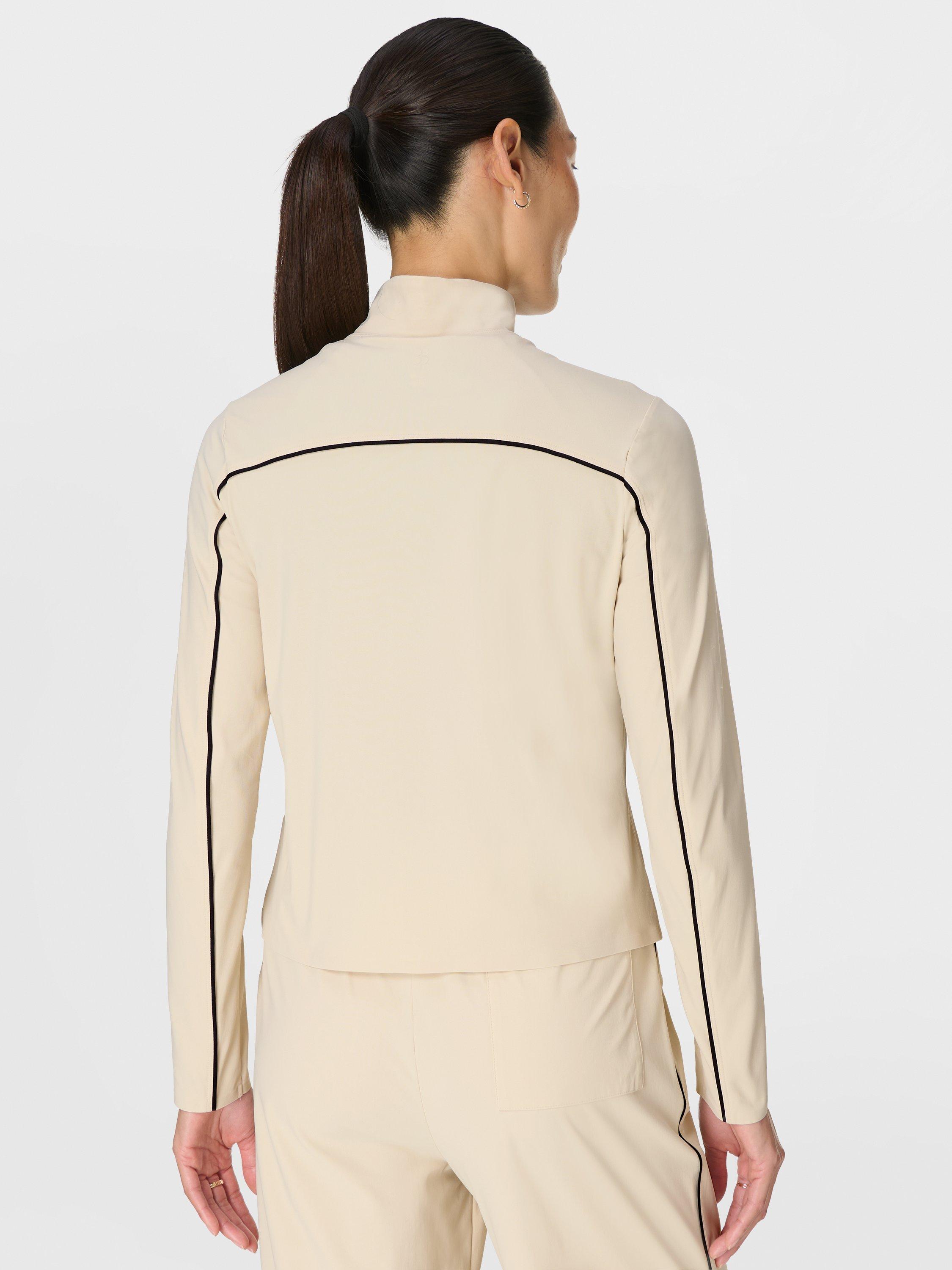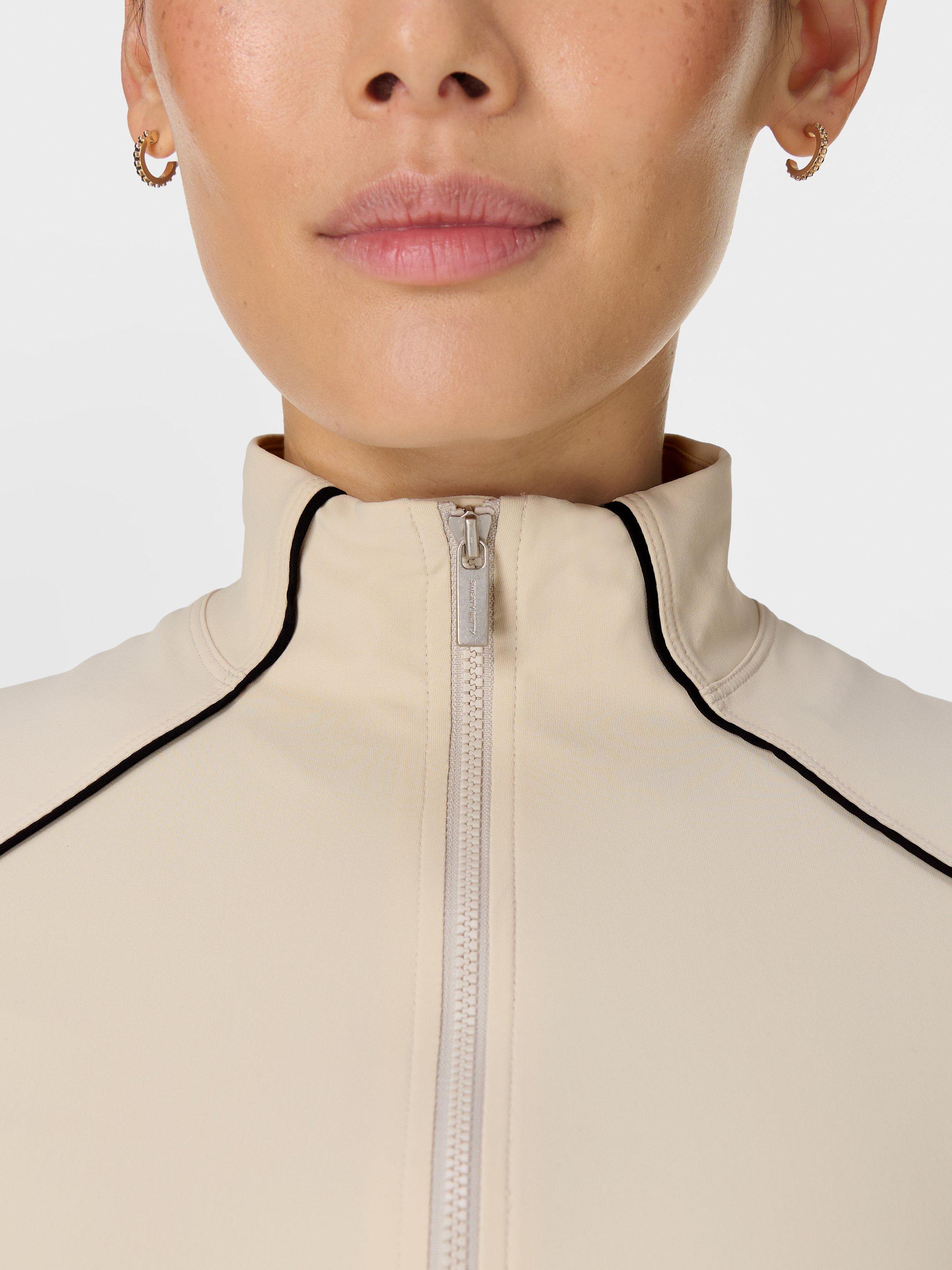 A high neck zip-front jumper, made from a soft stretch fabric that layers well over any base.