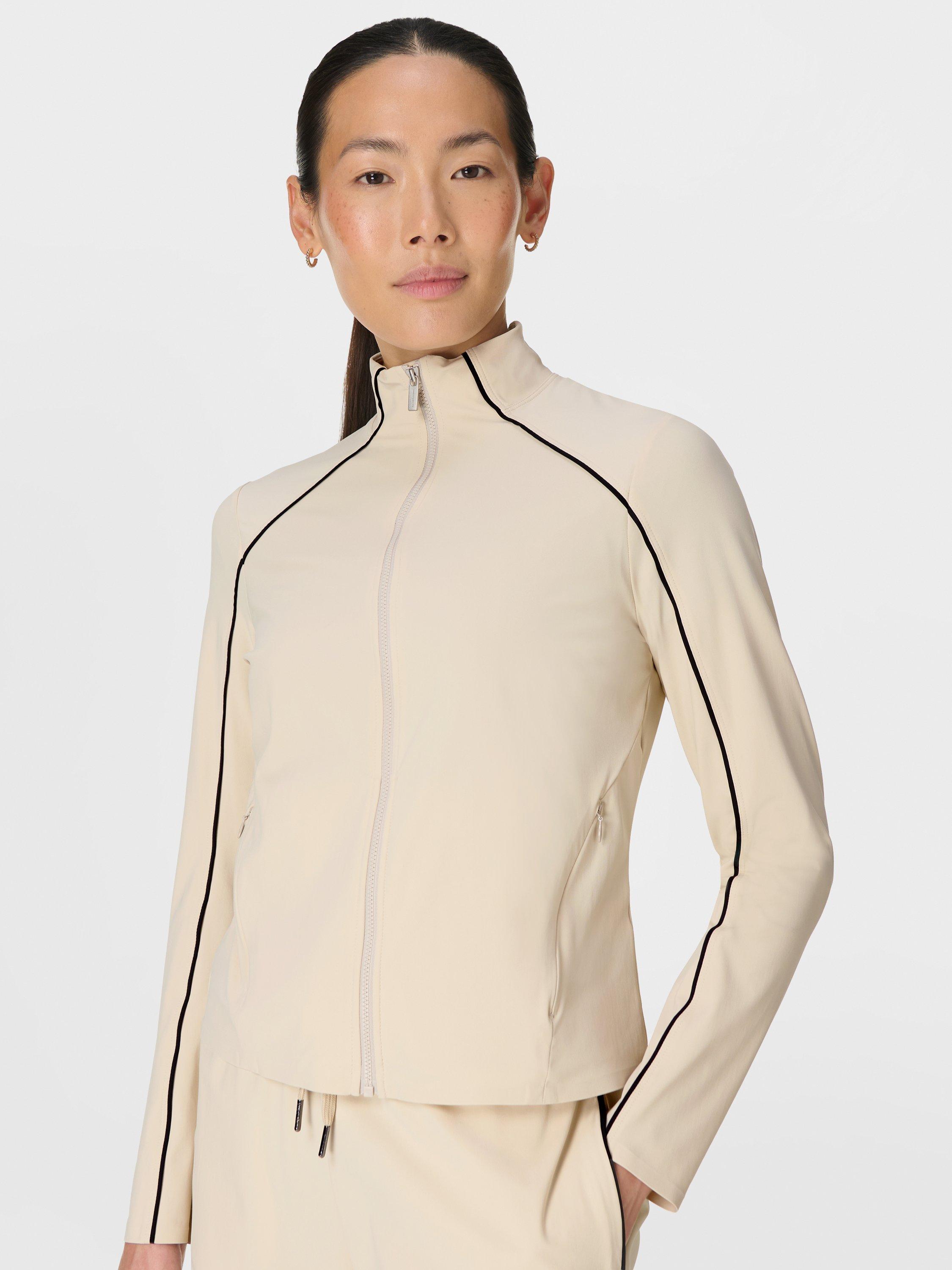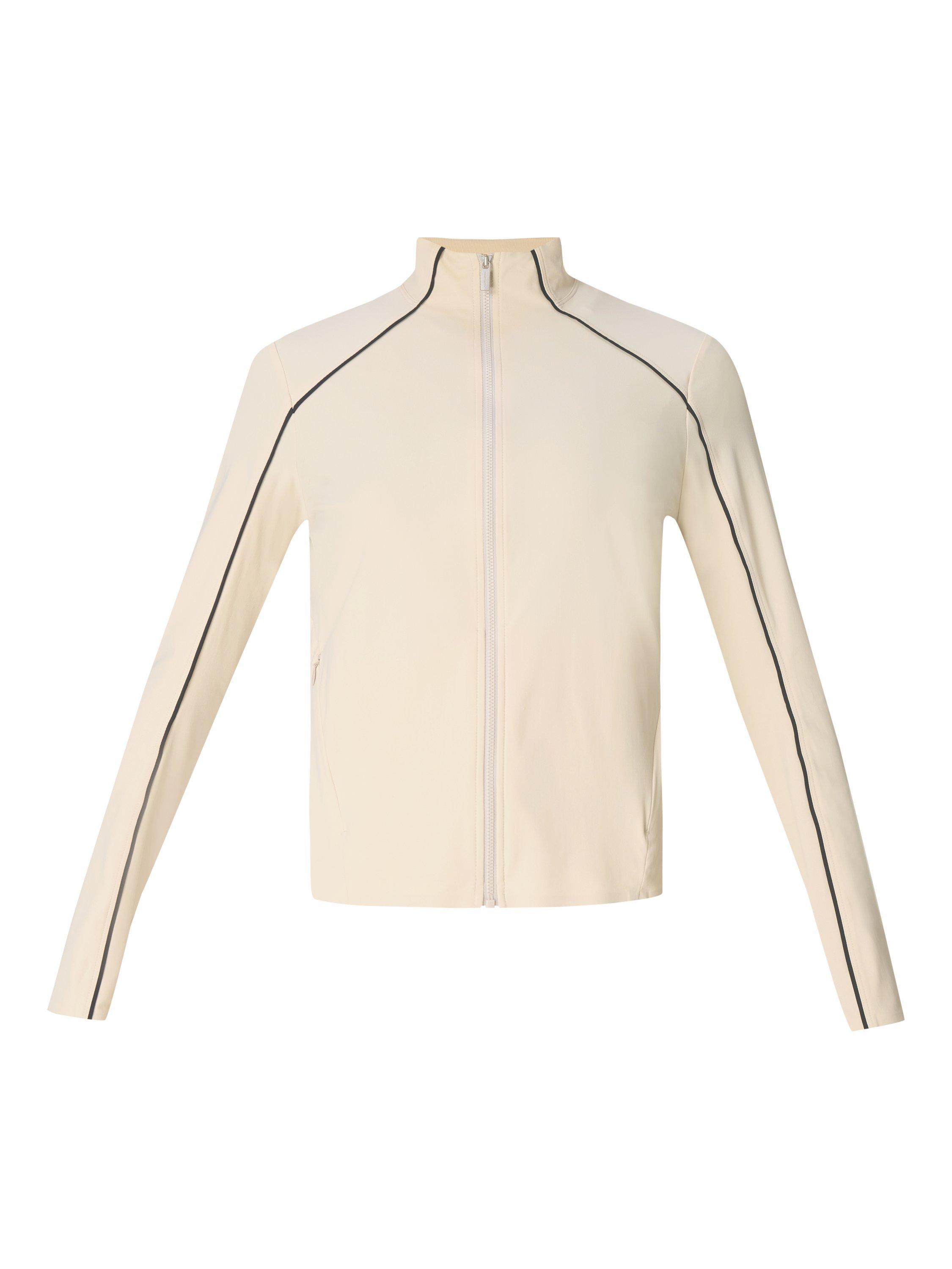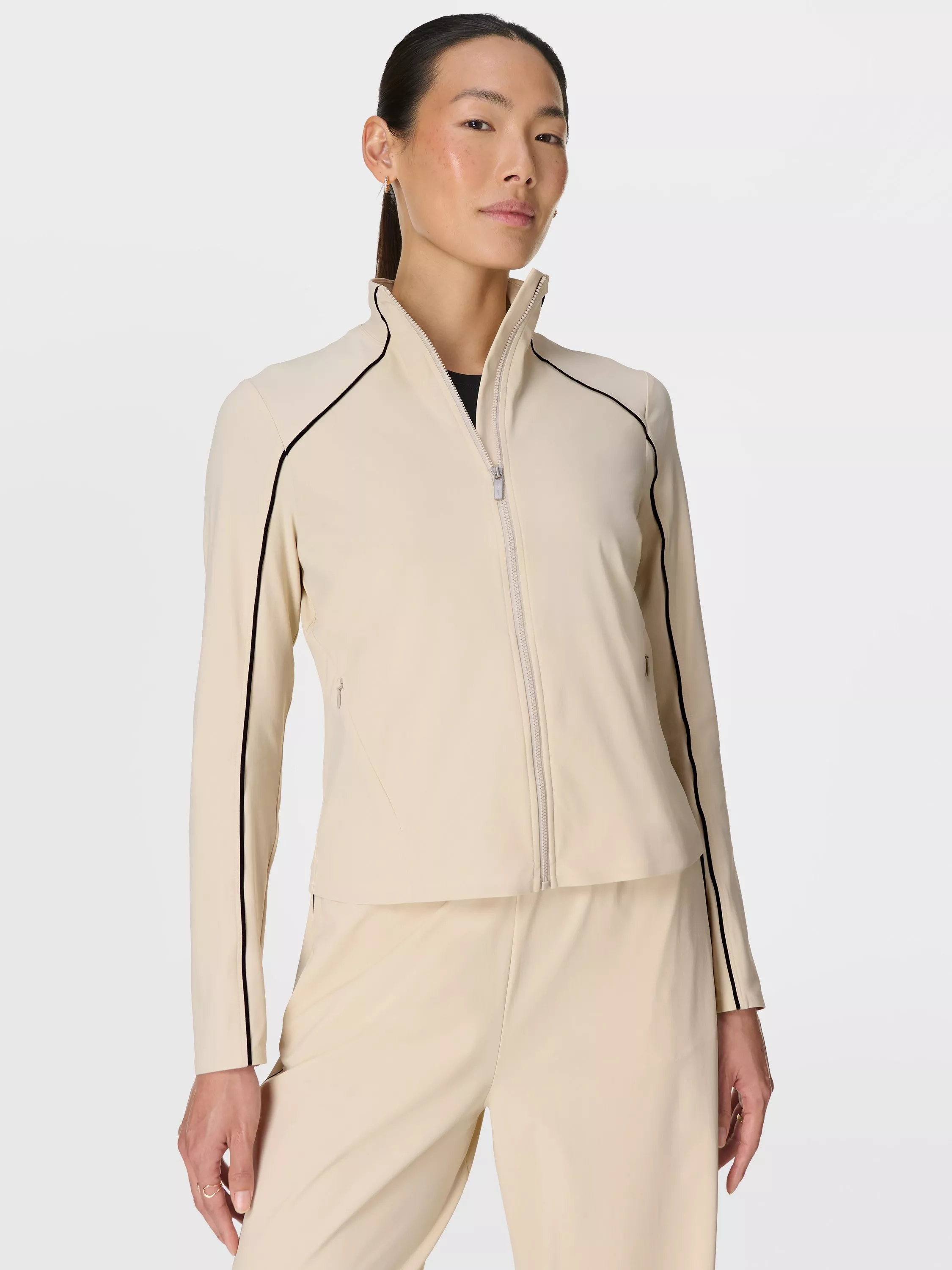 A high neck zip-front jumper, made from a soft stretch fabric that layers well over any base.