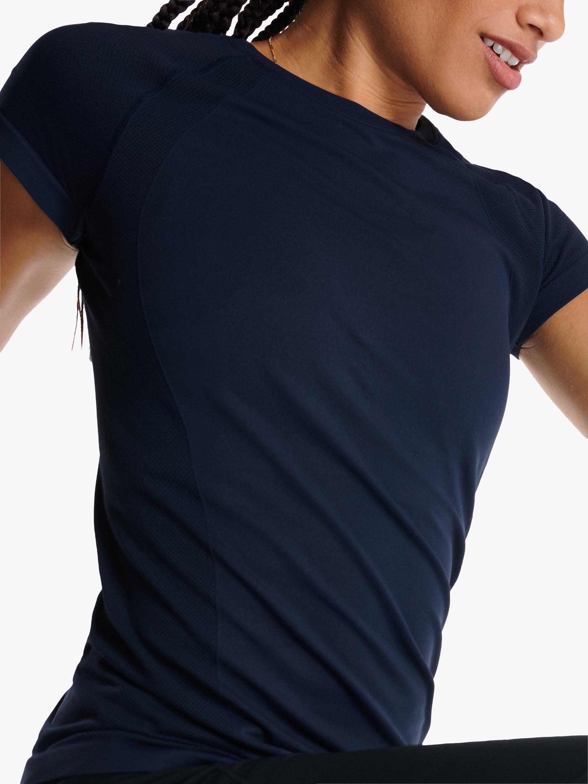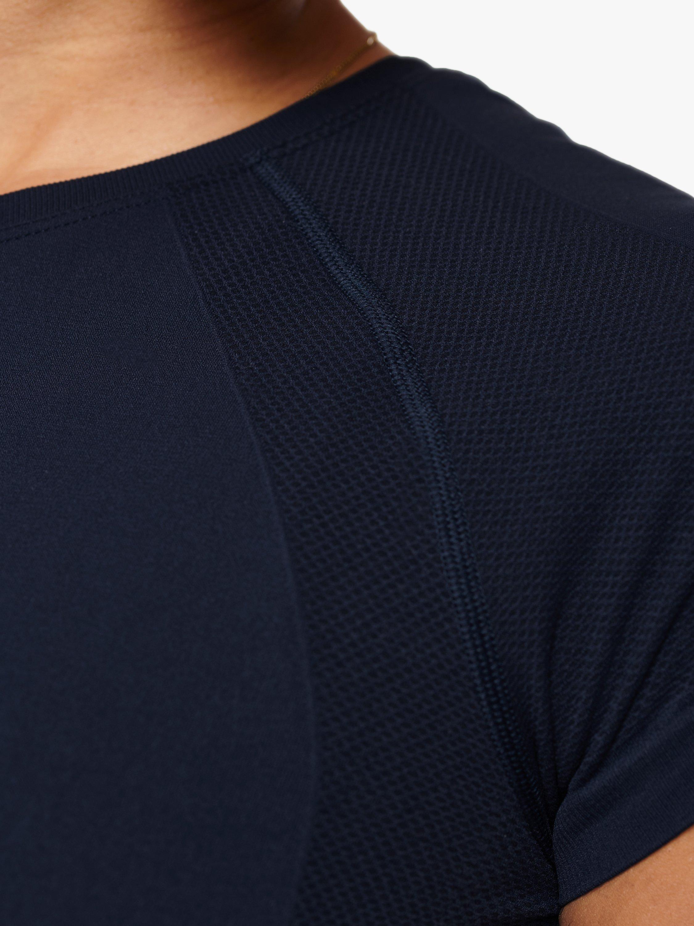 Lightweight, sweat wicking and quick drying, this is a running top that is built for purpose. With a perforated mesh in high sweat areas for easy breathability and a dropped back hem for that little bit of extra cover while running it's a top that suits your needs. Pair with some cycling shorts and a pair of trainers built to last and that is a serious workout outfit.
