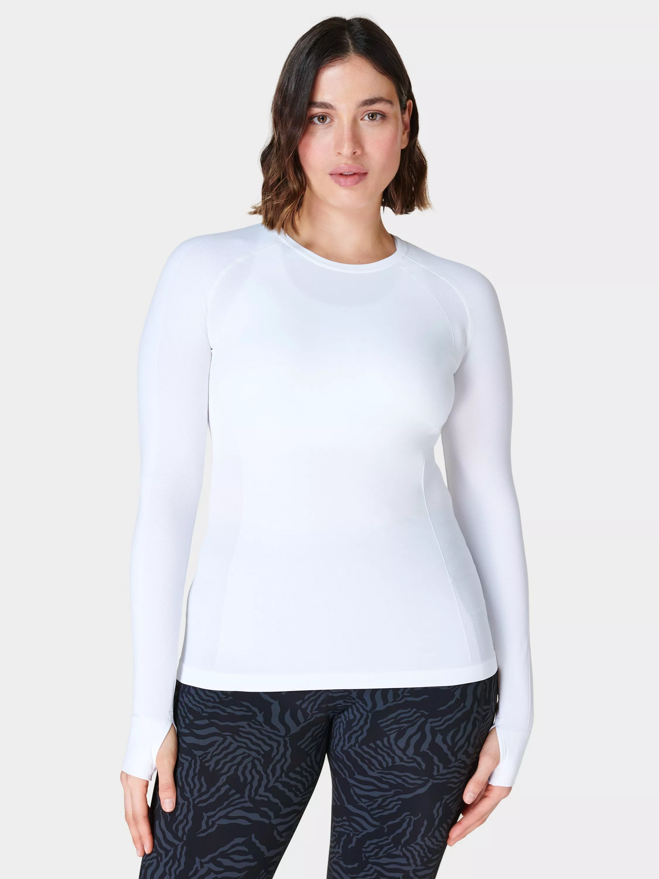 You asked and Sweaty Betty listened. The Athlete family has grown with a new long-sleeved style. With the same slim fit, this fitted lightweight vest is essential whatever workout is on your schedule. Made from comfortable, lightweight and sweat-wicking fabric to keep you cool and dry, the seamless high-stretch design features breathable mesh panels so you can feel your best during every sport from running, spin and barre.