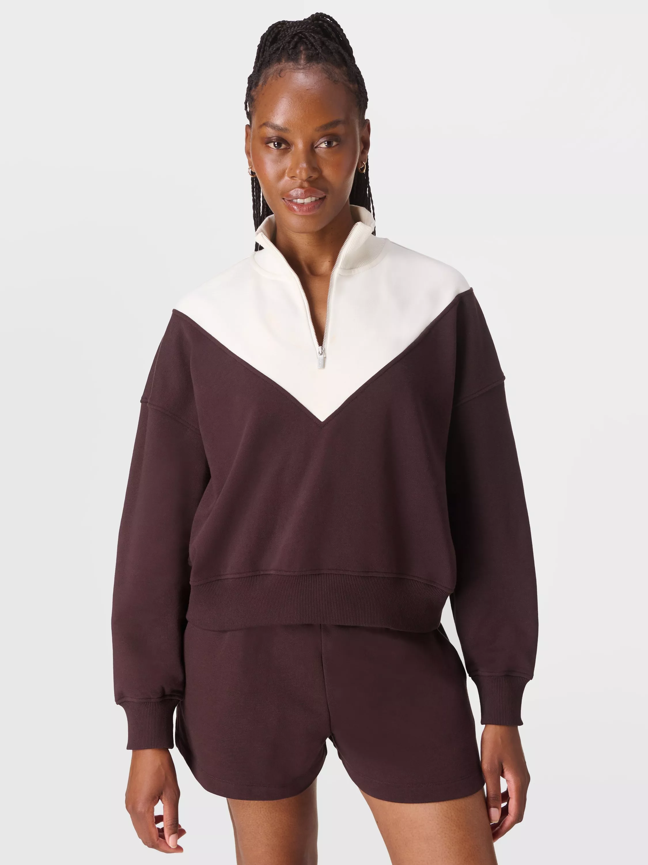 A fresh take on the elevated half-zip sweatshirt. Made from a soft and breathable cotton blend in a dropped shoulder design that falls to the top hip. Featuring fibbed details at the cuffs, neck and waistline, with a branded zip at the centre front and logo to the chest.