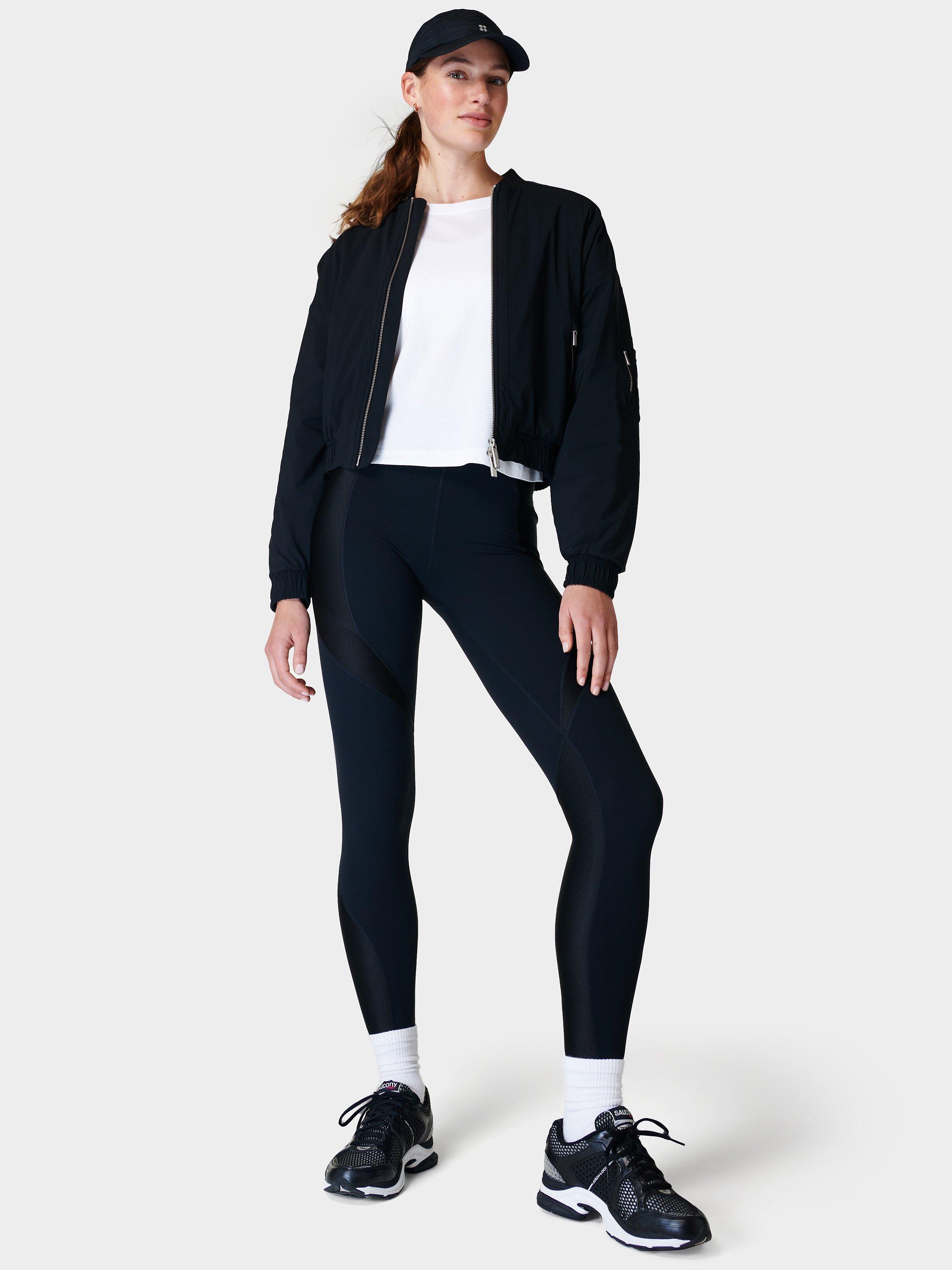 In a style that always comes up trumps, this humble bomber jacket from Sweaty Betty falls to just below the waist for a contemporary profile.