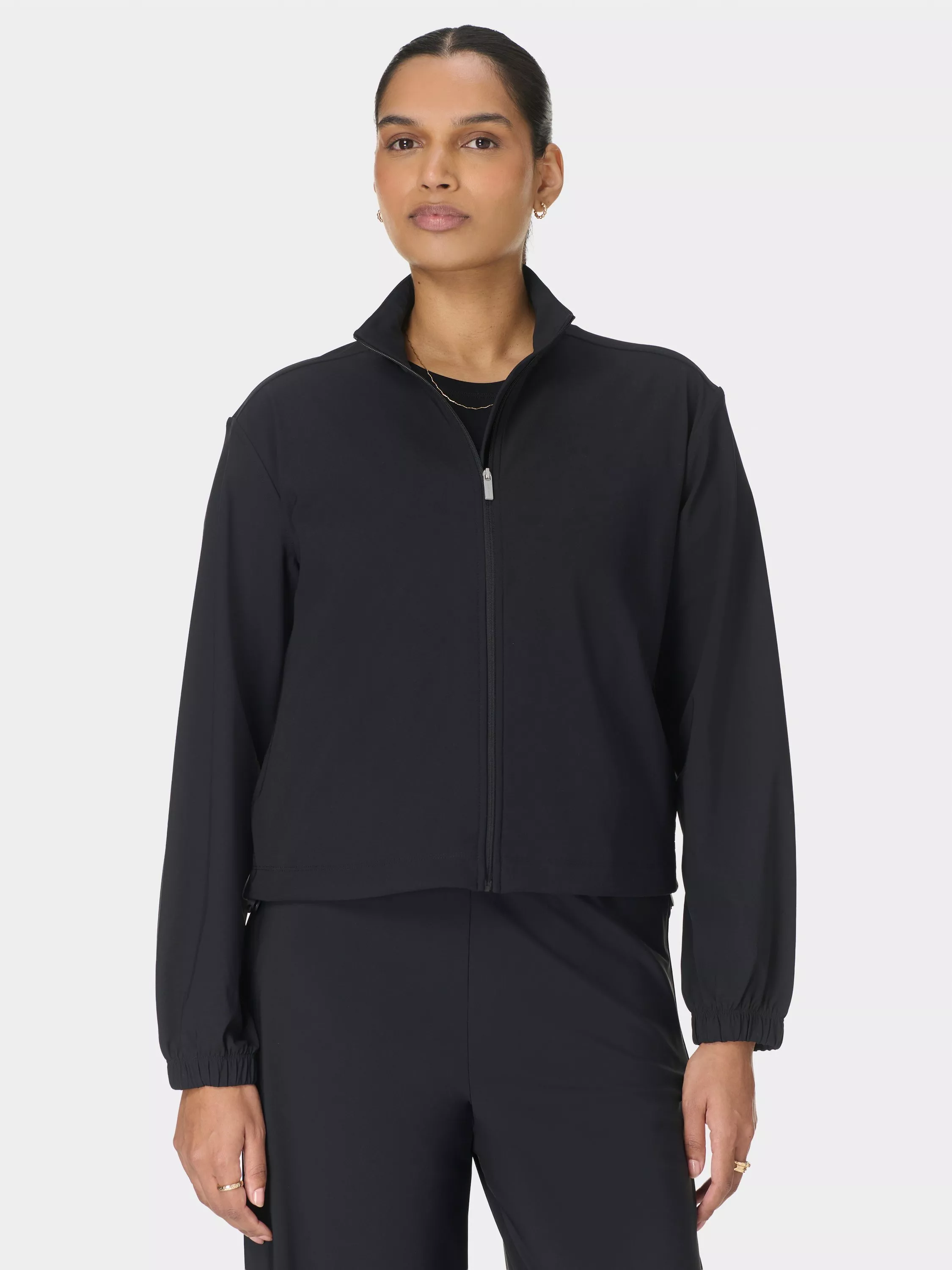 A versatile midlayer piece from Sweaty Betty. With elasticated cuffs and a zip through fastening, keep comfortable whilst out and about.