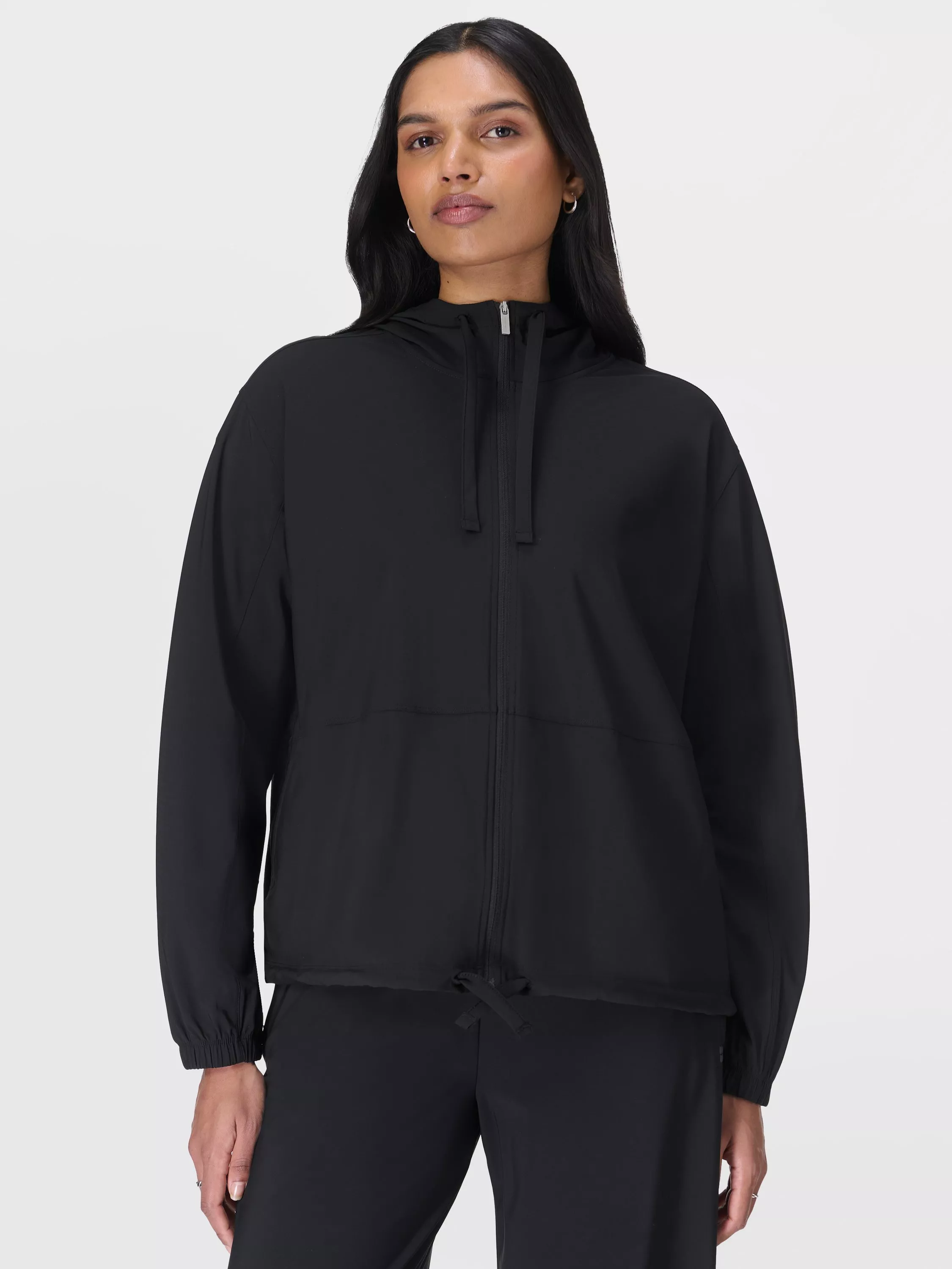 An easy-wear midlayer for days on the go. Made from our ultra-light, crease-resistant Explorer fabric. Slouchy, blouson fit with elasticated cuffs and adjustable hem, you can cinch in. Full centre zip with relaxed hood, you can adjust with a drawcord. Two front slip pockets.