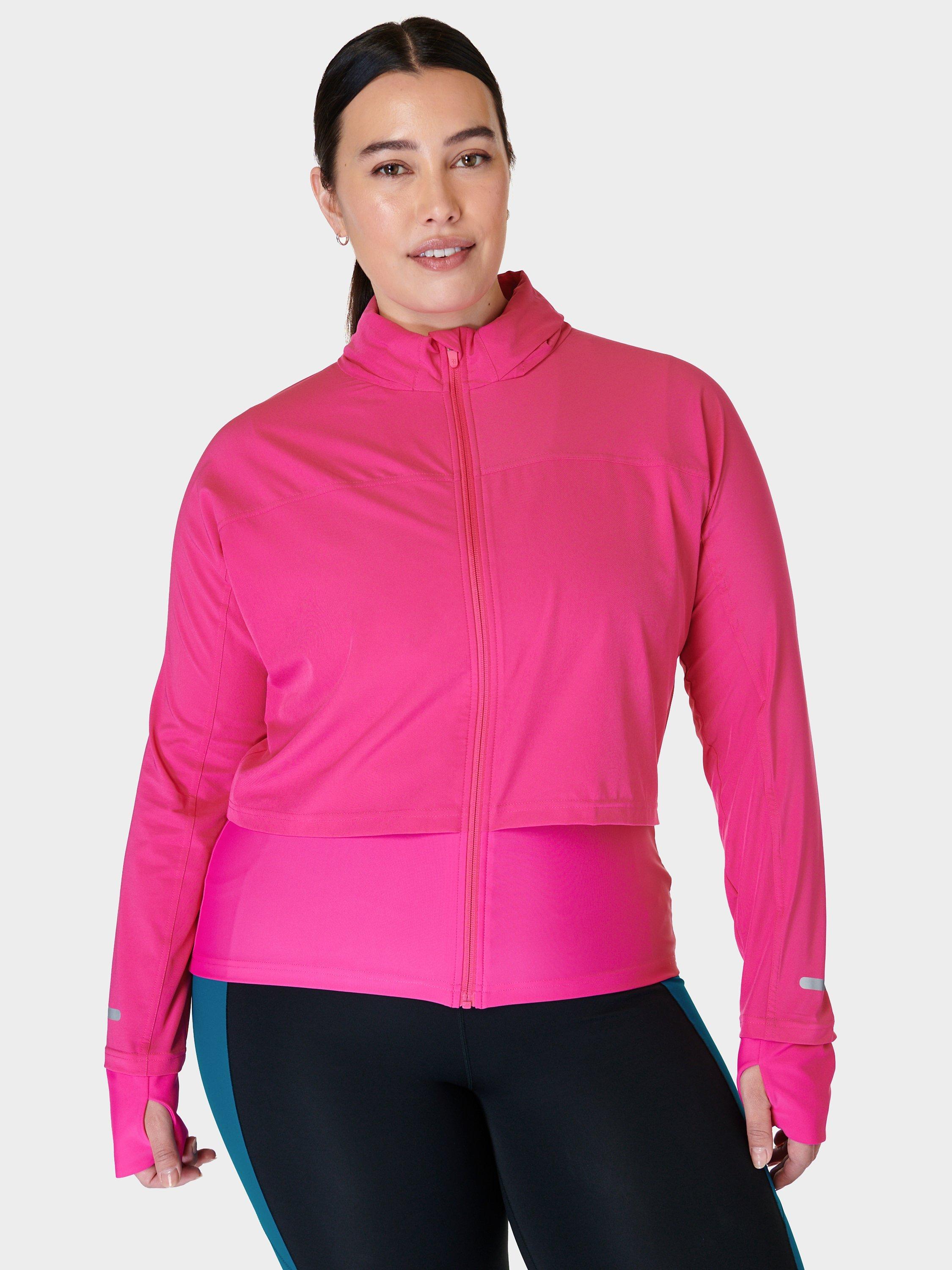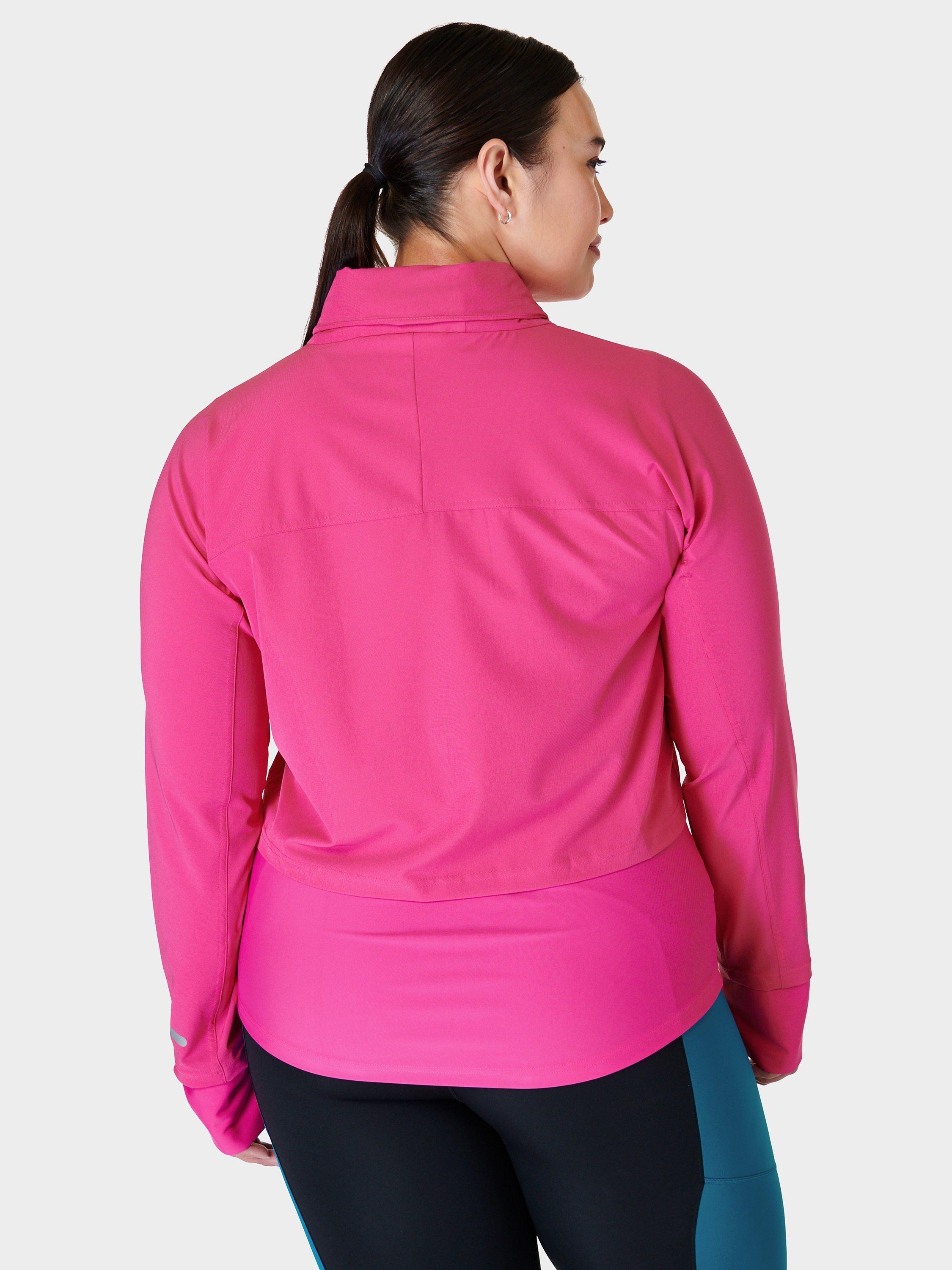 This double-layered running jacket is the perfect lightweight layer. The stretchy fabric is breathable with a water-resistant finish. In a slim fit with a pack-away hood and drop-back hem, it has a reflective trim on the sleeve and a secure back pocket.