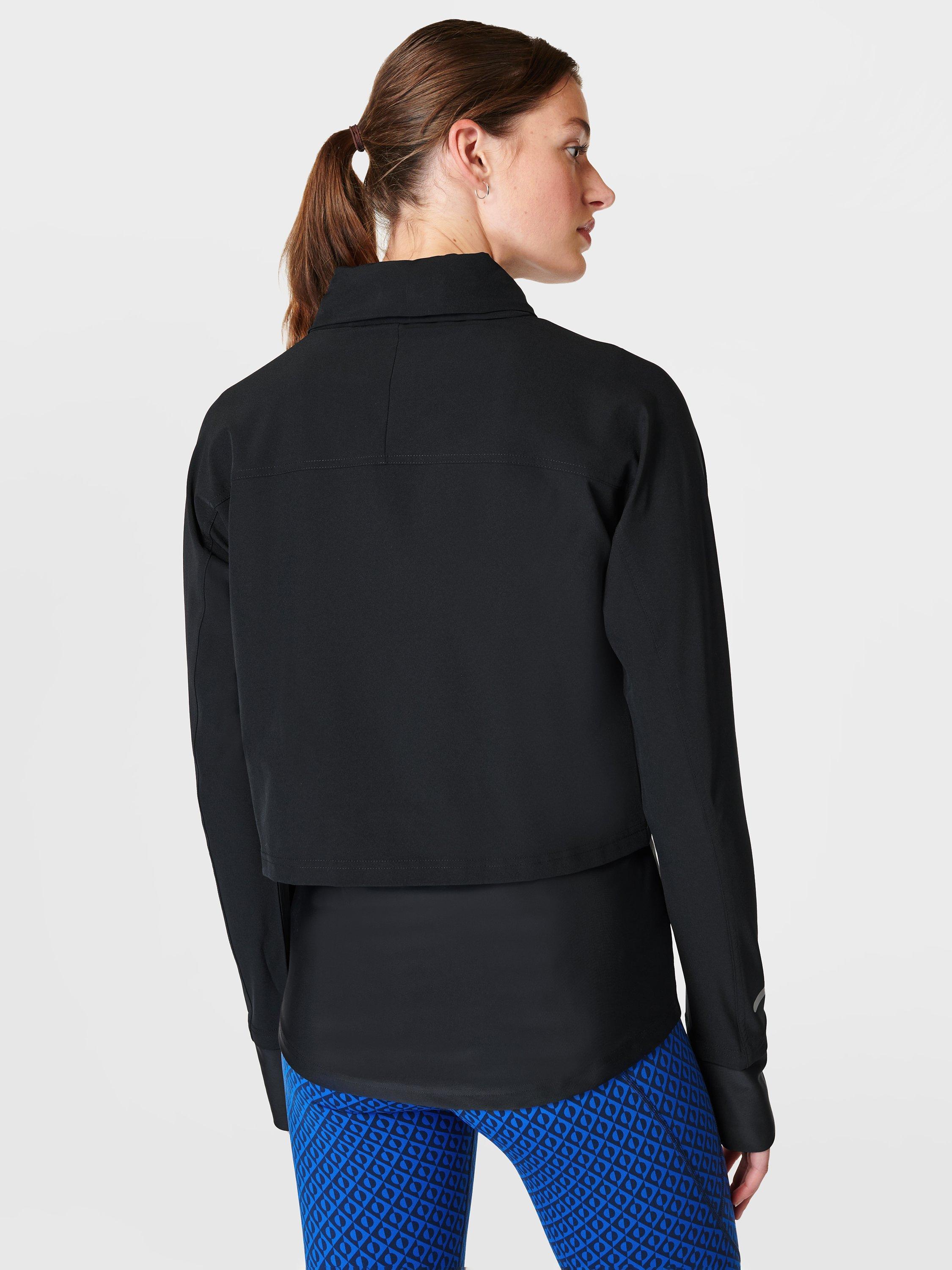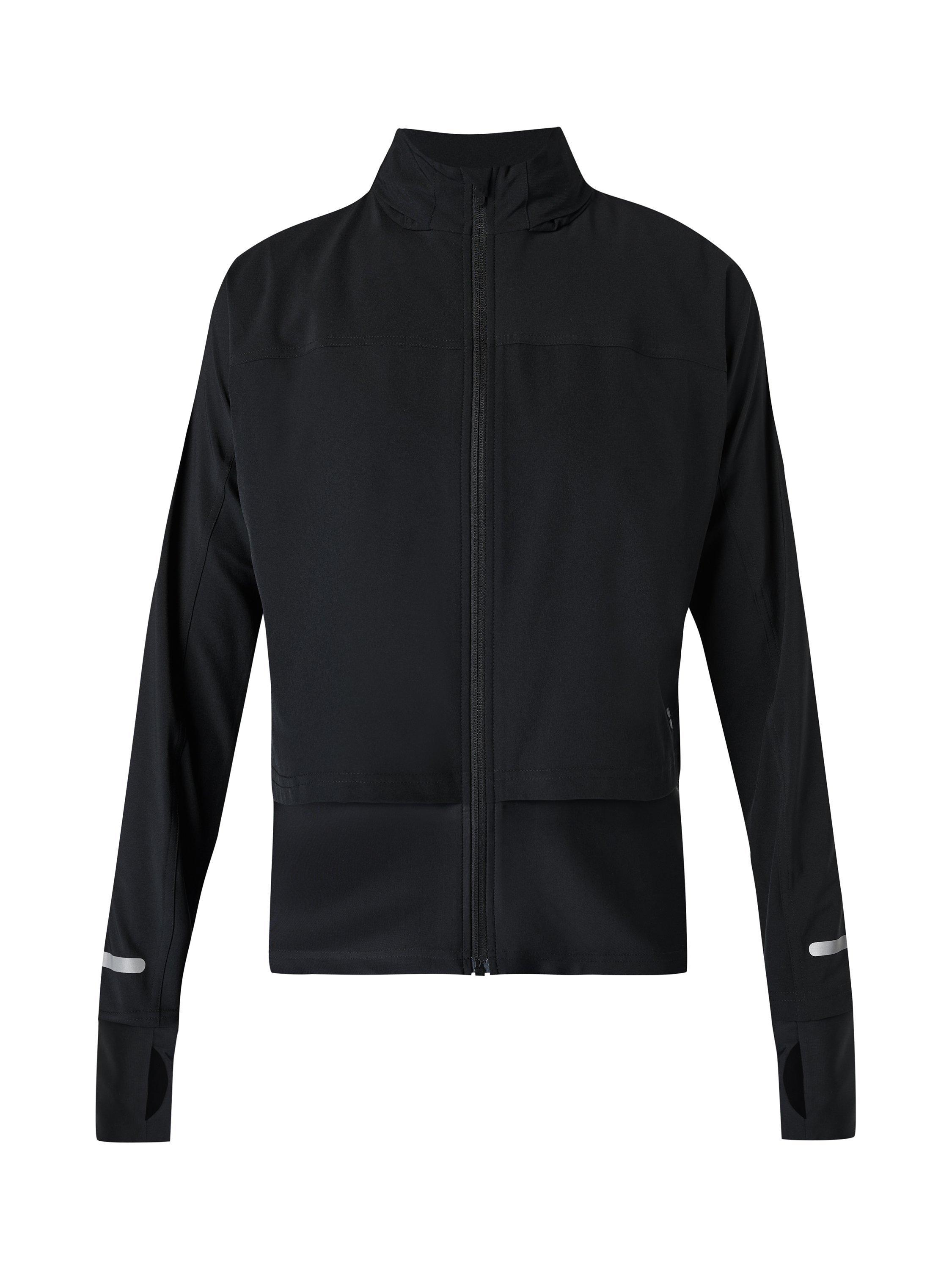 This double-layered running jacket is the perfect lightweight layer. The stretchy fabric is breathable with a water-resistant finish. In a slim fit with a pack-away hood and drop-back hem, it has a reflective trim on the sleeve and a secure back pocket.