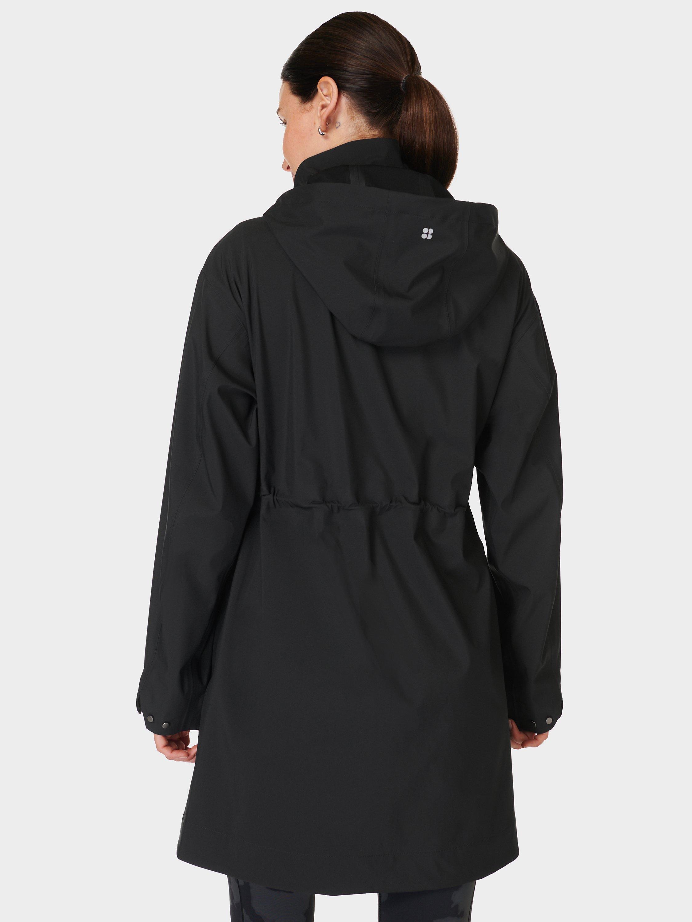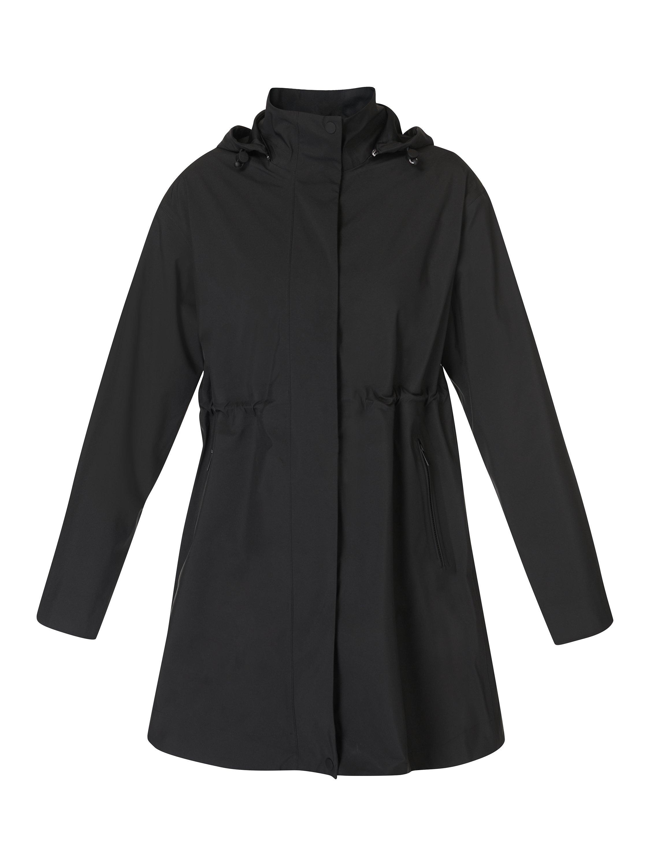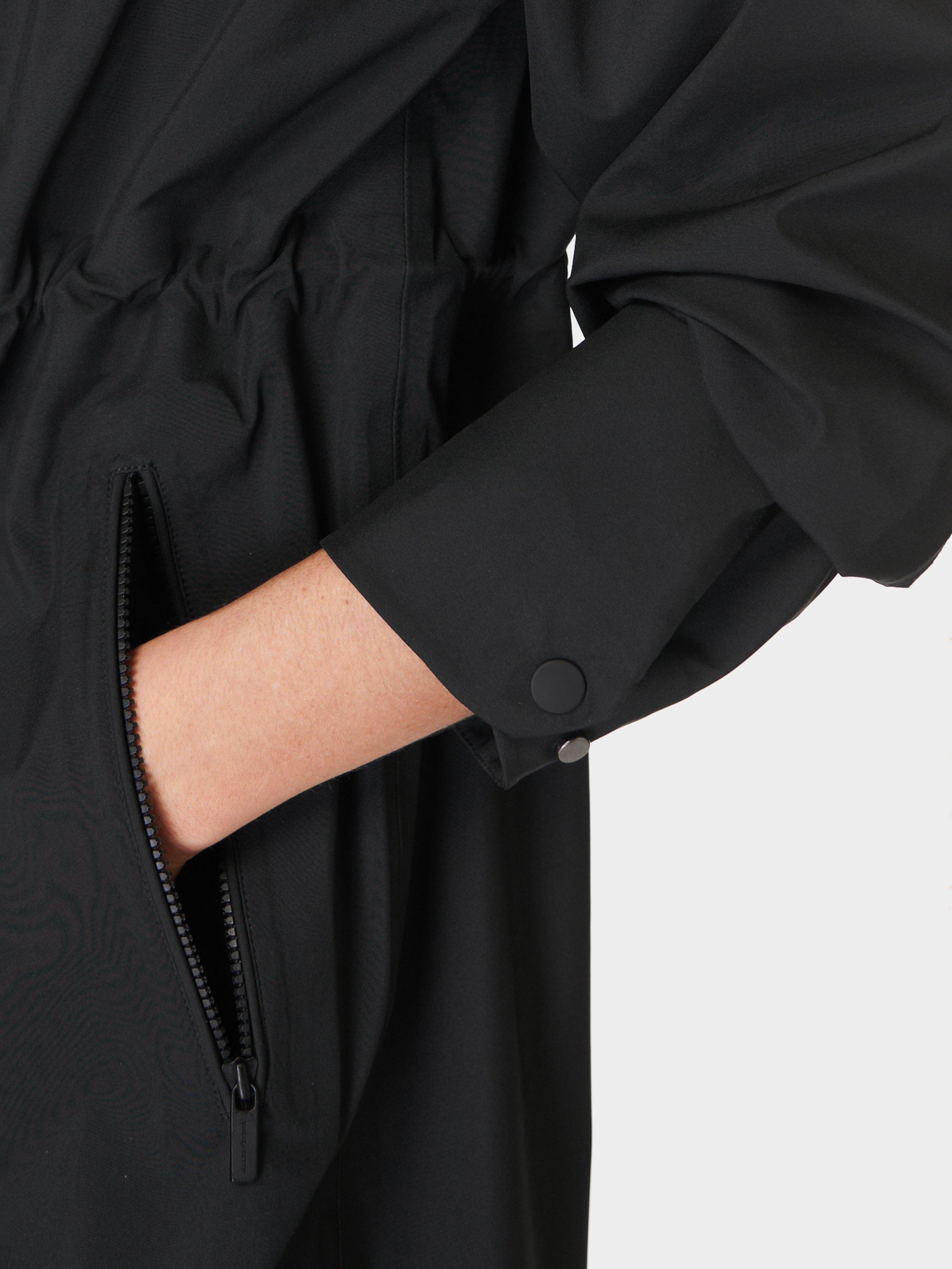 A waterproof parka jacket made for outdoor activities. In 100% recycled breathable fabric with fully sealed taped seams, it has an adjustable elasticated hood, dropped shoulders and armholes. Chest flap pockets, side pockets with a taped zip closure, internal drawcord at waist. Falls to a dropped hem detail.