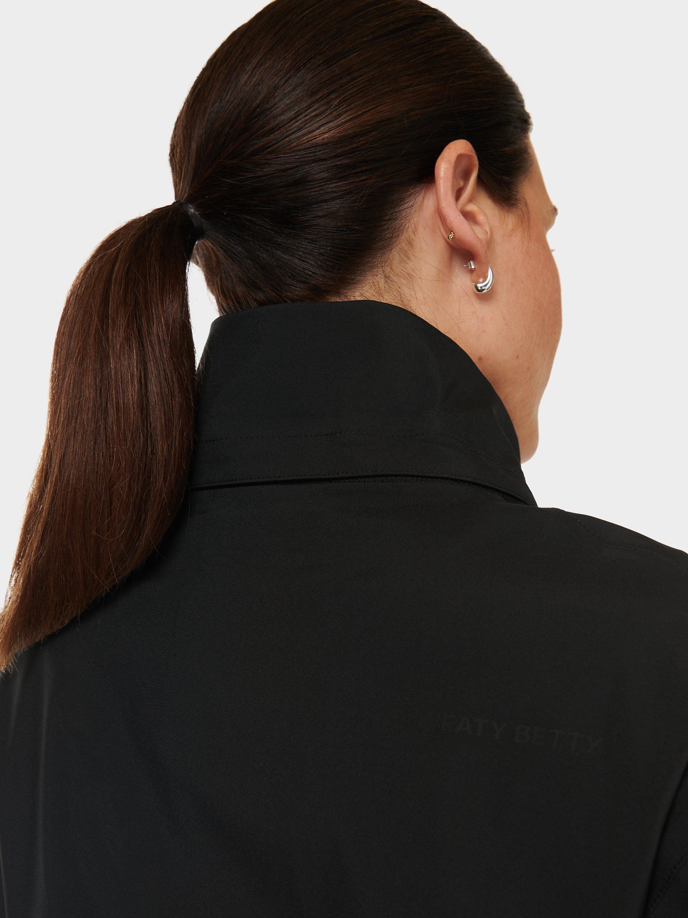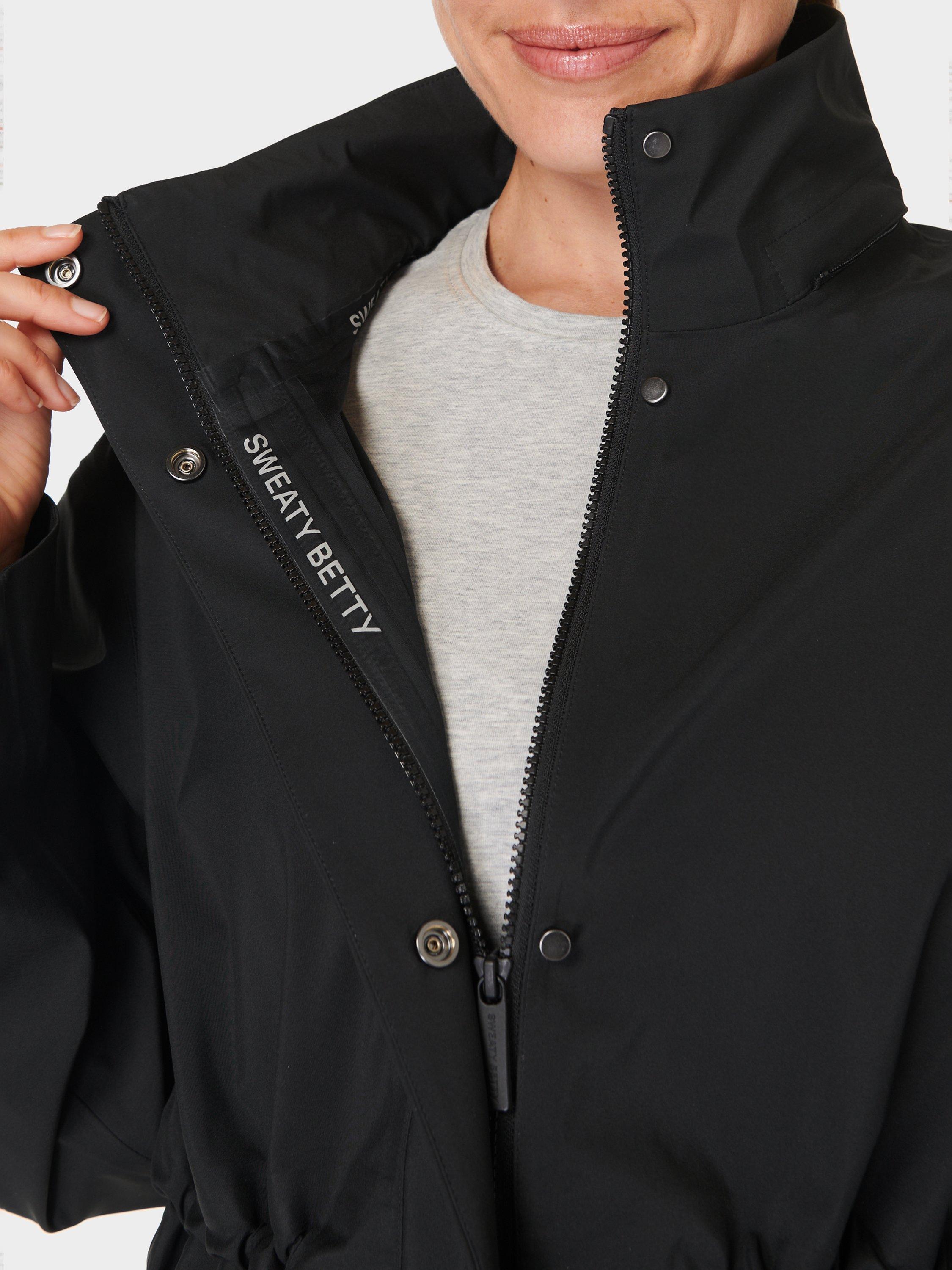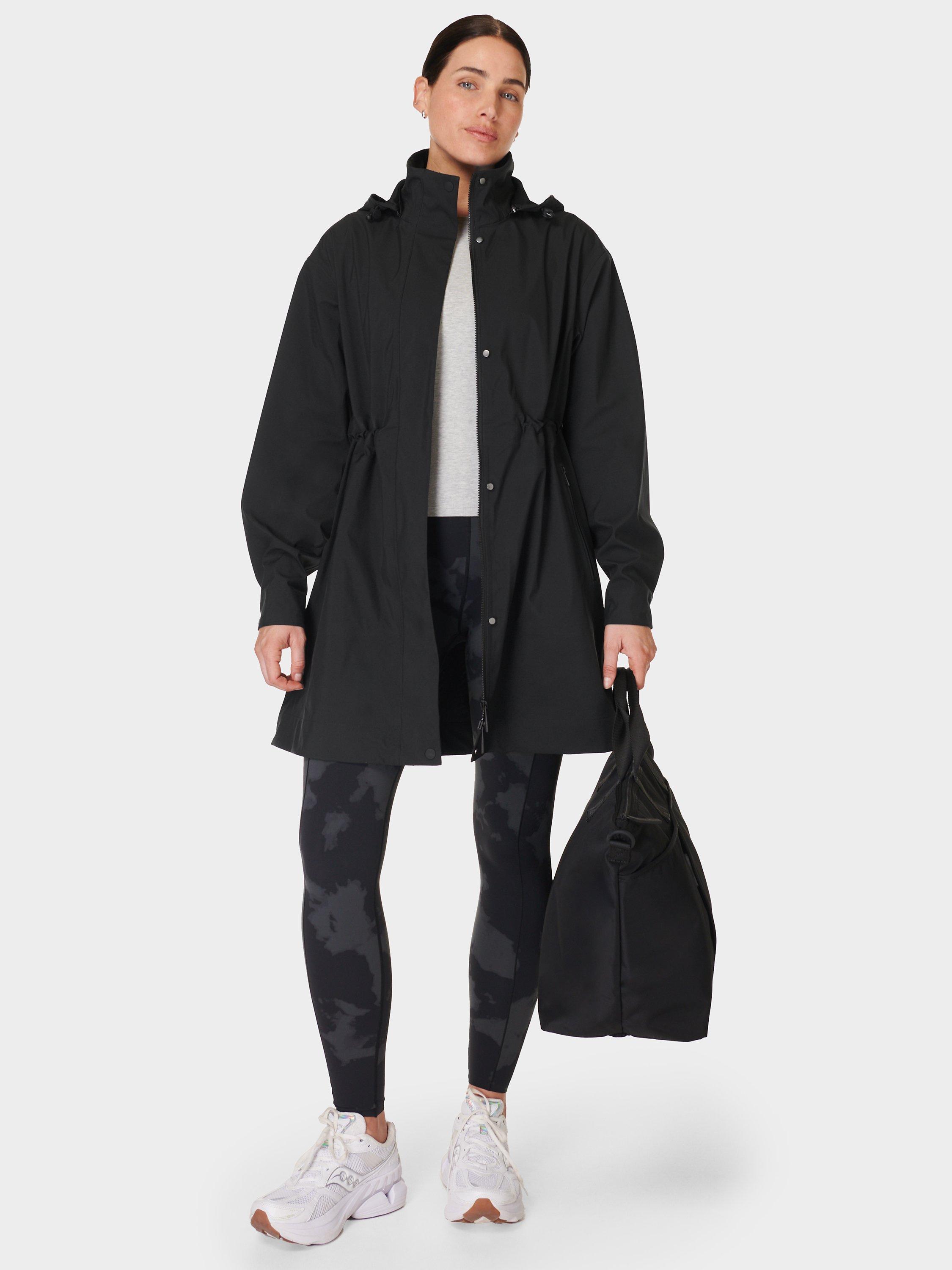 A waterproof parka jacket made for outdoor activities. In 100% recycled breathable fabric with fully sealed taped seams, it has an adjustable elasticated hood, dropped shoulders and armholes. Chest flap pockets, side pockets with a taped zip closure, internal drawcord at waist. Falls to a dropped hem detail.