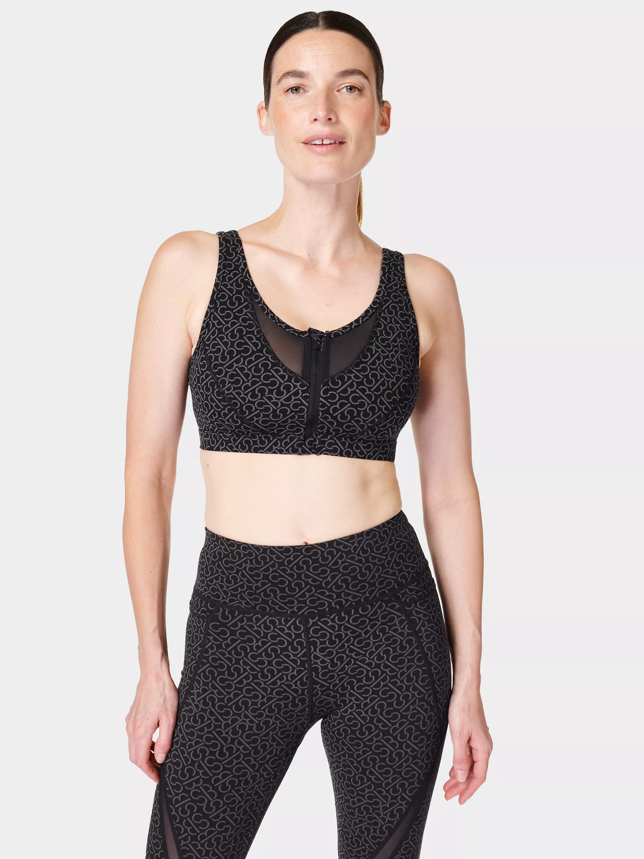 A workout wardrobe icon, designed for medium impact workouts like hiking, spinning and weight training. Made from Sweaty Betty's famous sweat-wicking, quick-drying Power fabric with 4-way stretch, this bra has a feminine mesh illusion neckline with air-light, breathable fixed spacer cup, zip-through front with hidden security hooks and stretchy straps that mould to you for a personalised fit, and easy on and off for quick relief after class. Offers medium support up to a C cup.