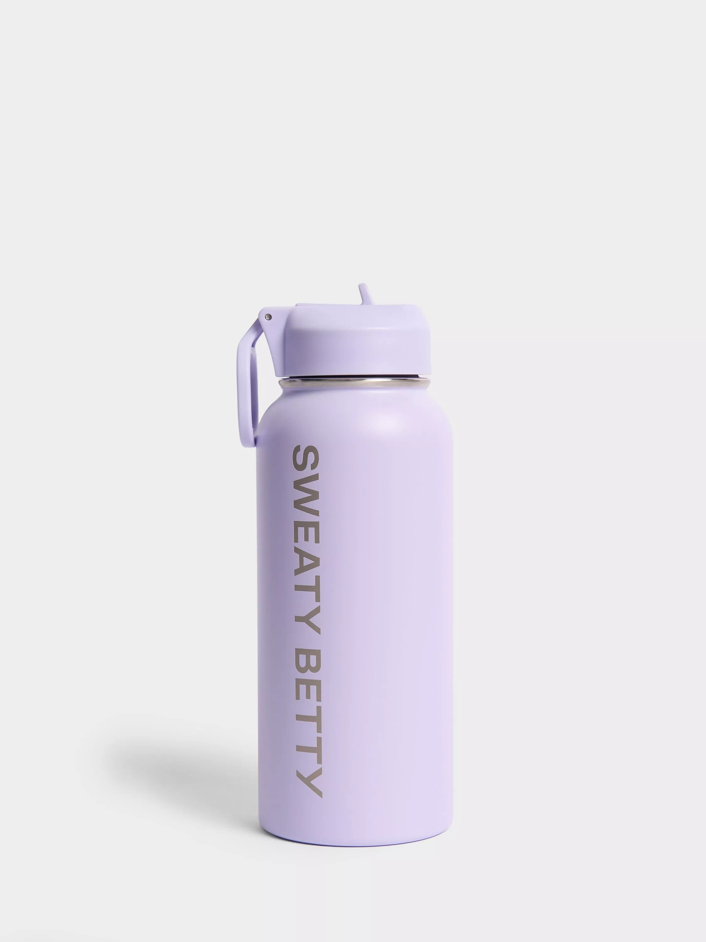 Our largest water bottle yet, with 900ml capacity. Temperature-regulating design keeps hot drinks hot and cold drinks cold. Straw and handle for sips on the go. Sweaty Betty branding detail on the side.