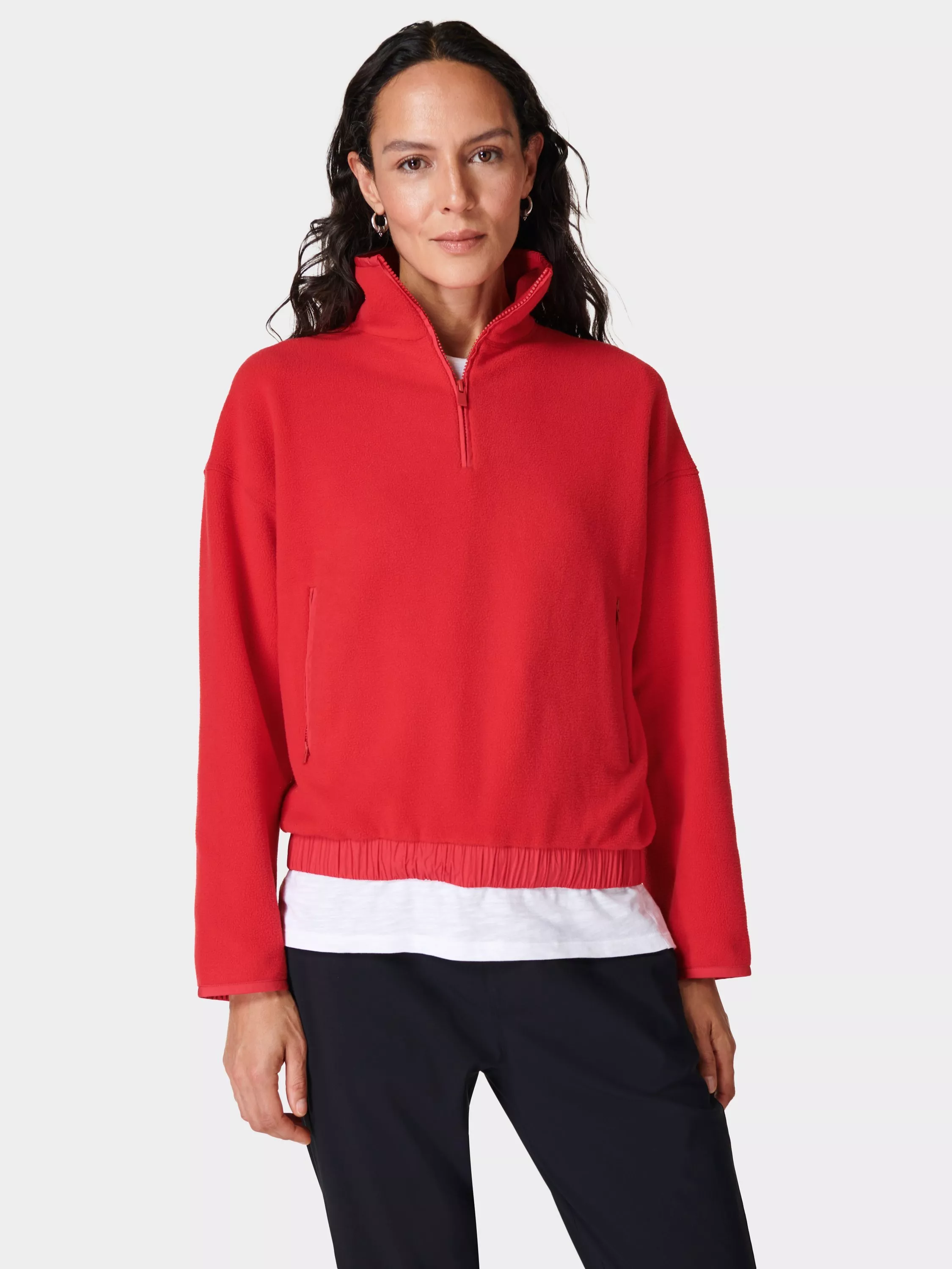 A low effort, high impact pullover for cosy styling. Cut from a warm polar fleece made from a soft cotton blend to a relaxed fit with zip-up funnel neck and elasticated waistband. Contrasting piped detail around the seams.