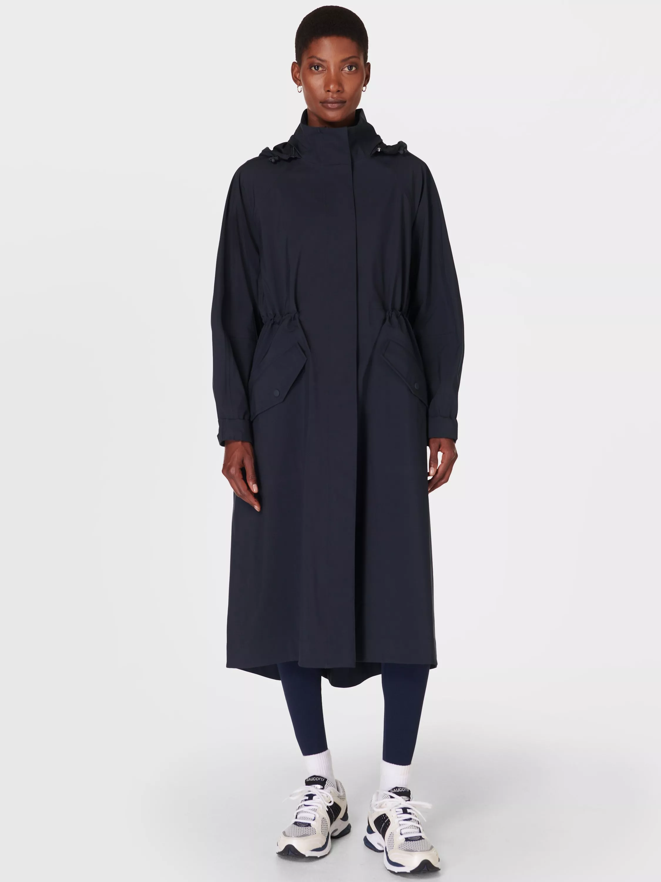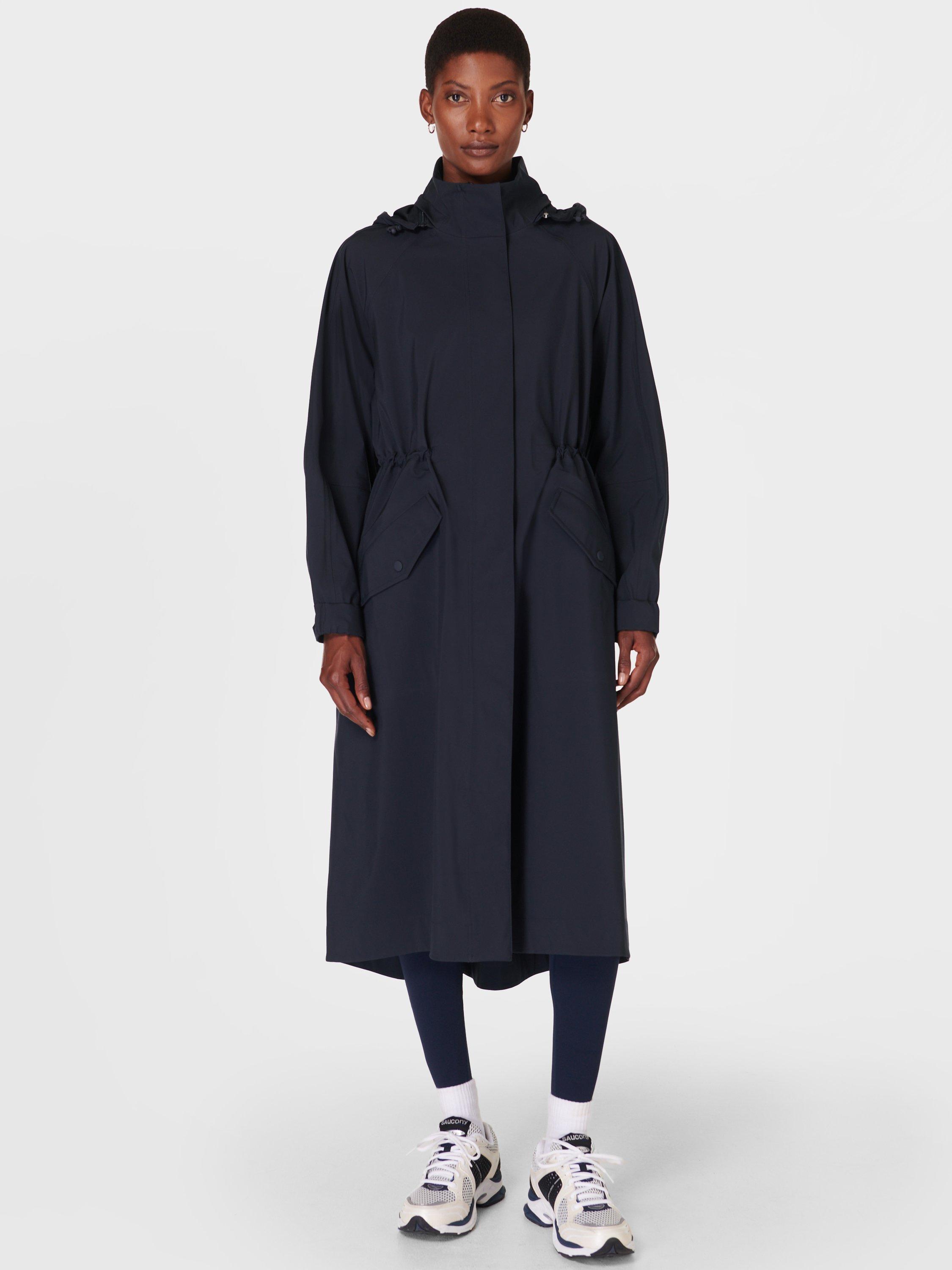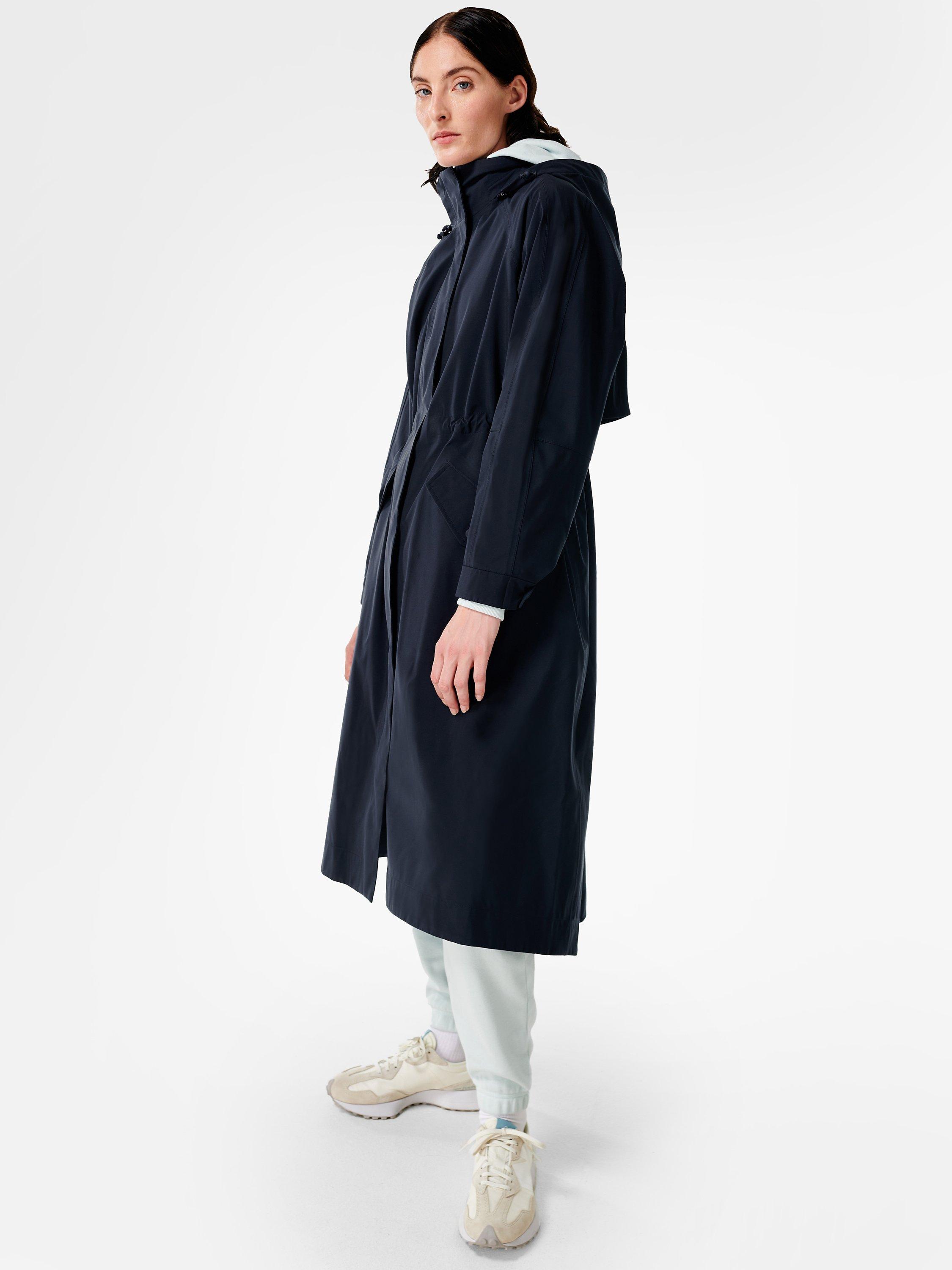 This fully waterproof longline parka is just made for rainy days outdoors. Made from 100% recycled fabric with a cool hand feel, it comes in a relaxed fit with an adjustable toggled waistline. Featuring an adjustable toggled collar with zip-off hood and zip-up vents at the hem, it's finished with two popper pockets to the front and two snap-fastened pockets at the hip.