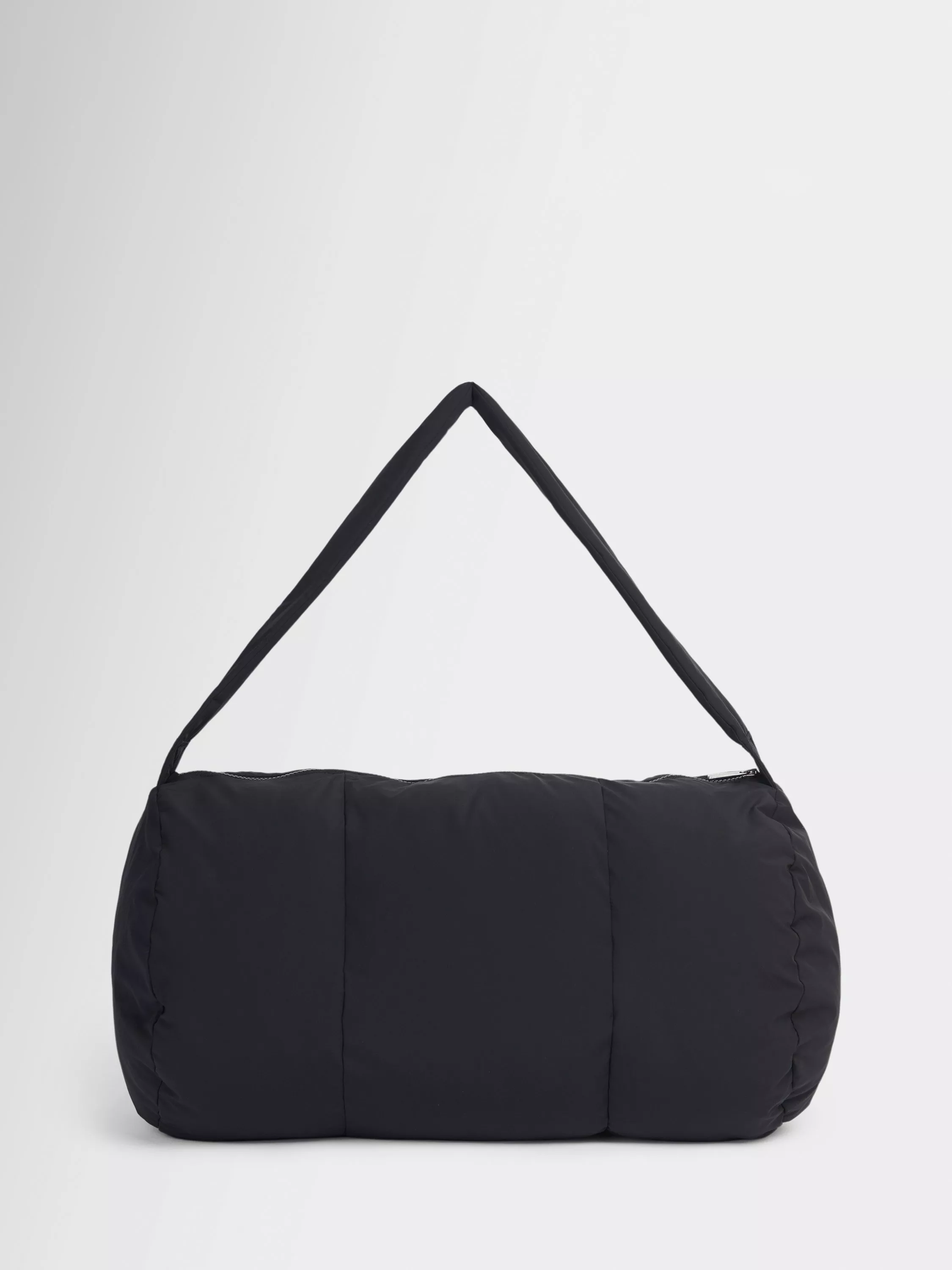 Made from water-resistant fabric. Classic barrel shape with pillow padding. Zip fastening with zip pocket on the front and slip pocket inside.