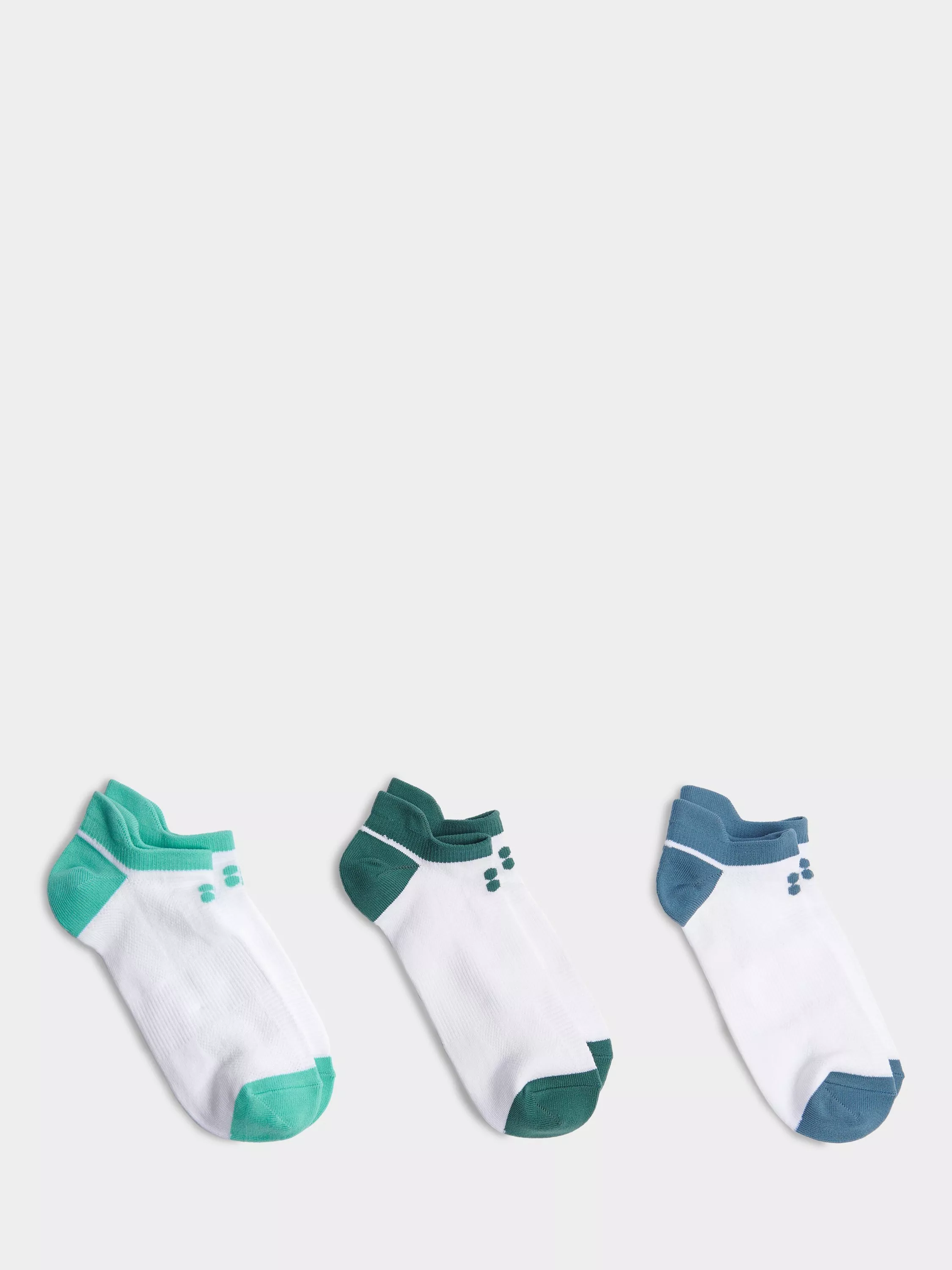 A set of three lightweight trainer socks ideal for all workouts. Made using a recycled fabric blend with sweat-wicking properties, they feature inbuilt arch support and a ribbed ankle cuff to prevent blisters.