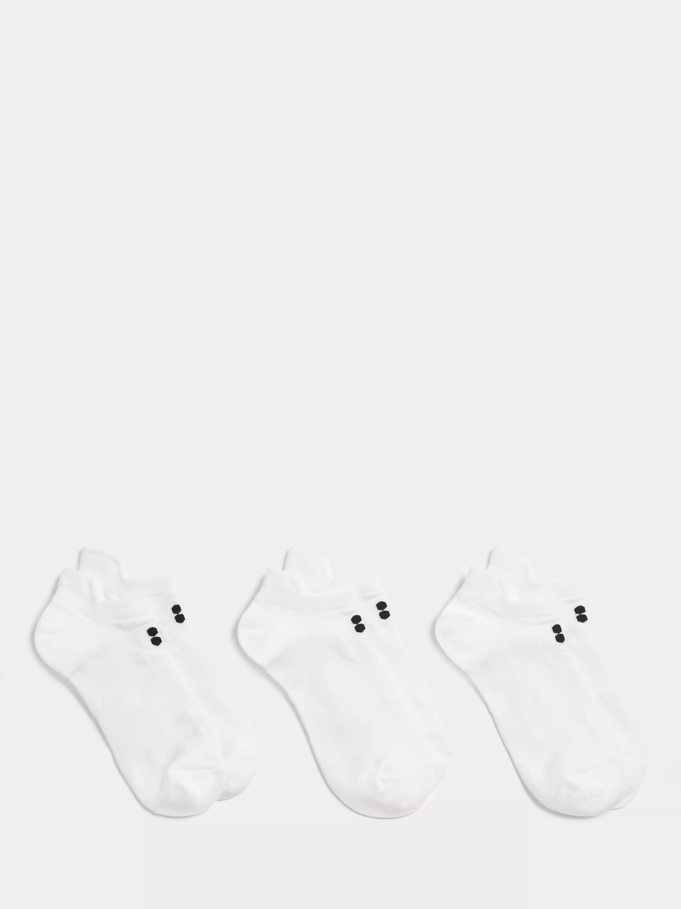 A set of three lightweight trainer socks ideal for all workouts. Made using a recycled fabric blend with sweat-wicking properties, they feature inbuilt arch support and a ribbed ankle cuff to prevent blisters.