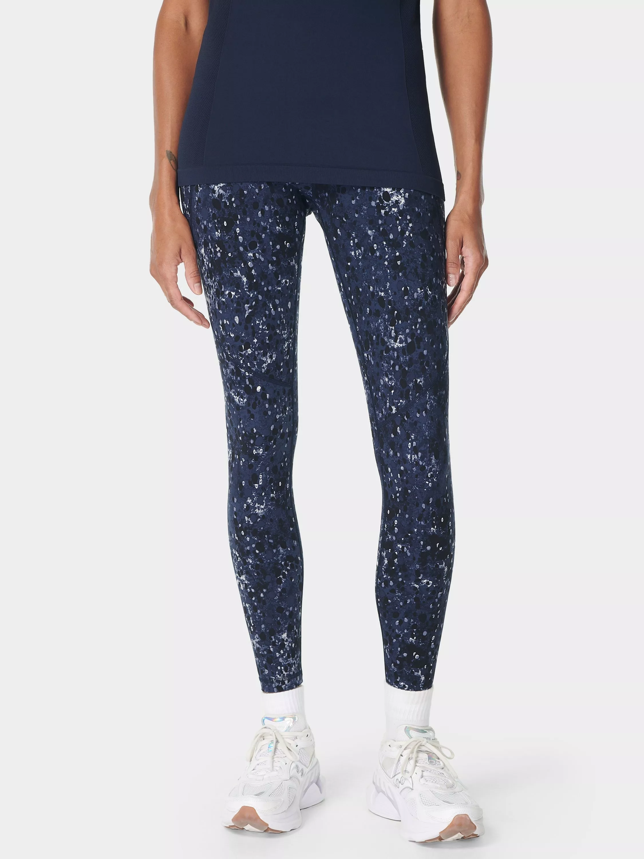 A pair of multi-sport gym leggings designed for every workout. In a stretchy fabric with flattering seams to sculpt the bum, they are sweat-wicking, quick-drying and breathable. Side pocket and back zip pocket. Internal adjustable drawcord.