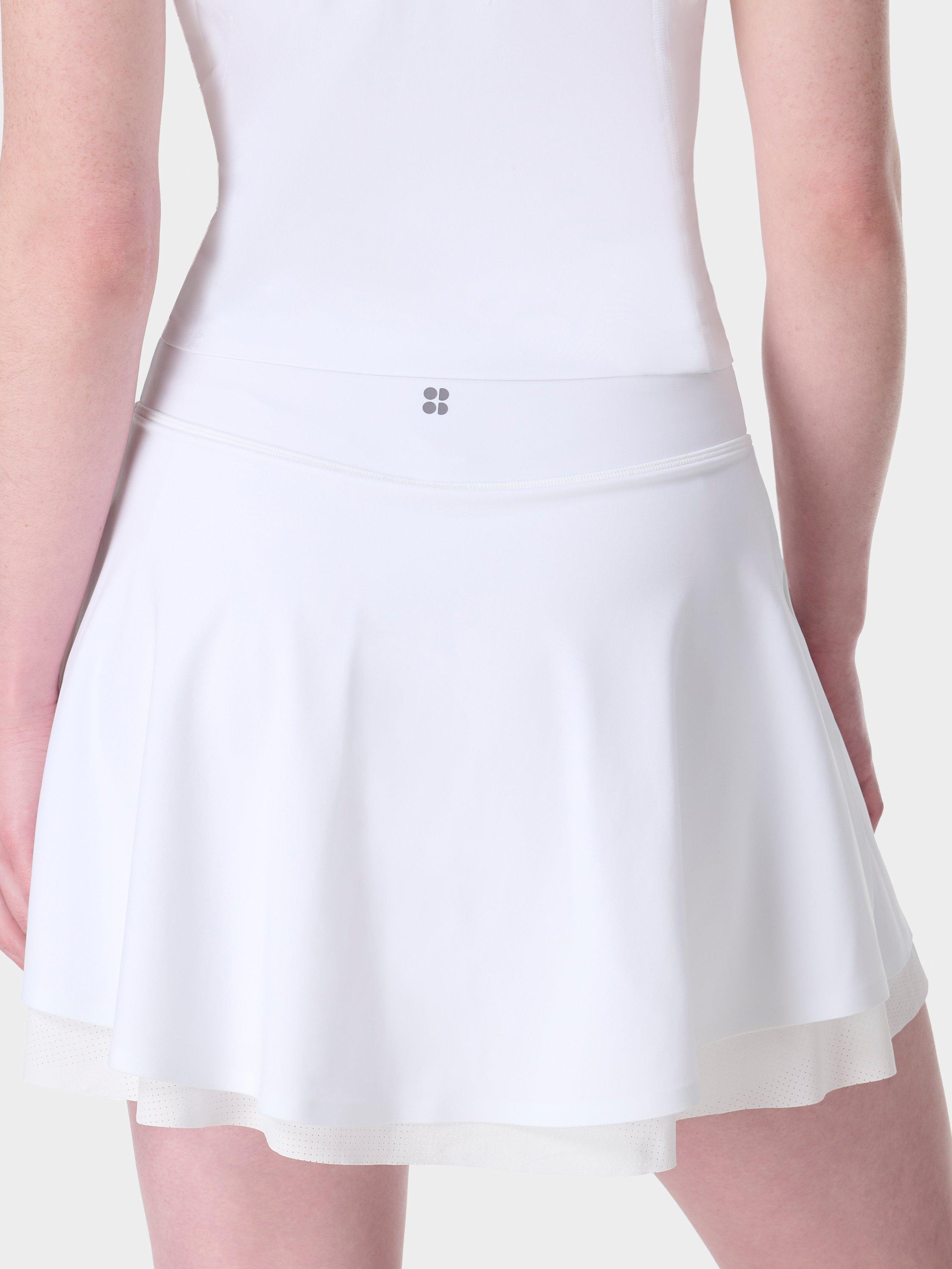 A skort for tennis, training and workouts. Supportive inner shorts made from sweat-wicking, quick-drying Power fabric with 4-way stretch. Mesh layer underskirt. Two ball pockets with side slits for easy access.