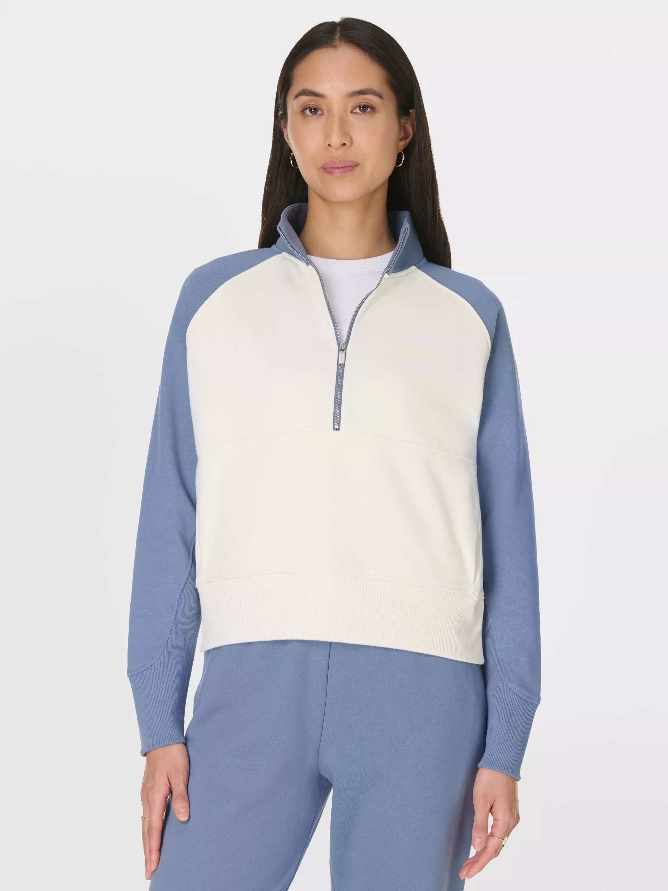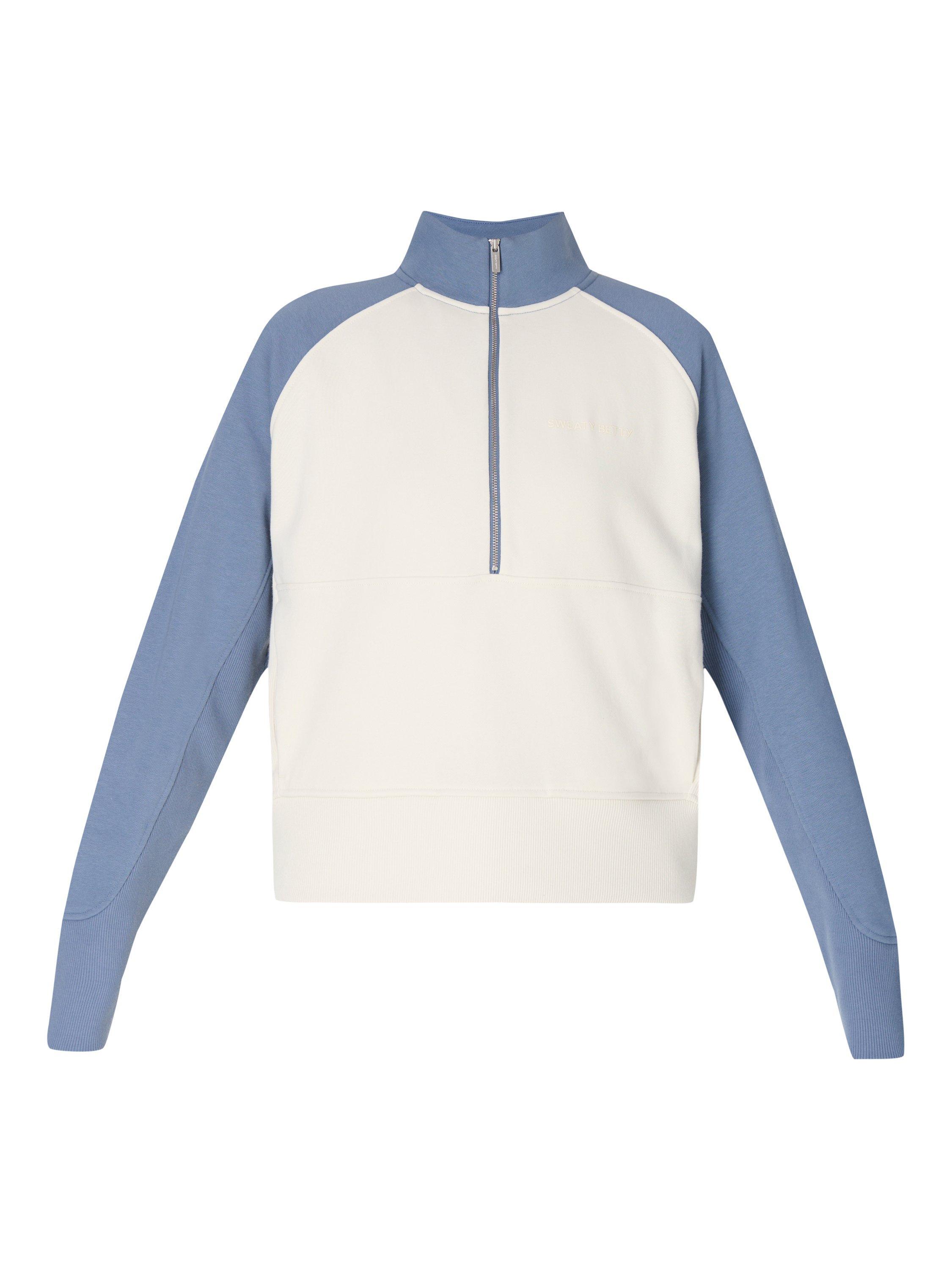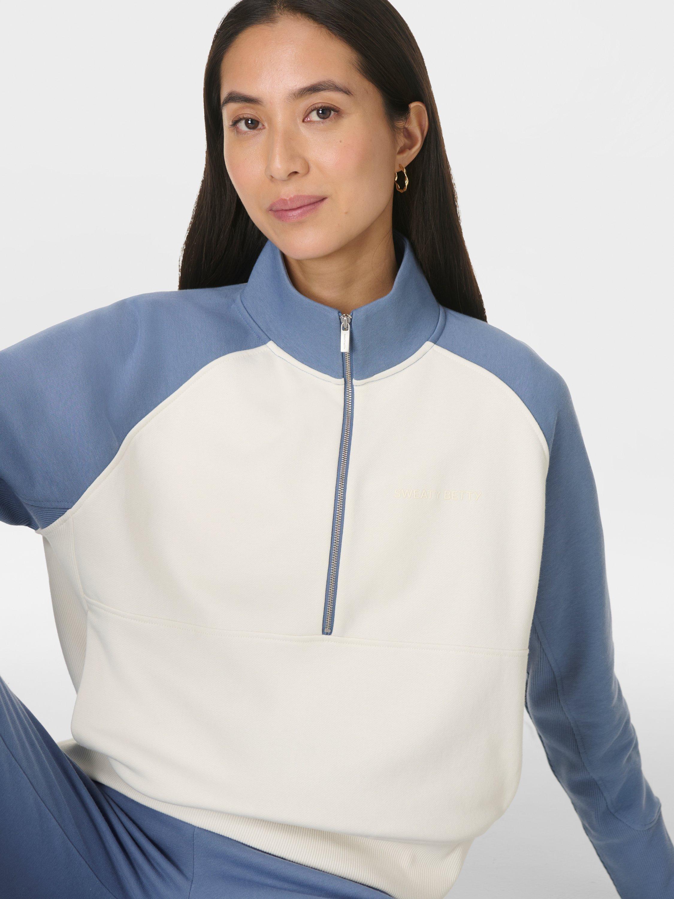 Zip up and add instant confidence to your day. The cotton blend keeps you comfortable while the striking zip neck and colour block pattern make an impression wherever you go.