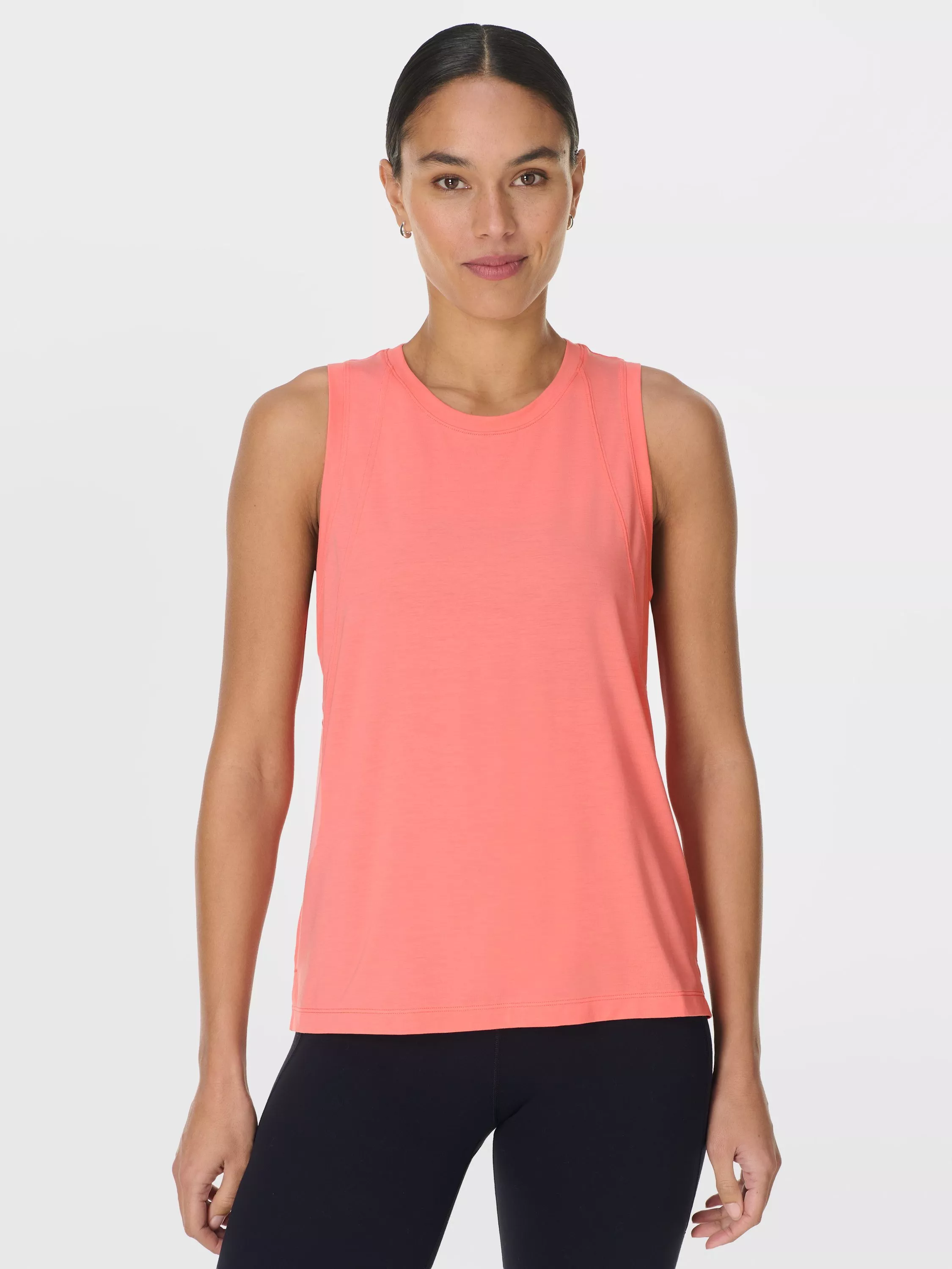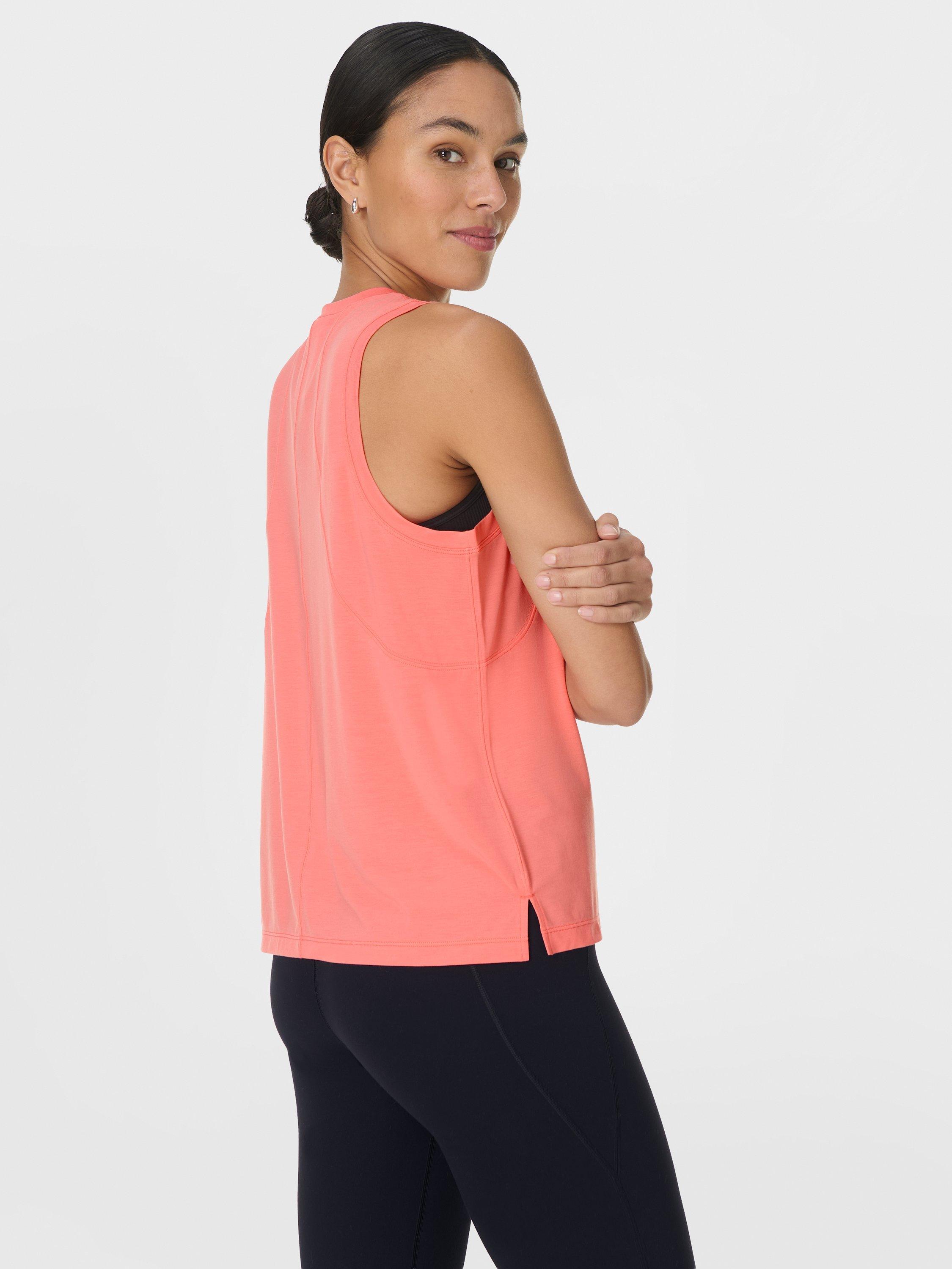 A soft vest for low impact workouts, yoga, Pilates and barre. Easy, relaxed fit with a classic crew neck.