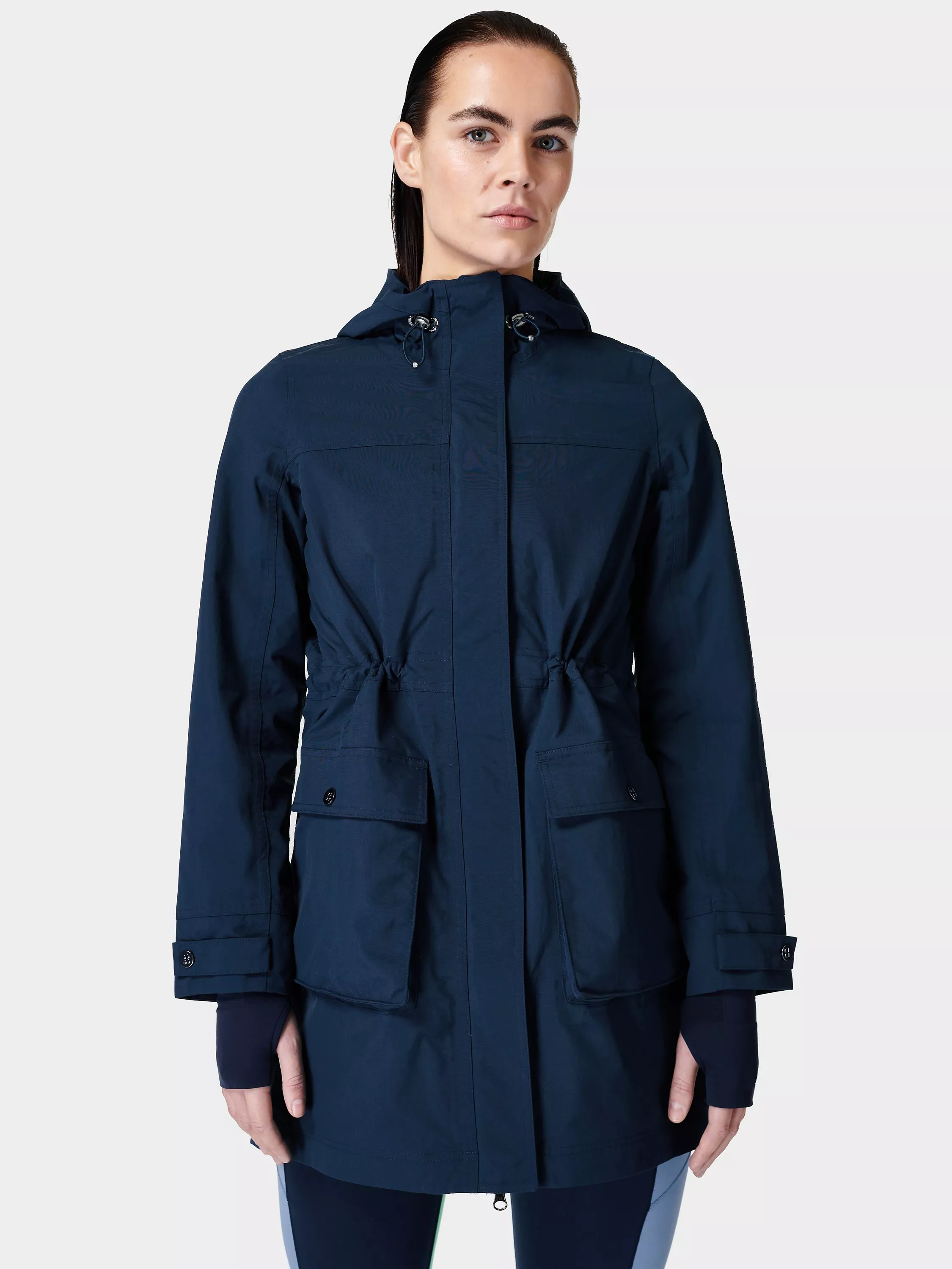 Ready for walking in endless showers, Sweaty Betty's lightweight parka has a longline dropped back hem to keep you covered. Relaxed fitting with an elasticated waistband and high neck with a drawcord hood, it's fully lined made from a waterproof fabric with taped seams. Best for walking, hiking and travel, a zip closure with front placket creates a neat silhouette with handy snap closure pockets for stashing your on-the-go essentials.