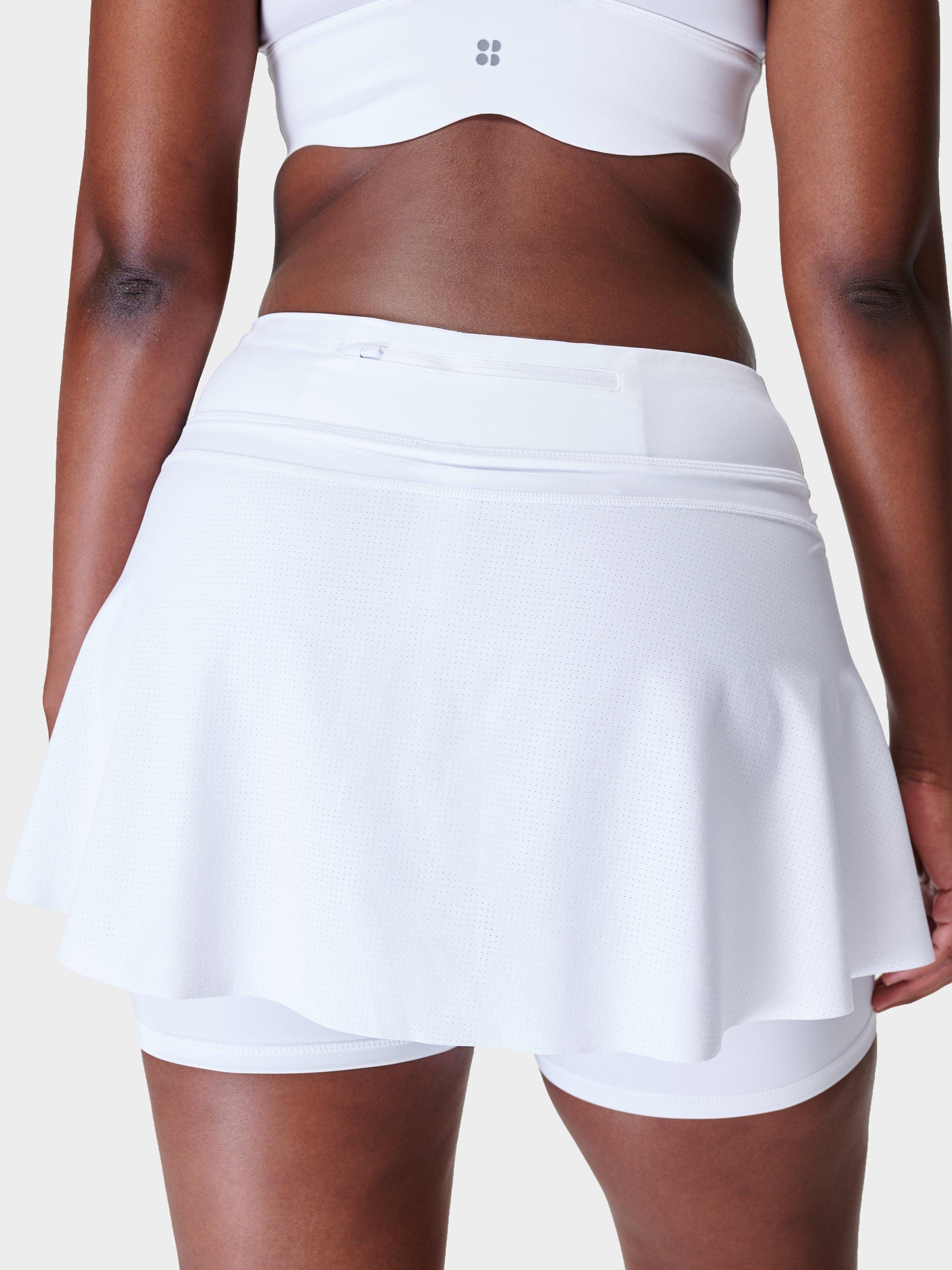 Perfect for tennis and running, this stretchy, slim-fitting skort from Sweaty Betty is layered on top of lightweight shorts in sweat-wicking fabric. Made for sweating with breathable perforated mesh and a zip pocket made to fit your phone, own your sport in this multi-functional performance skort.
